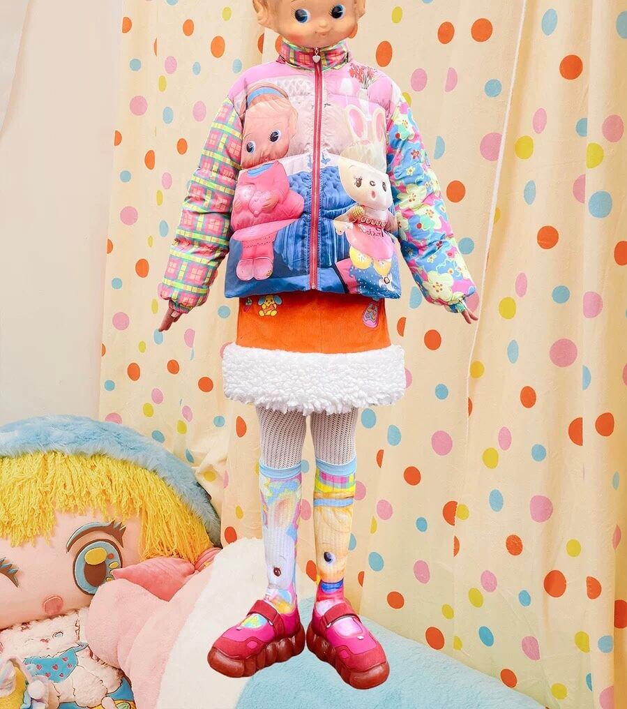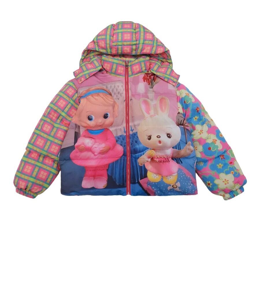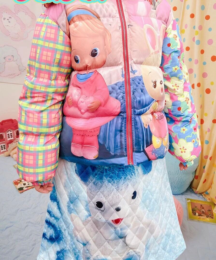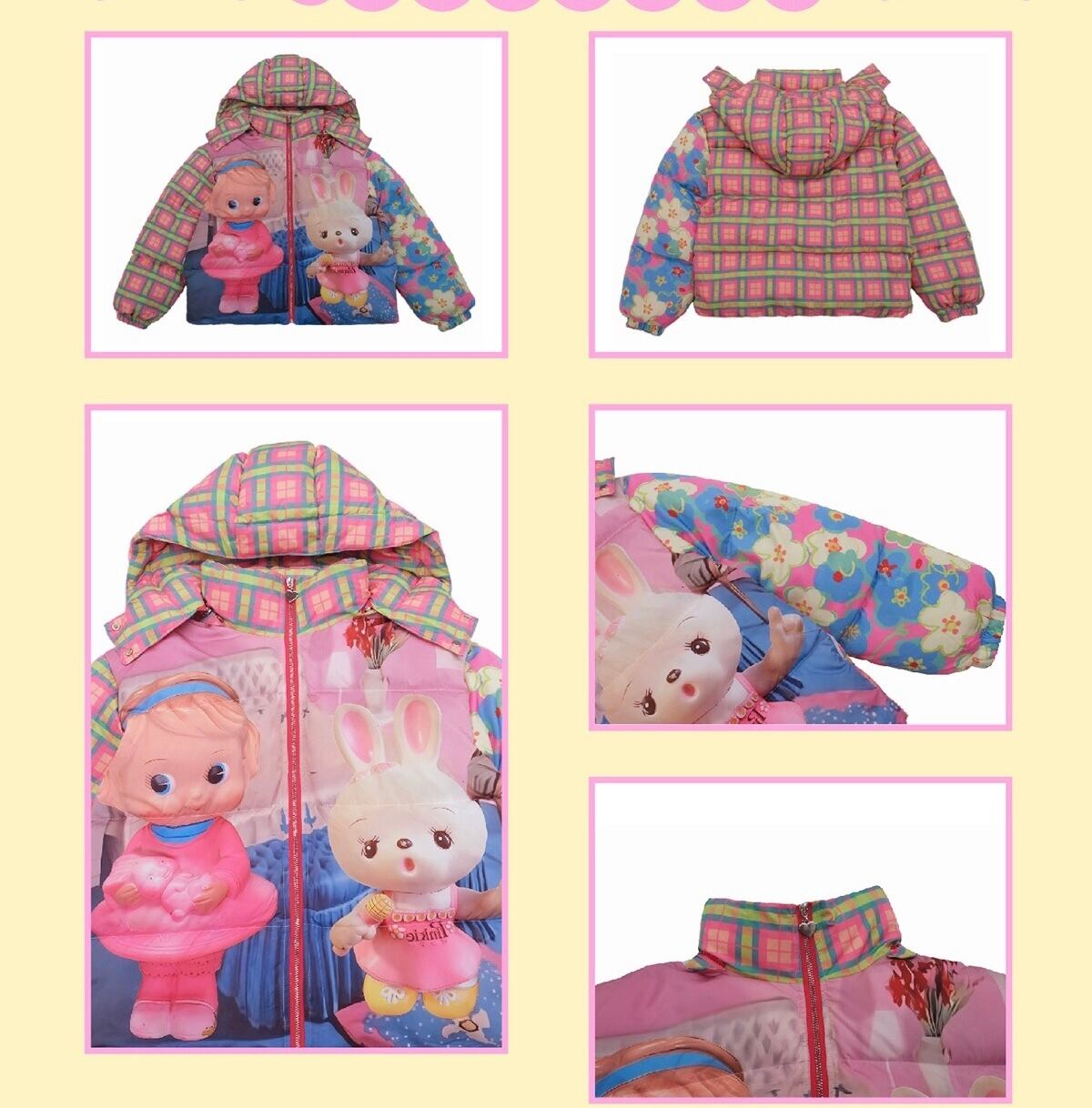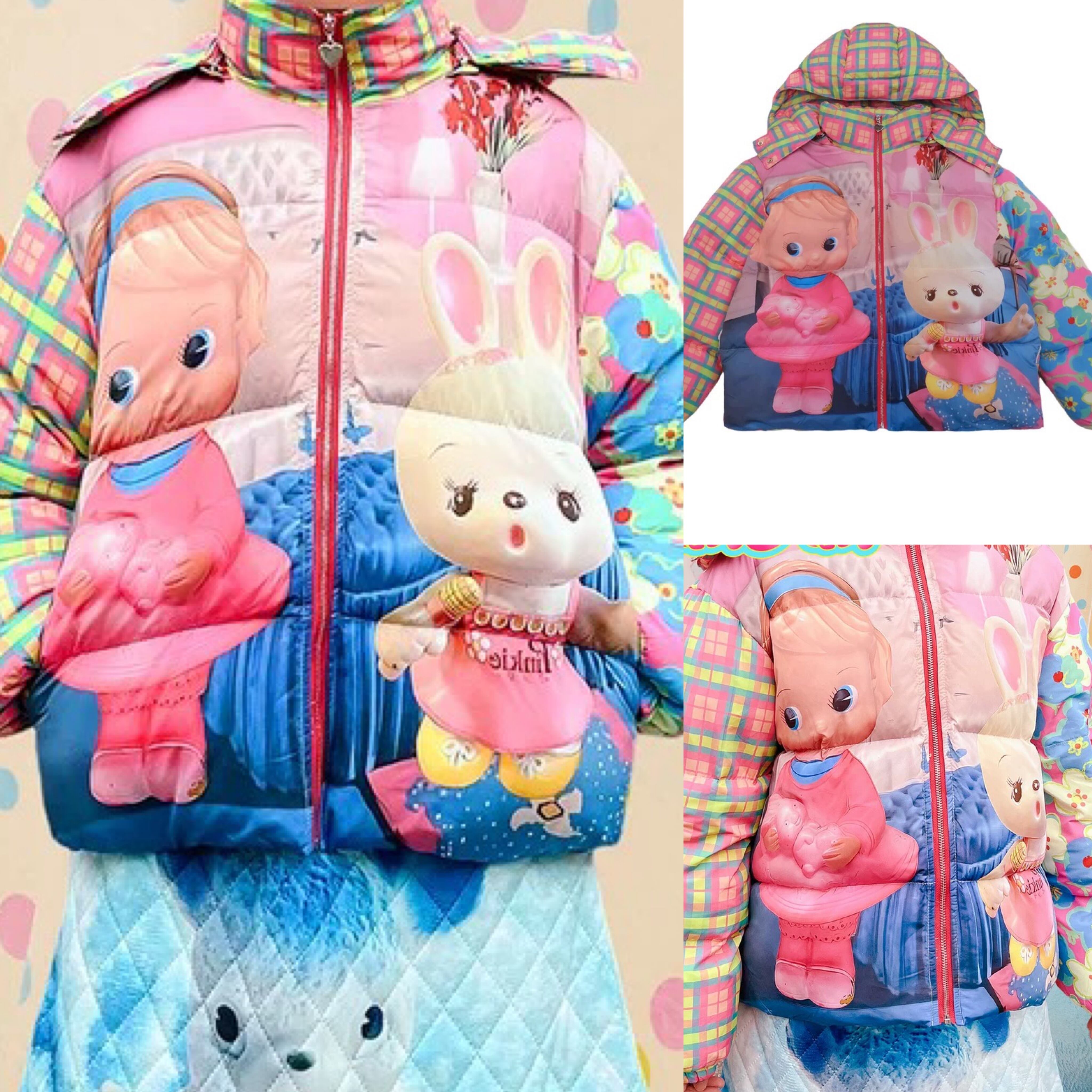 ダウン アウター コート パーカー 可愛い 原宿 人形 うさぎ チェック ピンク コート アウター ジャケット ブルゾン ガーリー 姫 カーディガン ジャケット