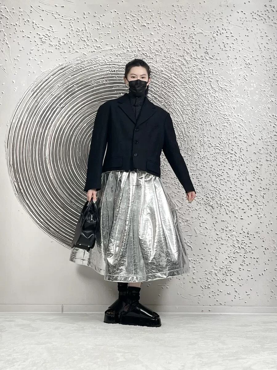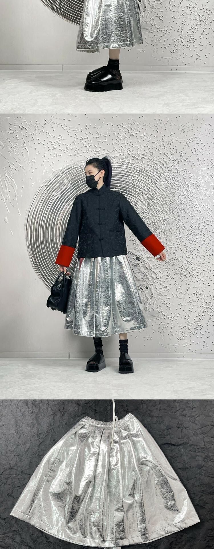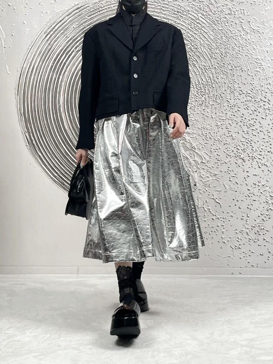 シルバー キラキラ 銀色 ボトムス フレア スカート ゴージャス ストリート プリーツスカート サイバー おしゃれ シンプル