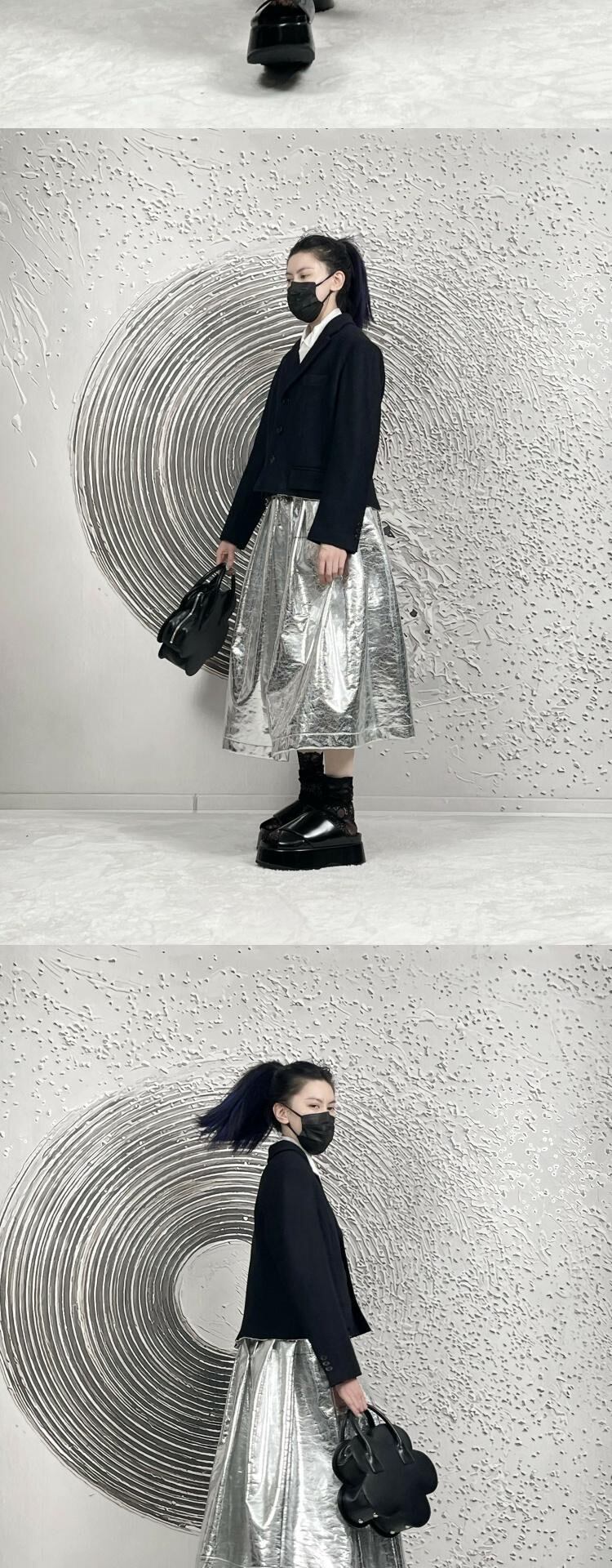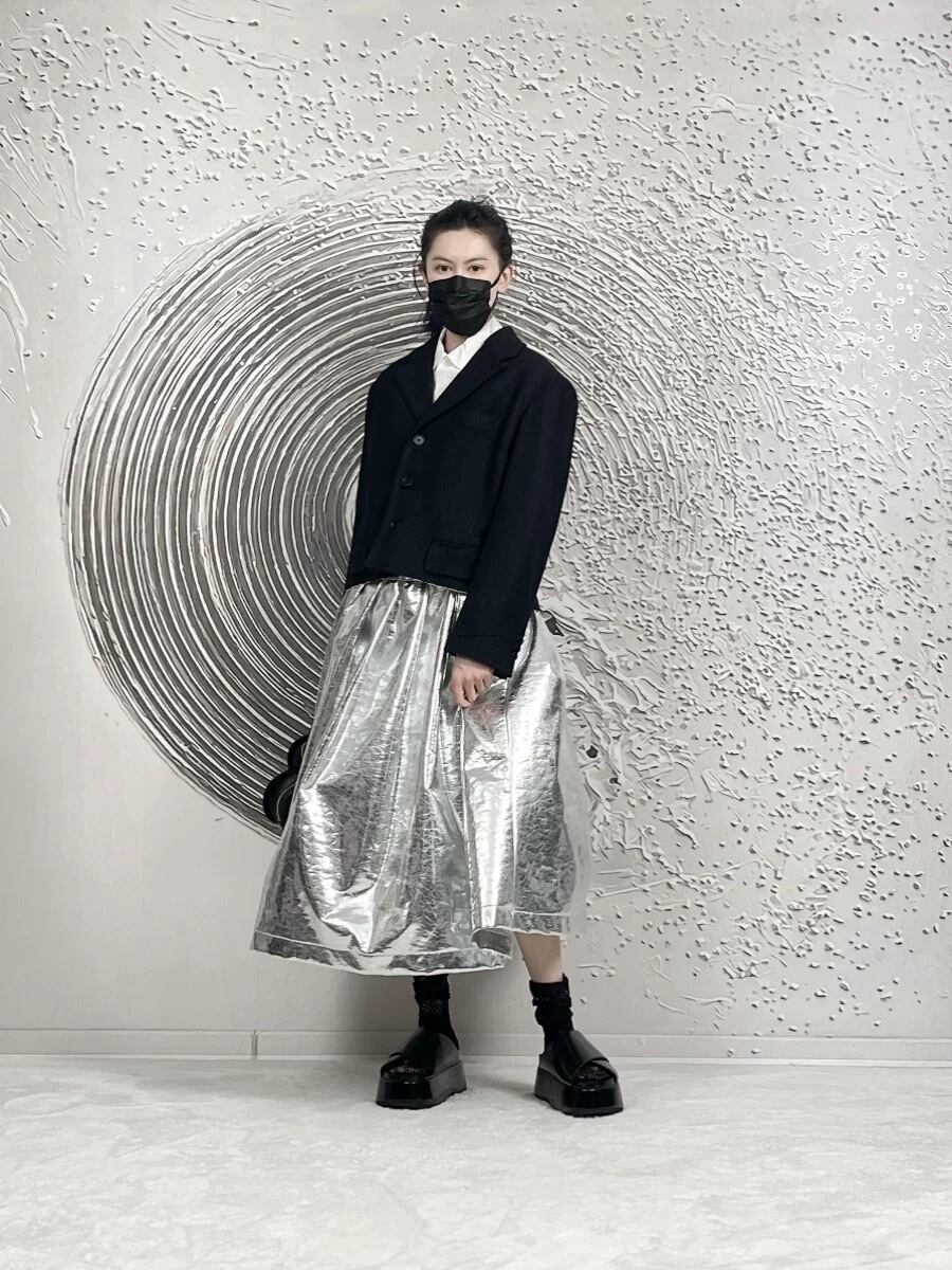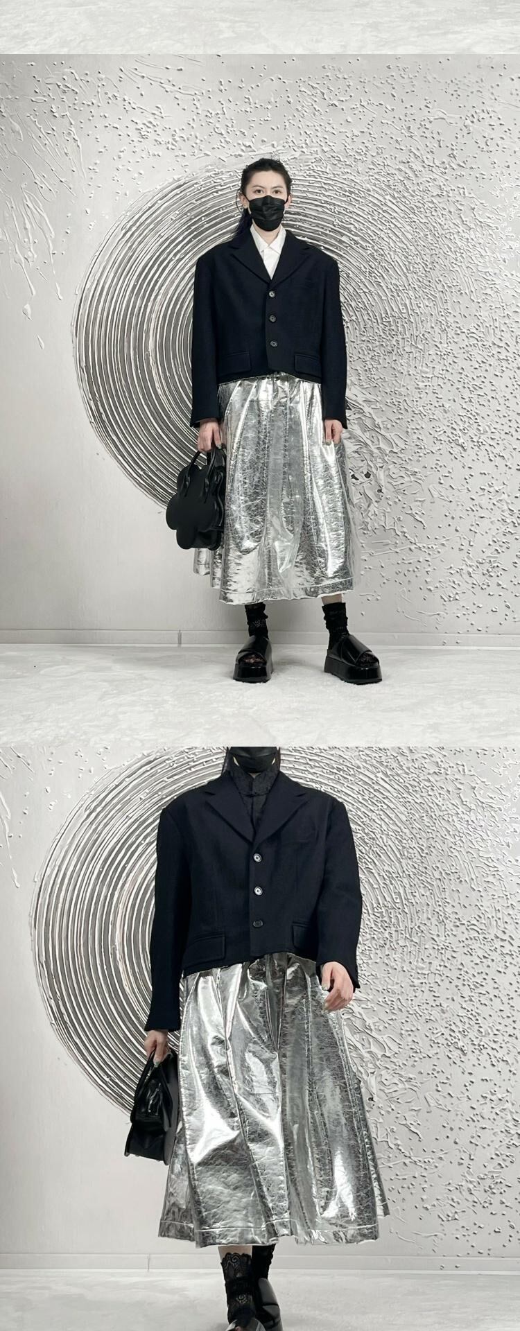シルバー キラキラ 銀色 ボトムス フレア スカート ゴージャス ストリート プリーツスカート サイバー おしゃれ シンプル