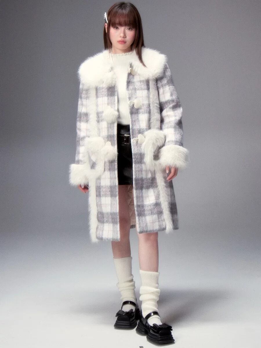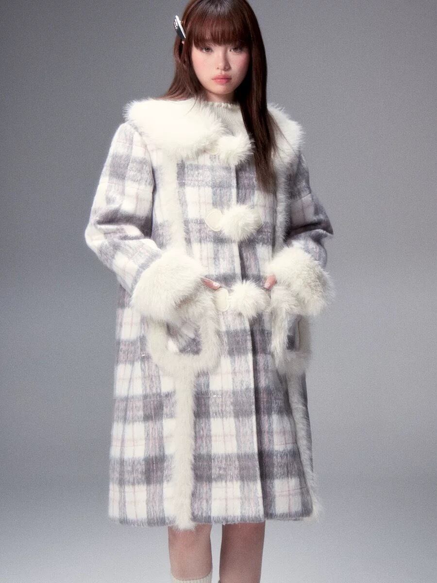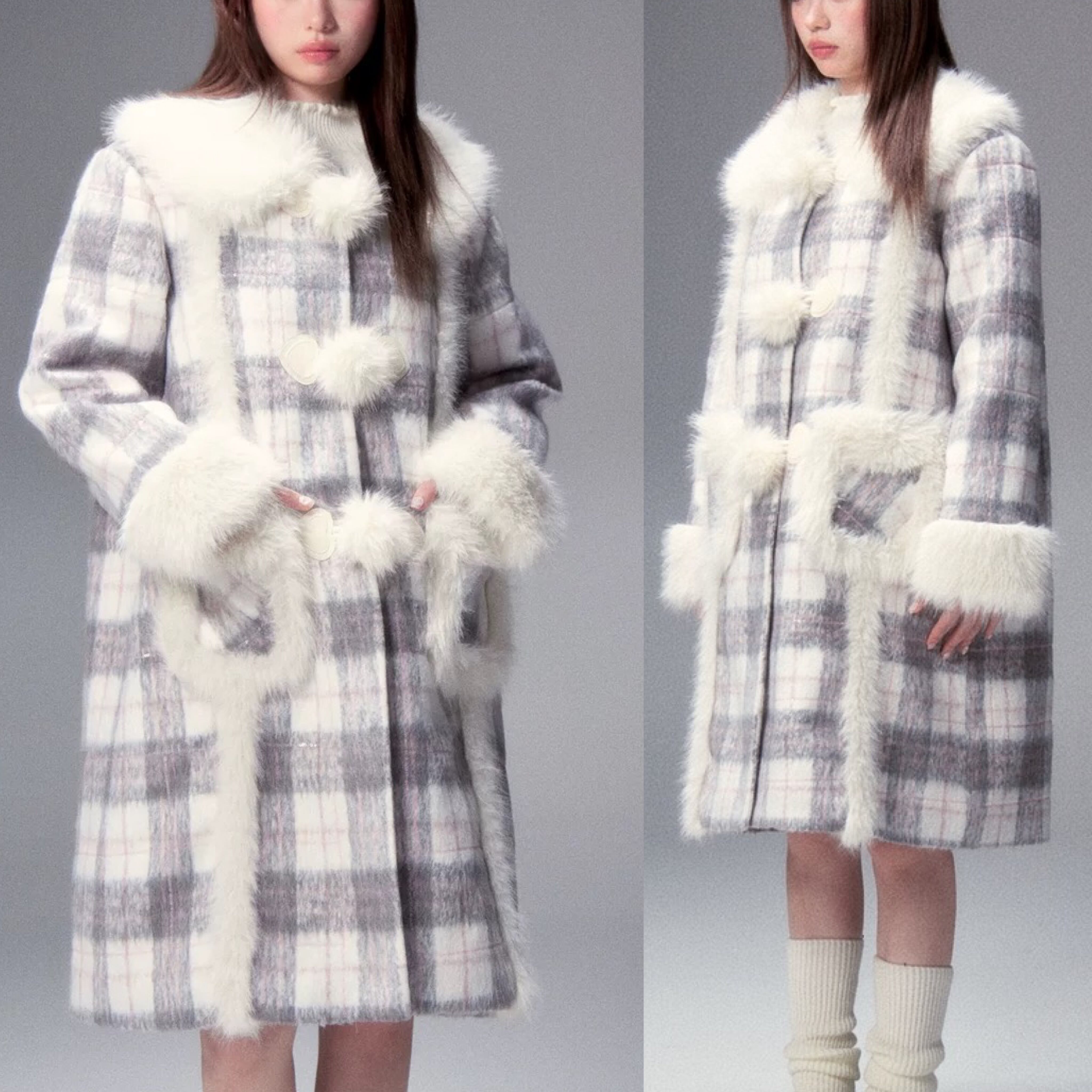 グレー チェック ガーリー お嬢様 ワンピース コート アウター ファー リボン パーカー フード 可愛い コート アウター ジャケット ブルゾン カーディガン ぽんぽん