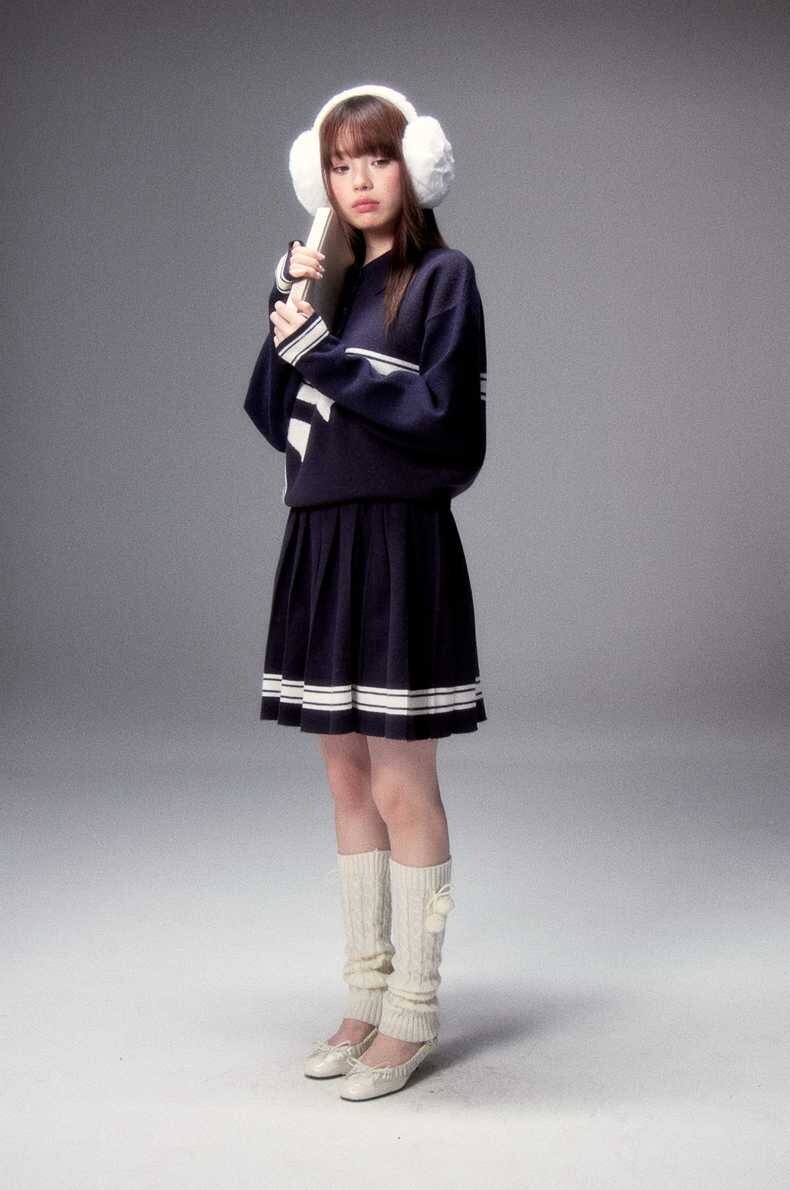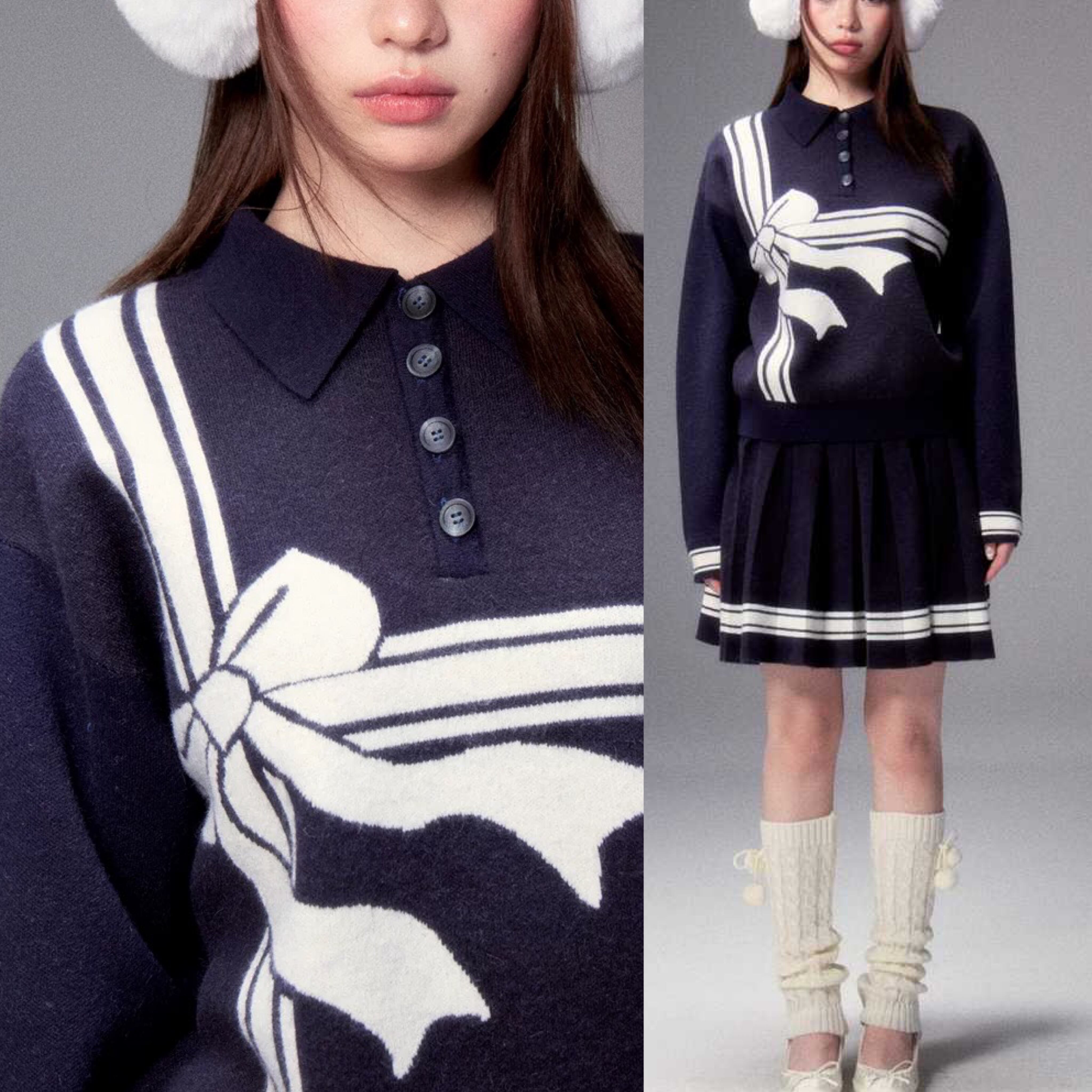 ネイビー スクール ニット カーディガン セーター トップス カジュアル リボン アウター ブラウス スクール 制服