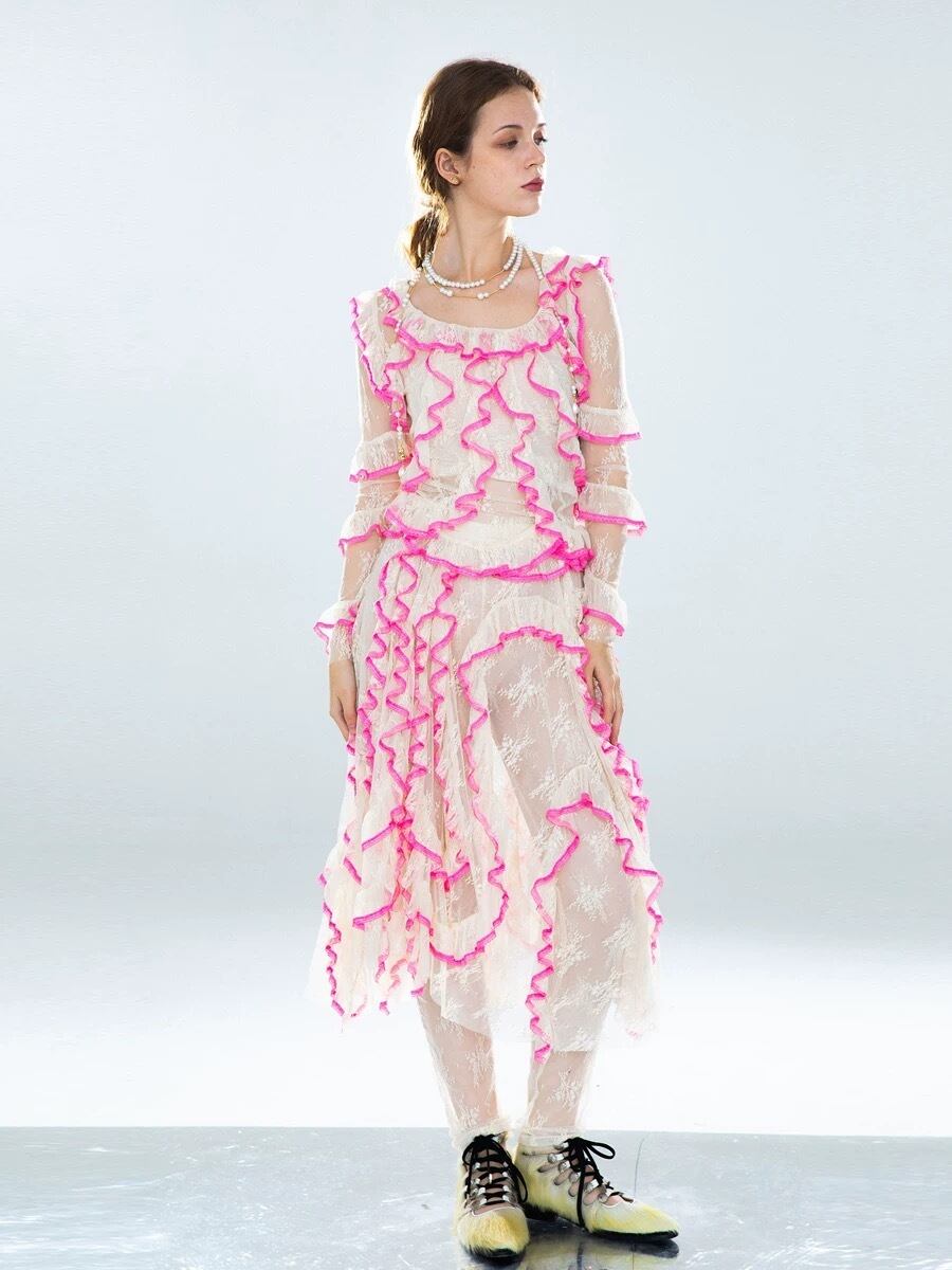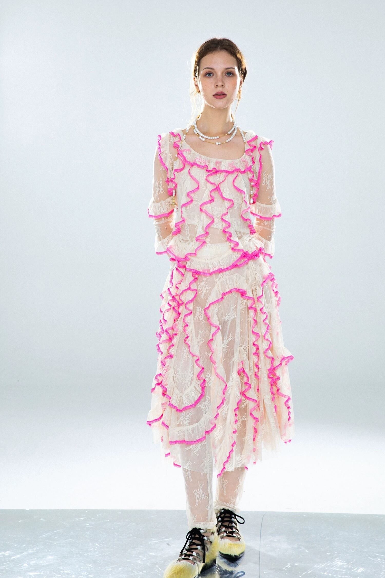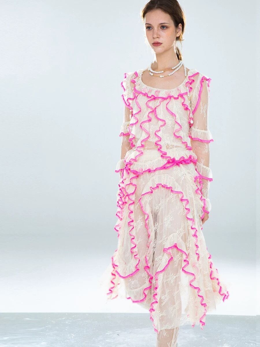 【セットアップ】白 ピンク リボン ドレス ボトムス シャツ トップス フリル ブラウス スカート ガーリー おしゃれ シースルー ツーピース ワンピース