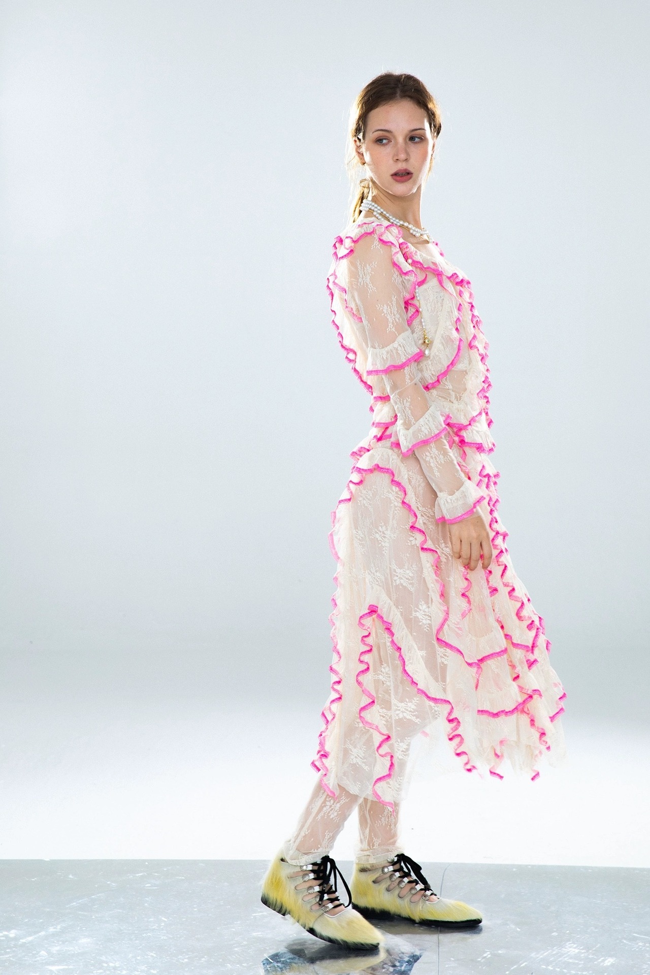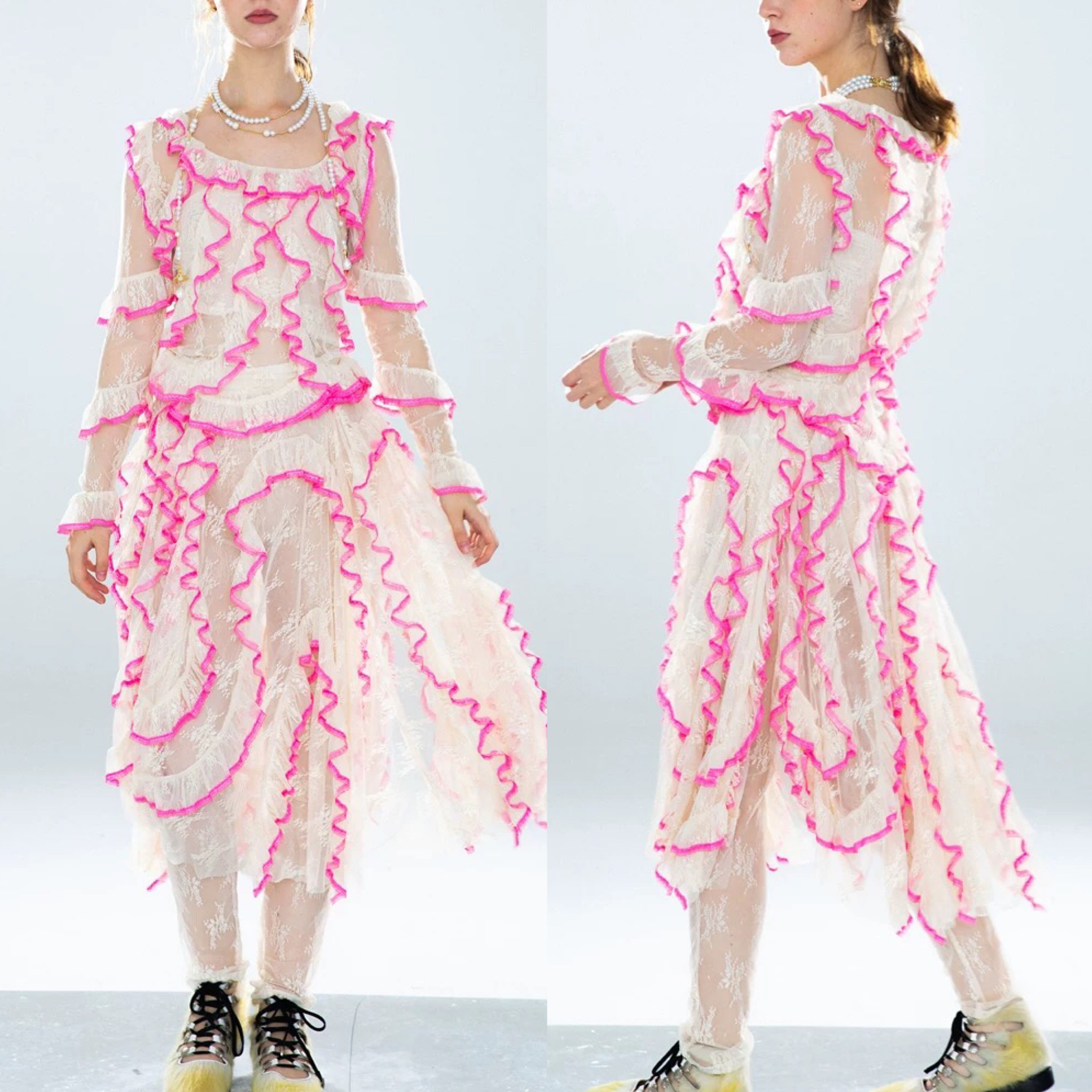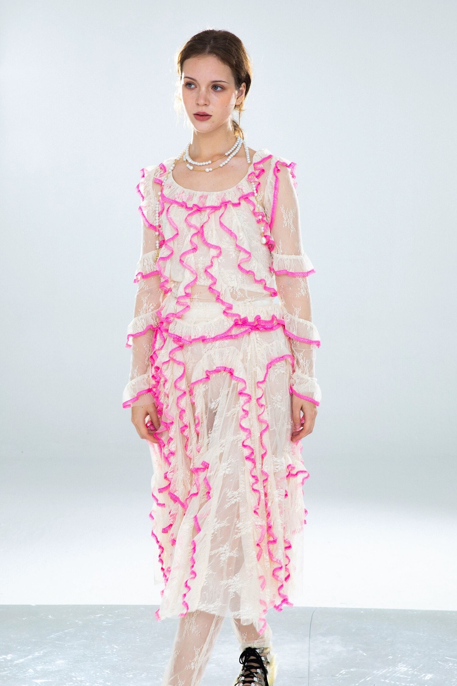 【セットアップ】白 ピンク リボン ドレス ボトムス シャツ トップス フリル ブラウス スカート ガーリー おしゃれ シースルー ツーピース ワンピース