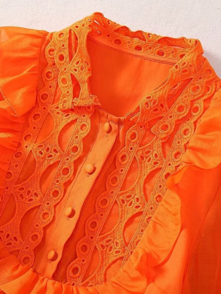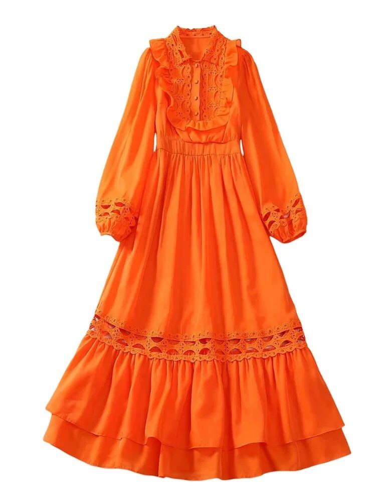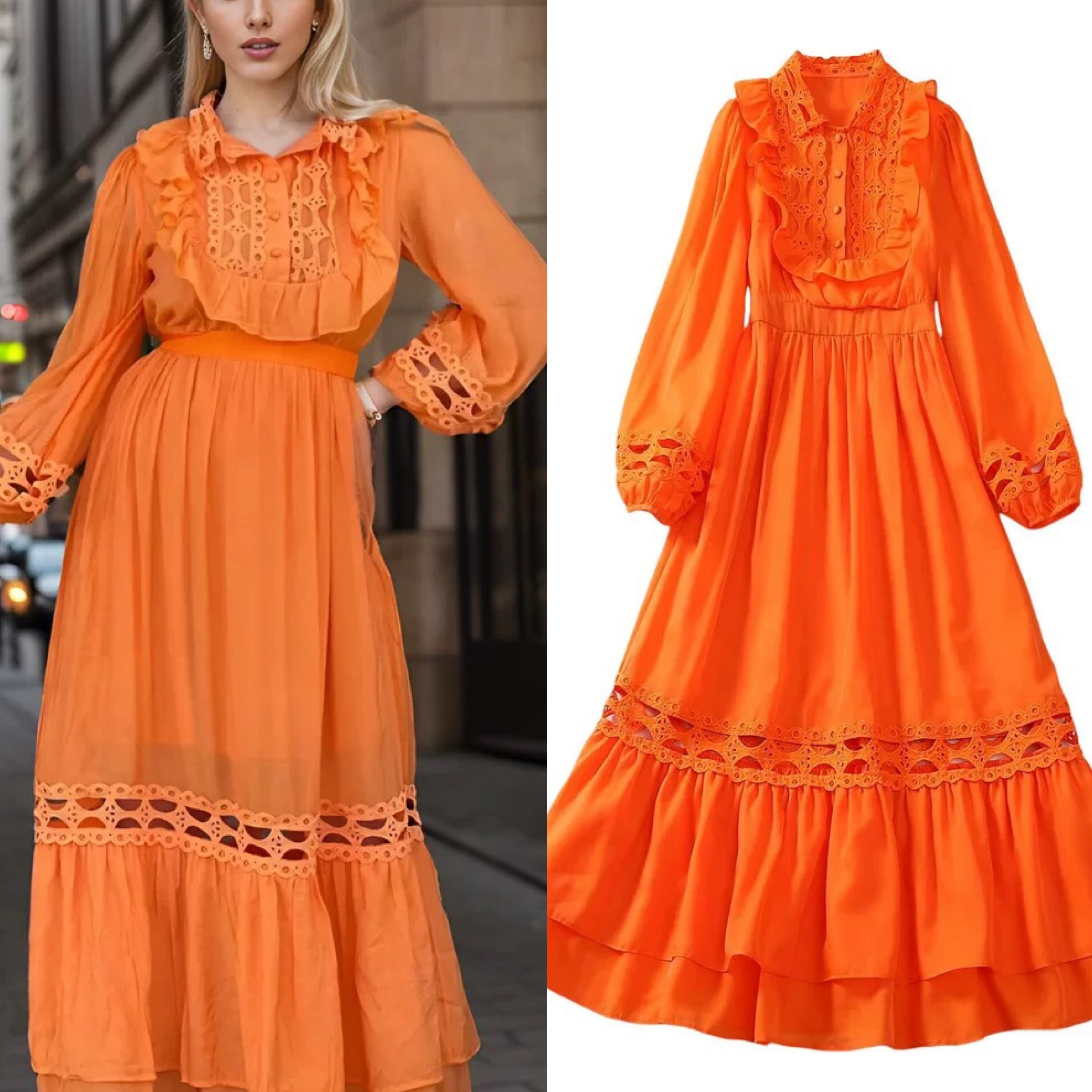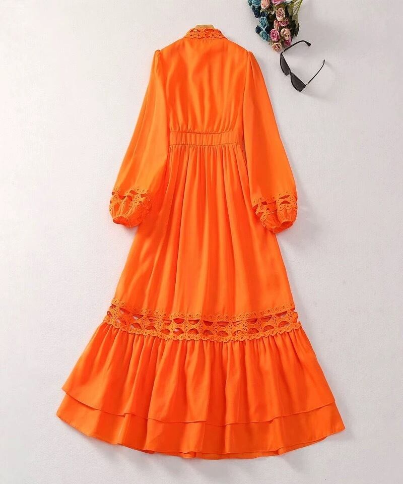 オレンジ ブラウス ゆったり XL スカート ドレス ワンピース エレガント ゴージャス マキシ リボン ロング スカート