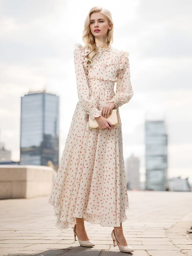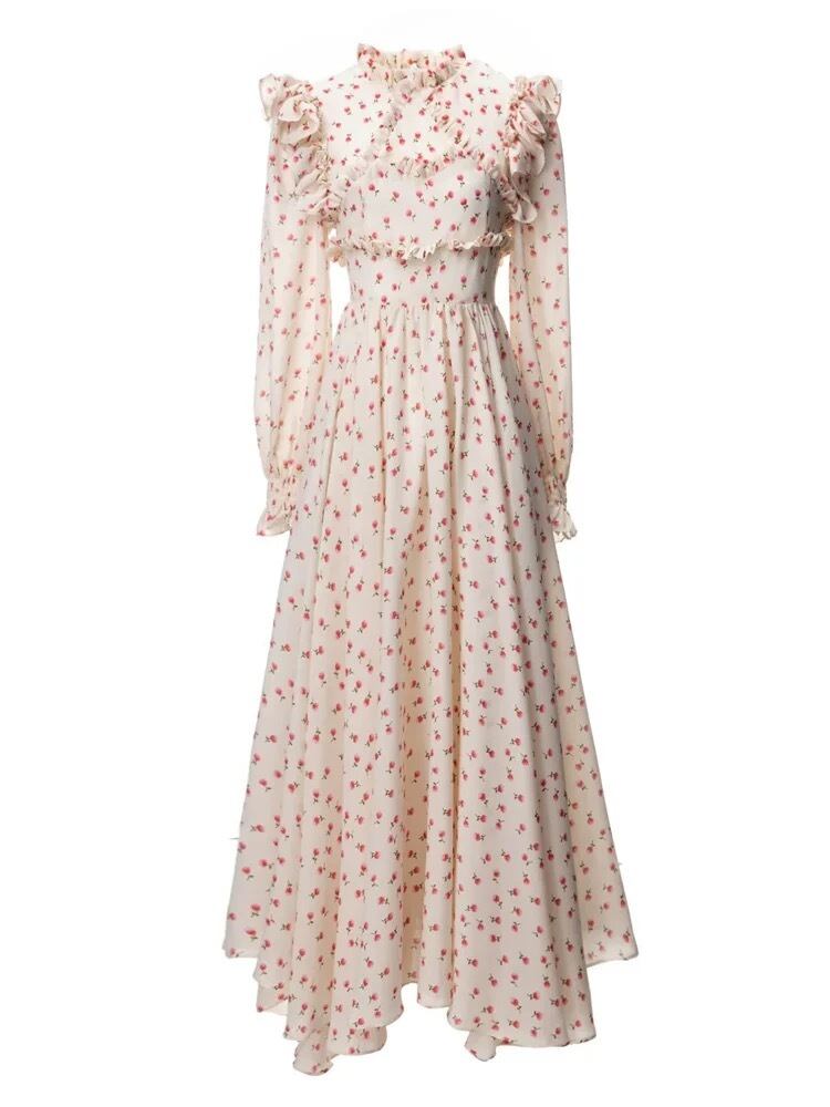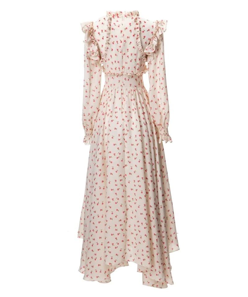 白 花柄 XL エレガント ワンピース マキシ ロング スカート ブラウス ガーリー ドレス エレガント