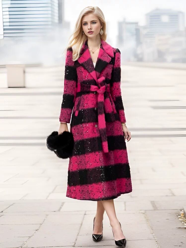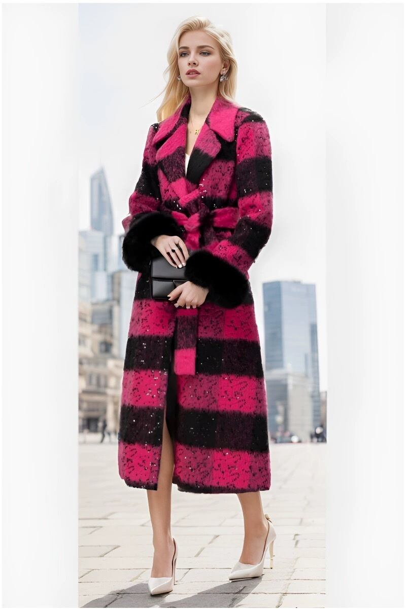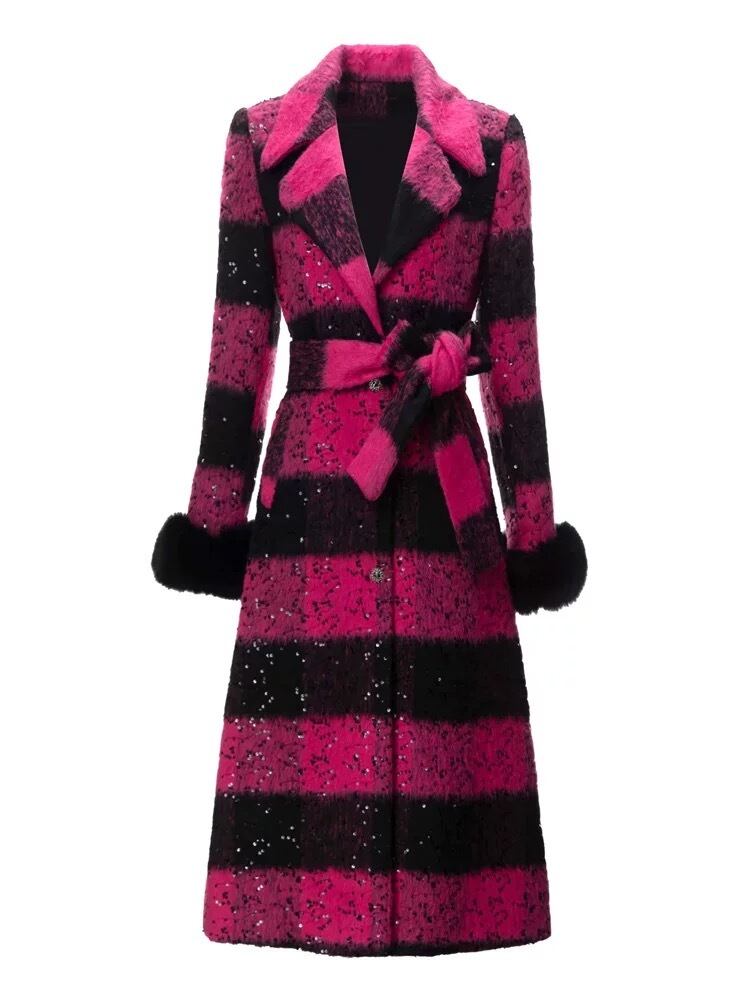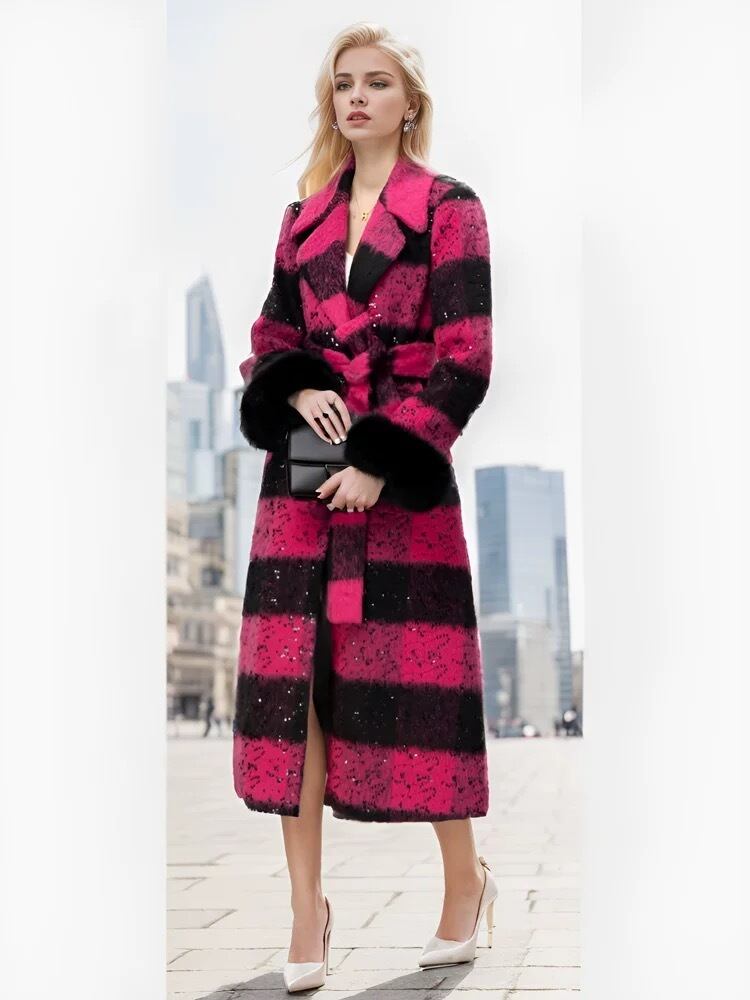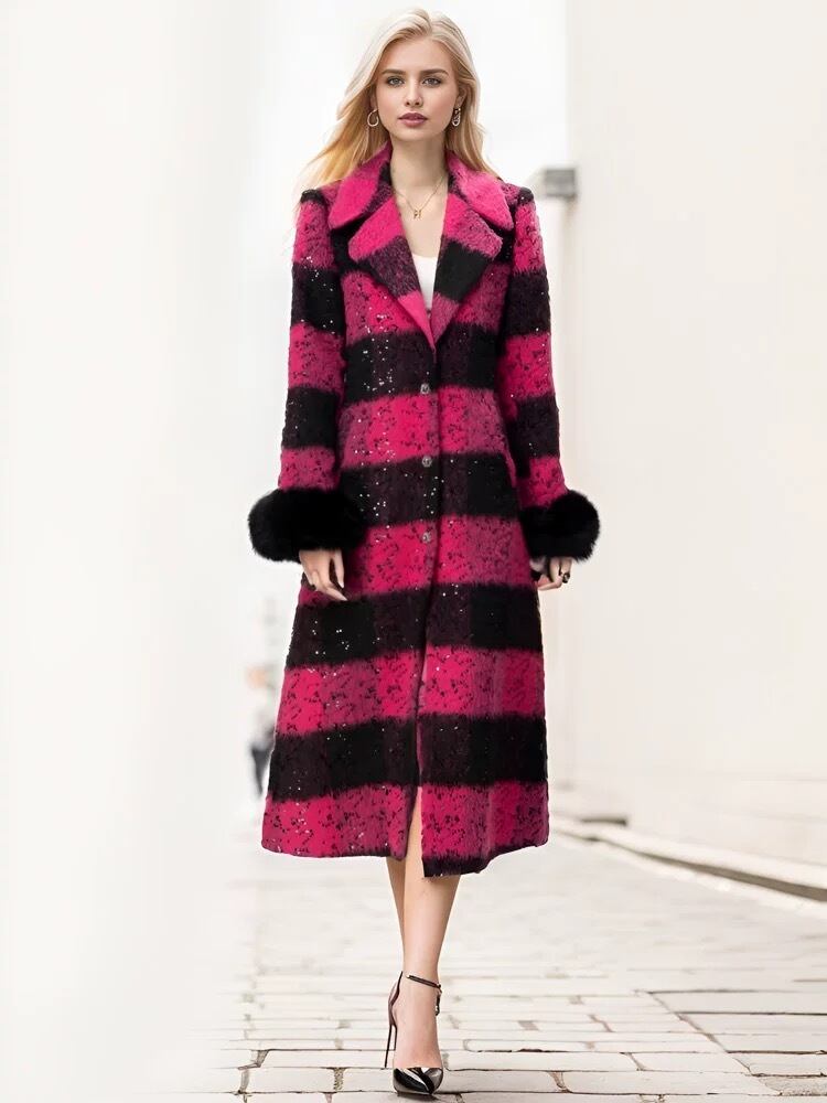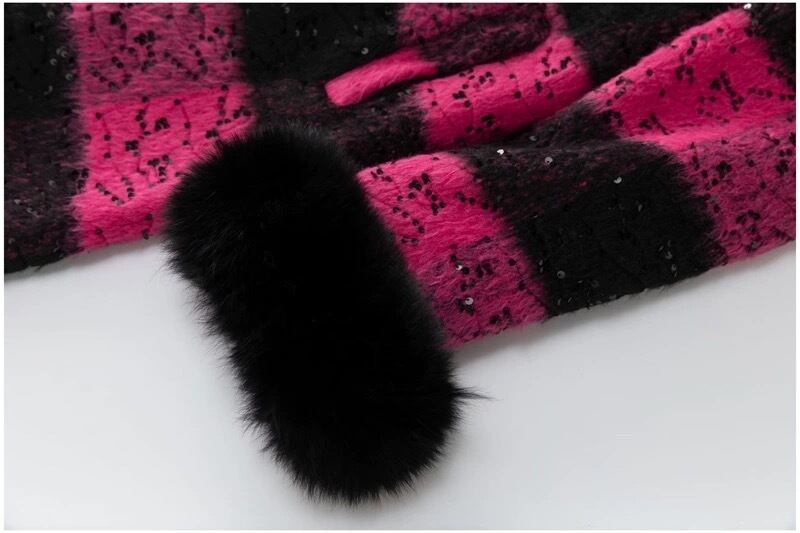 ピンク チェック 黒 ファー アウター ジャケット コート ブラウス カーディガン アウター XL キラキラ ラメ ゆったり ワンピース