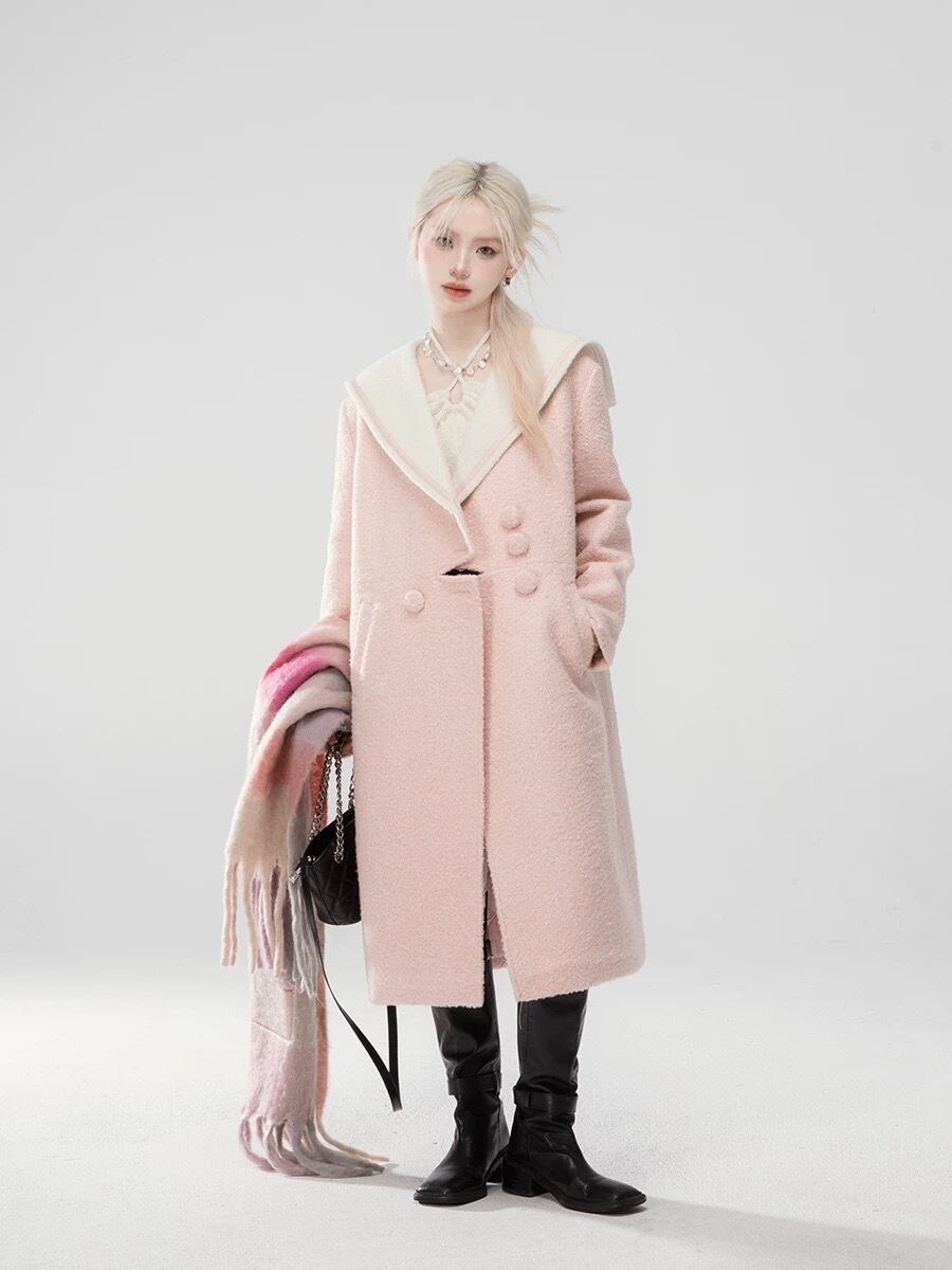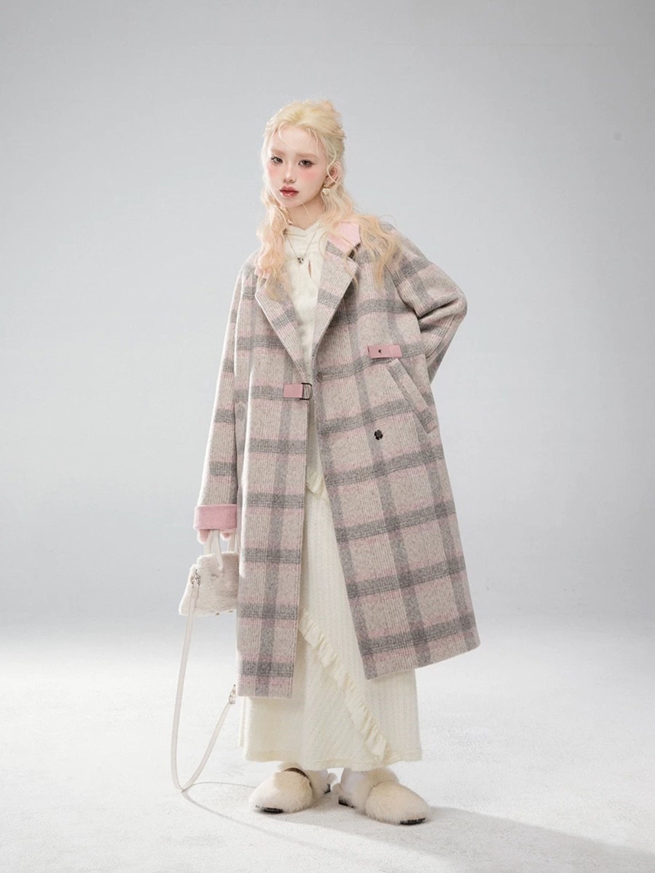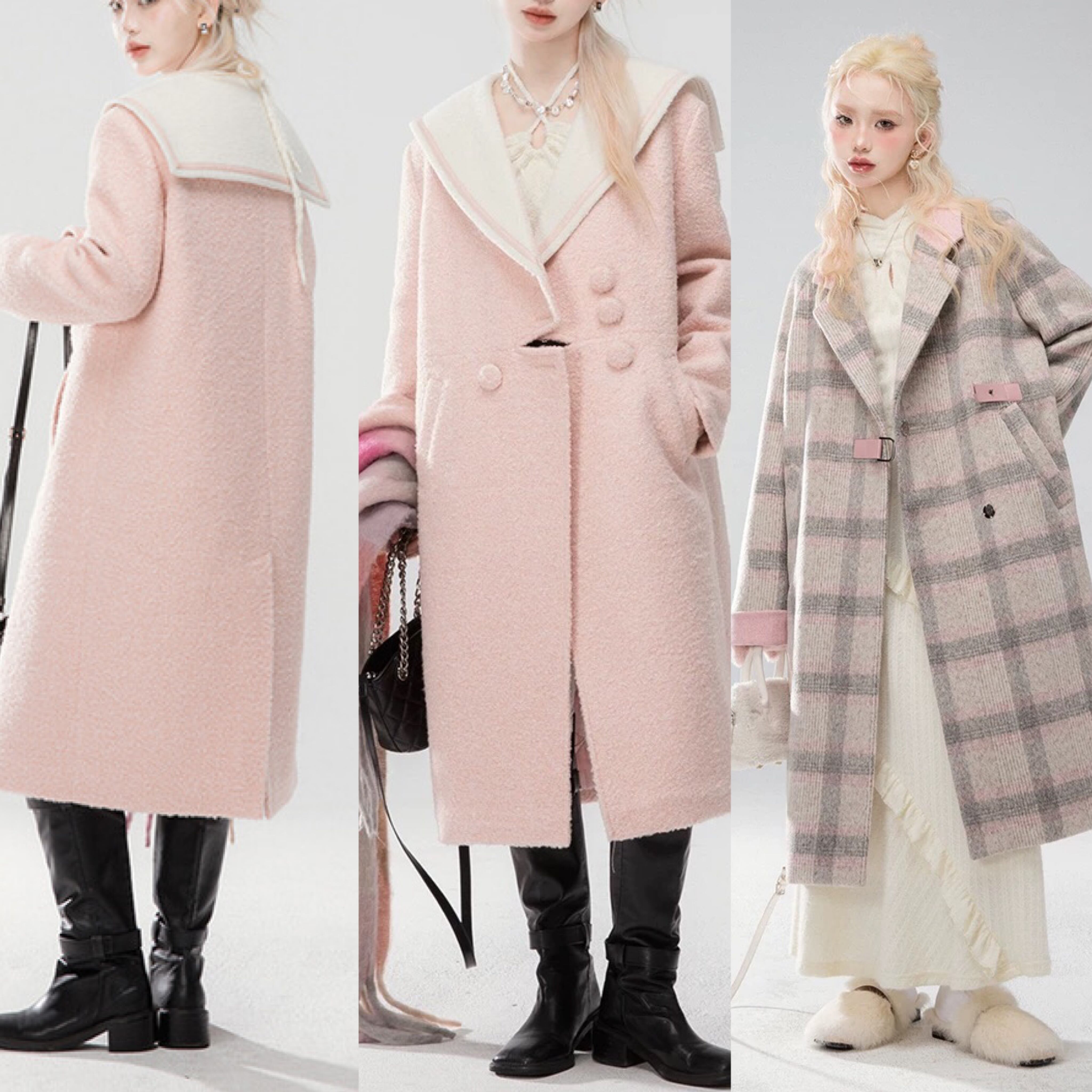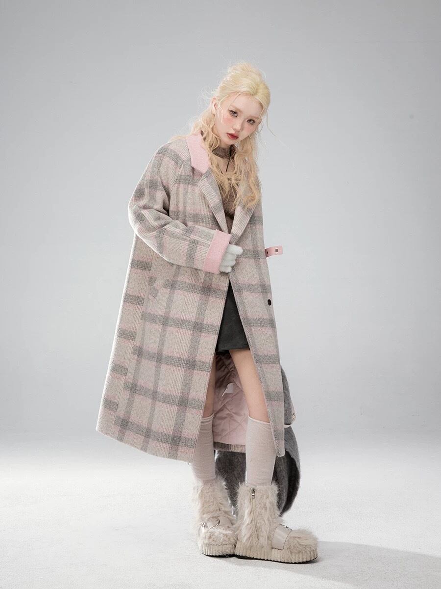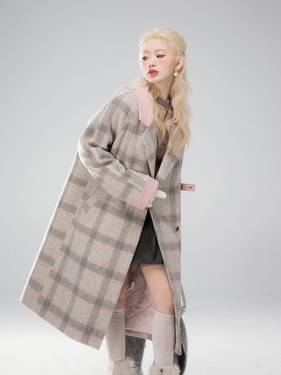 コート ワンピース ピンク セーラ チェック グレー 可愛い 原宿 シンプル ガーリー マキシ ロング カーディガン ジャケット