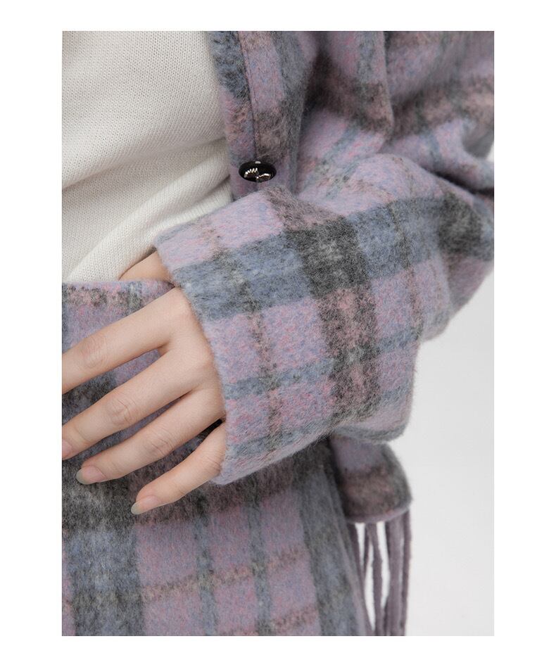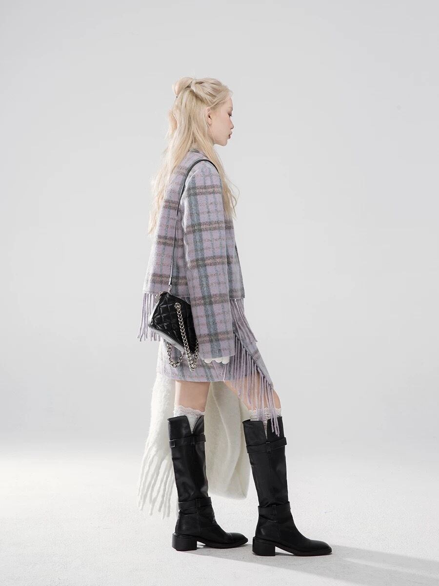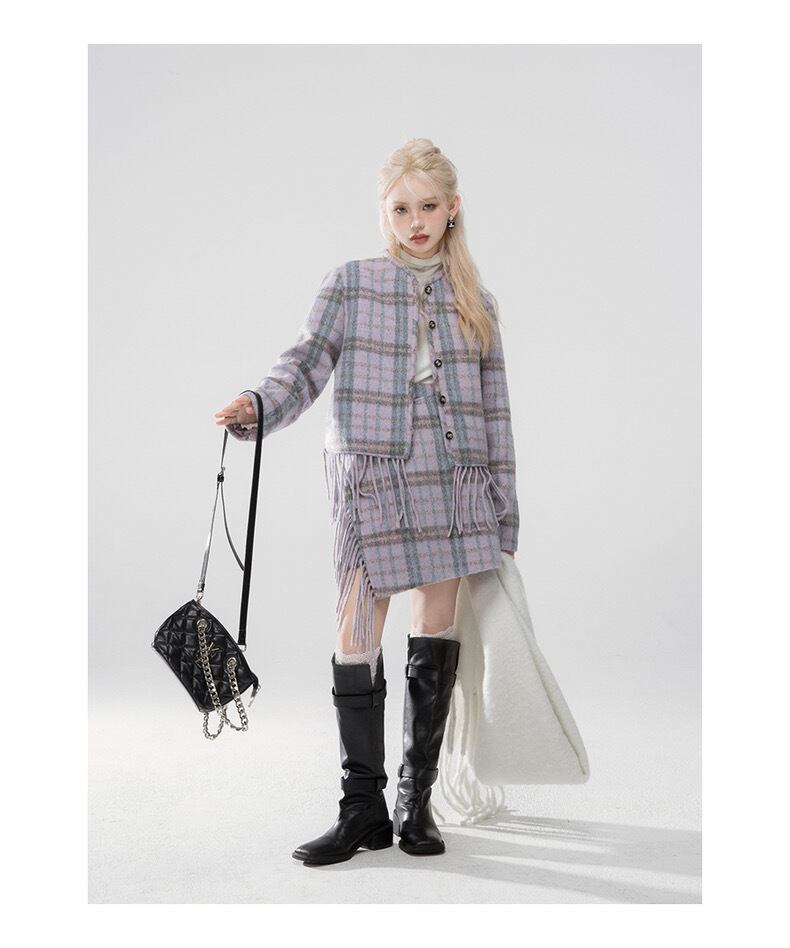 【ジャケット】紫 パープル チェック セットアップ スーツ ジャケット アウター コート ガーリー フリンジ アウター ジャケット カーディガン セーター アウター フリンジ