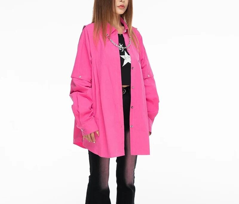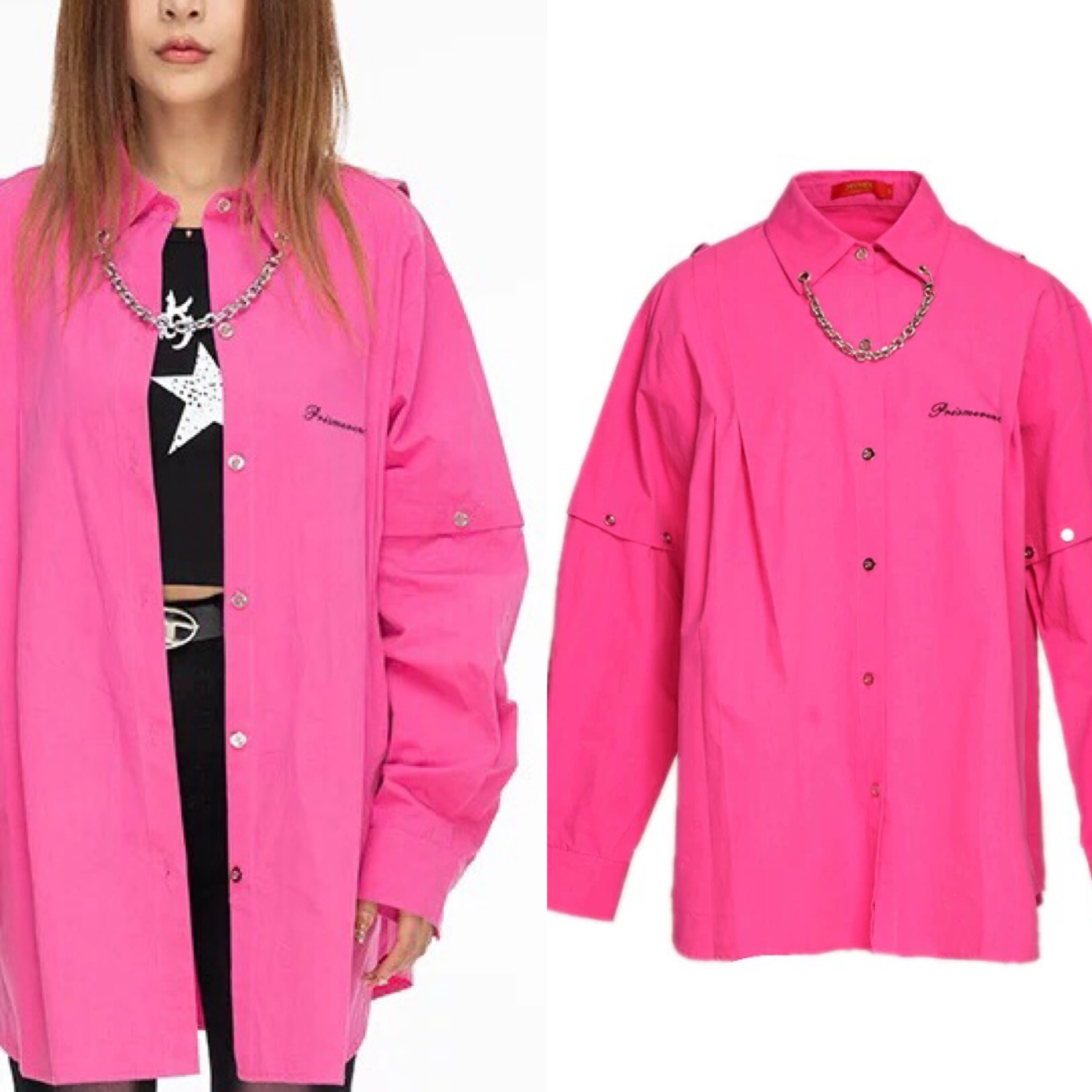ブラウス アウター ジャケット シャツ ネックレス ジャケット ブラウス ブルゾン アウター カーディガン ストリート ヒップホップ ピンク カジュアル 原宿 ダンス