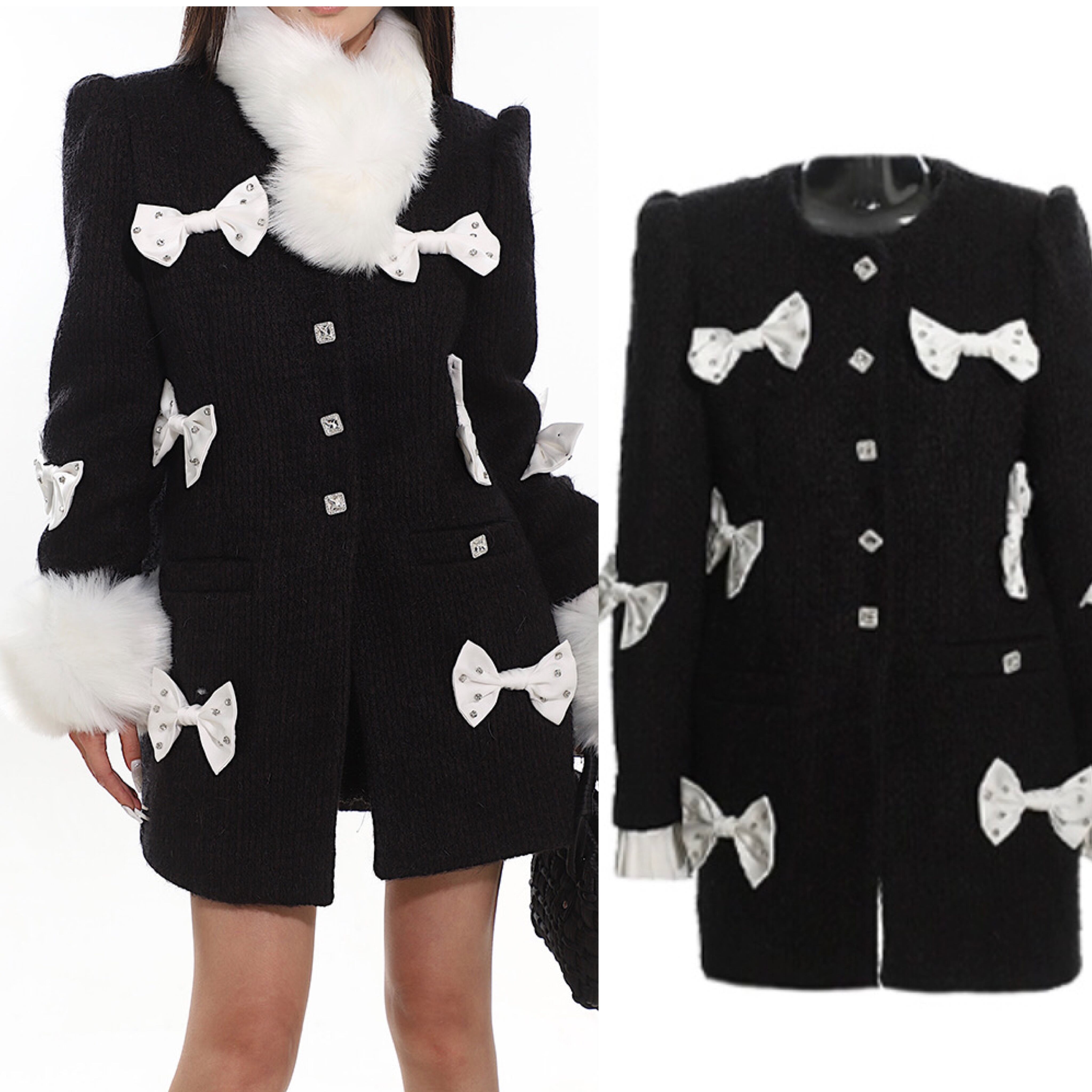 【黒】リボン アウター ジャケット カーディガン コート ワンピース デコレーション 黒 白 リボン ガーリー ストリート 個性的 ジャケット カーディガン ブルゾン ジャンパー