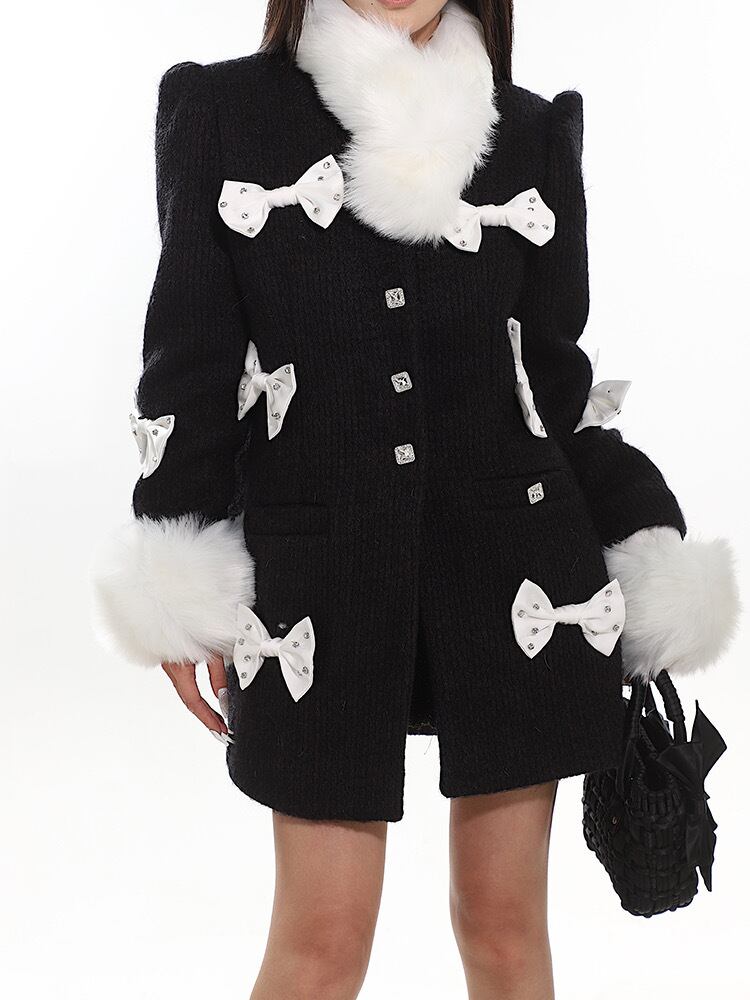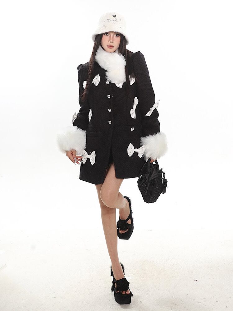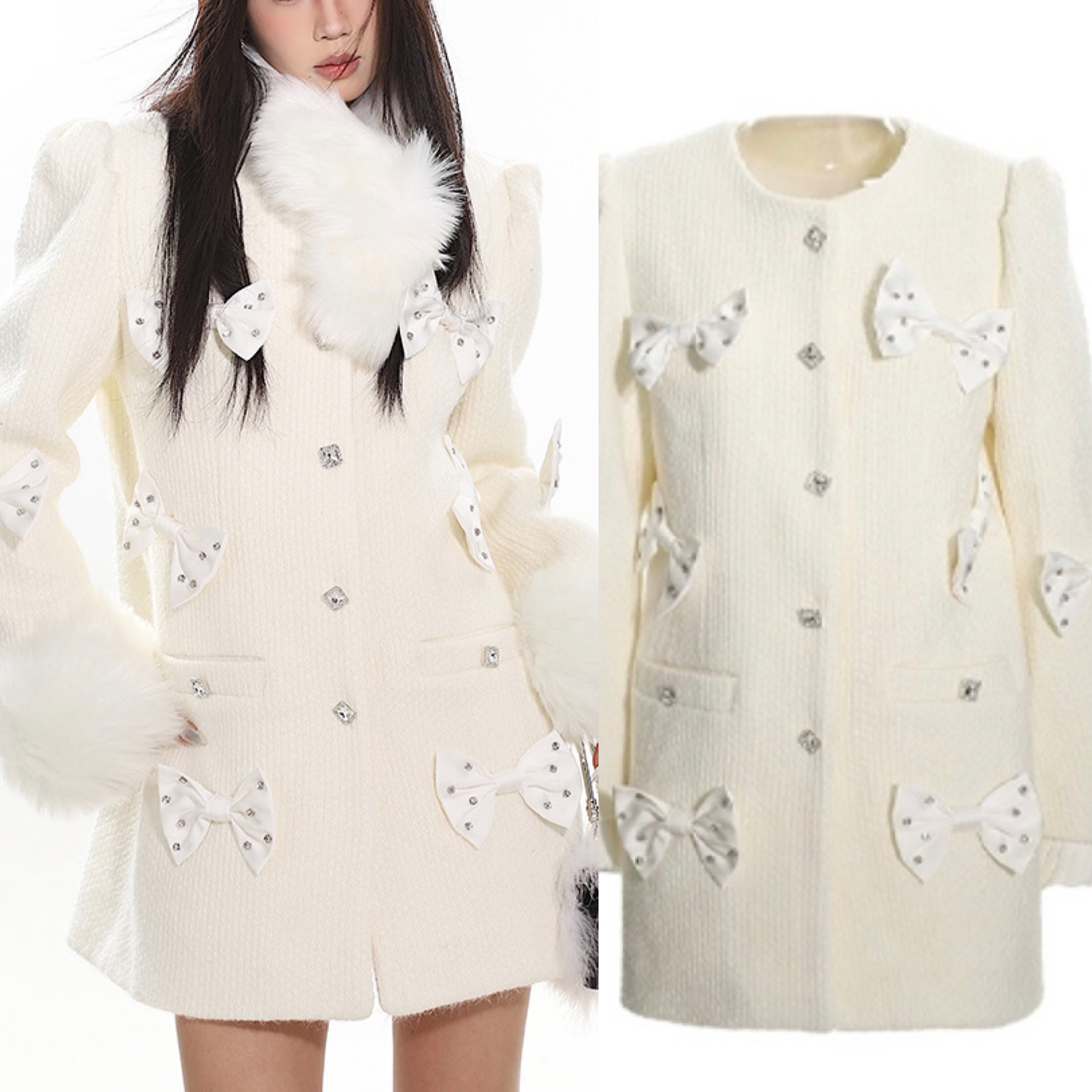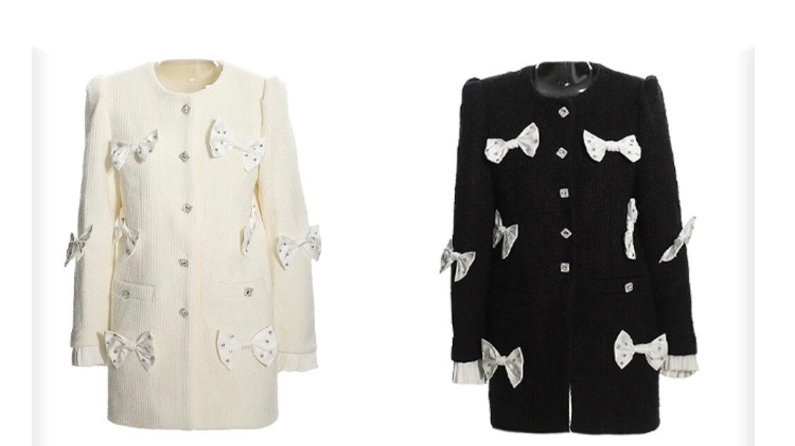【白】リボン アウター ジャケット カーディガン コート ワンピース デコレーション 黒 白 リボン ガーリー ストリート 個性的 ジャケット カーディガン ブルゾン ジャンパー
