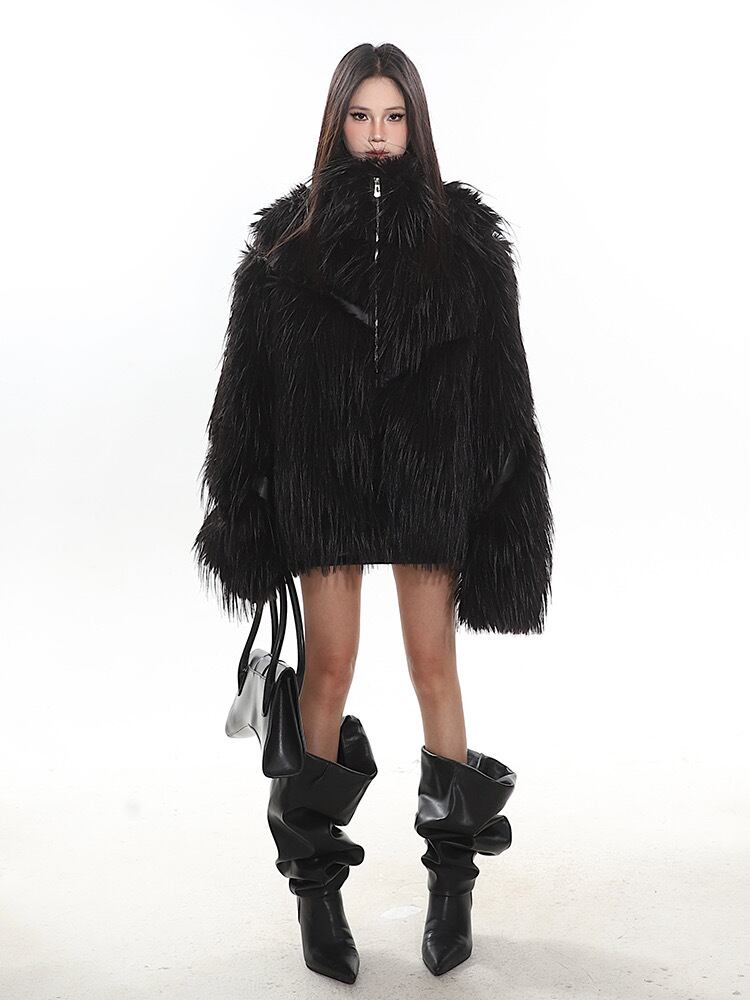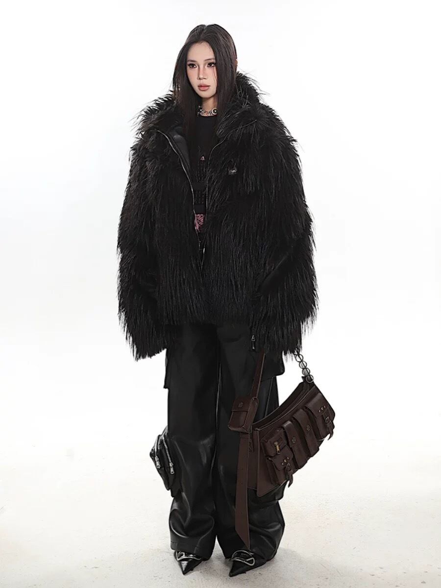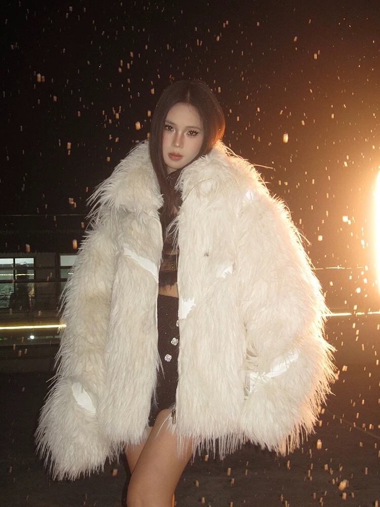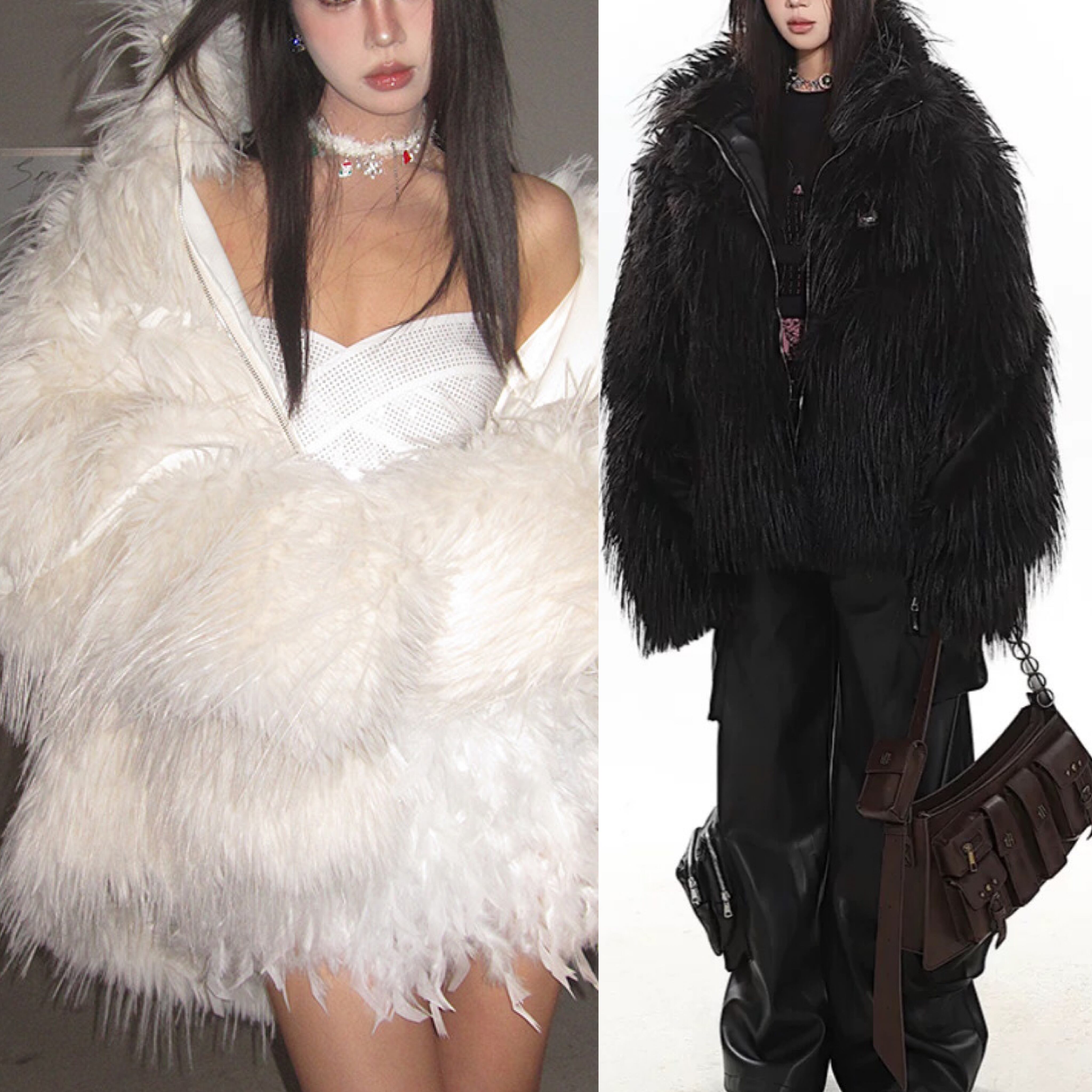 ファー 黒 白 コート アウター ジャケット ブルゾン ジャンパー カーディガン ゴージャス 白 黒 ヒップホップ 渋谷 ストリート