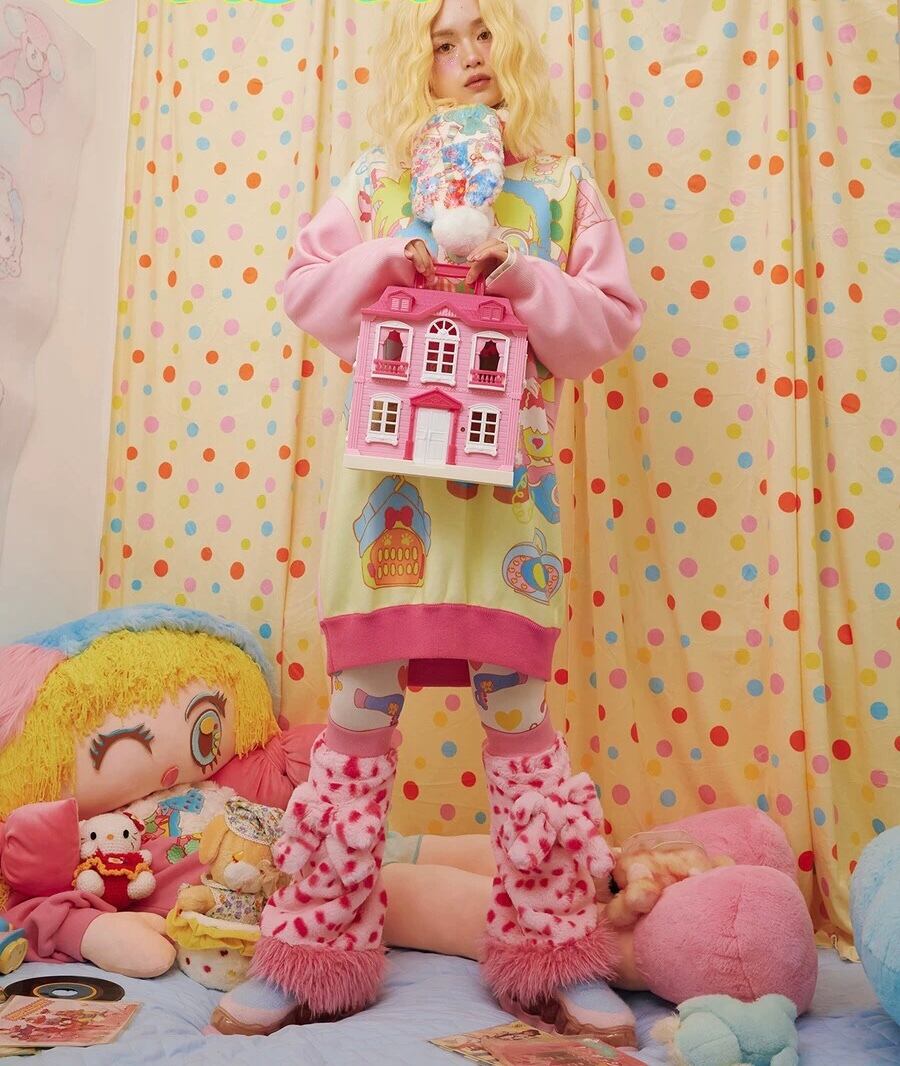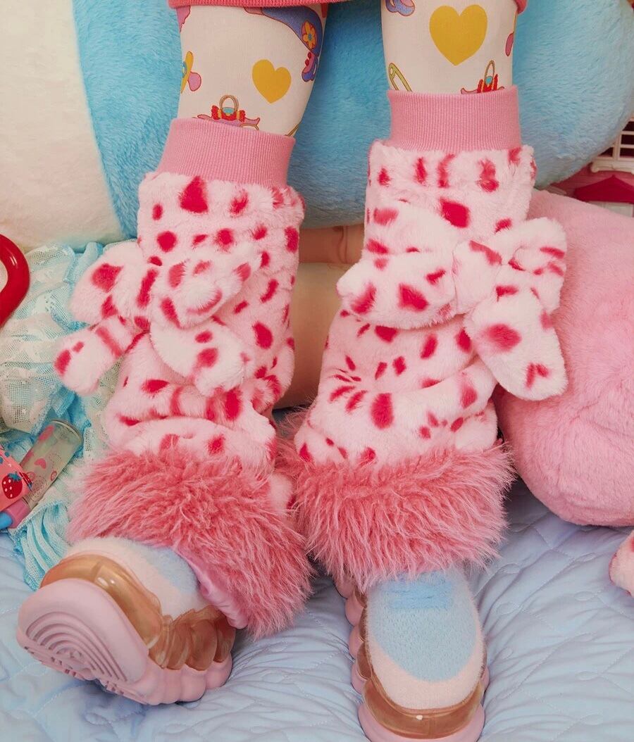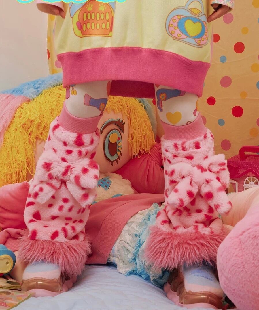 レッグウォーマー 靴下 ピンク 姫 可愛い 原宿 渋谷 ガーリー 足 タイツ レギンス 水玉 リボン ファー 小物 ガーリー 姫 ロリータ