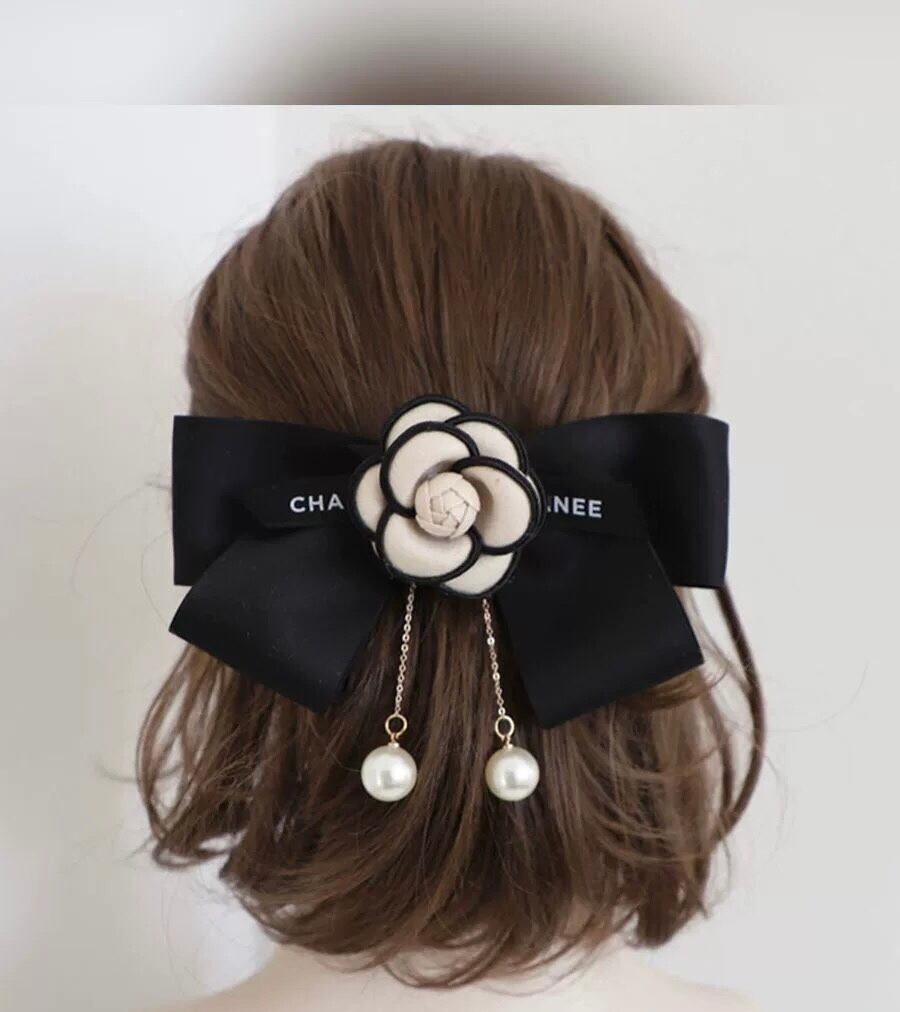 ヘアアクセ アクセサリー リボン カメリア 花柄 フラワー パール ゆらゆら