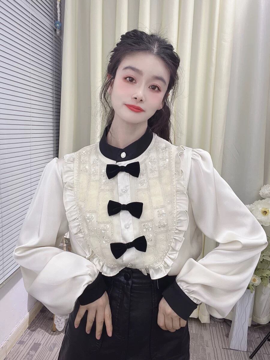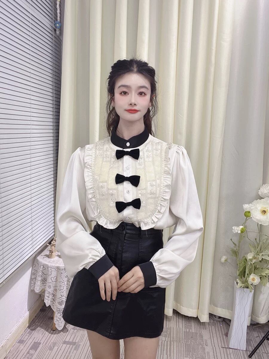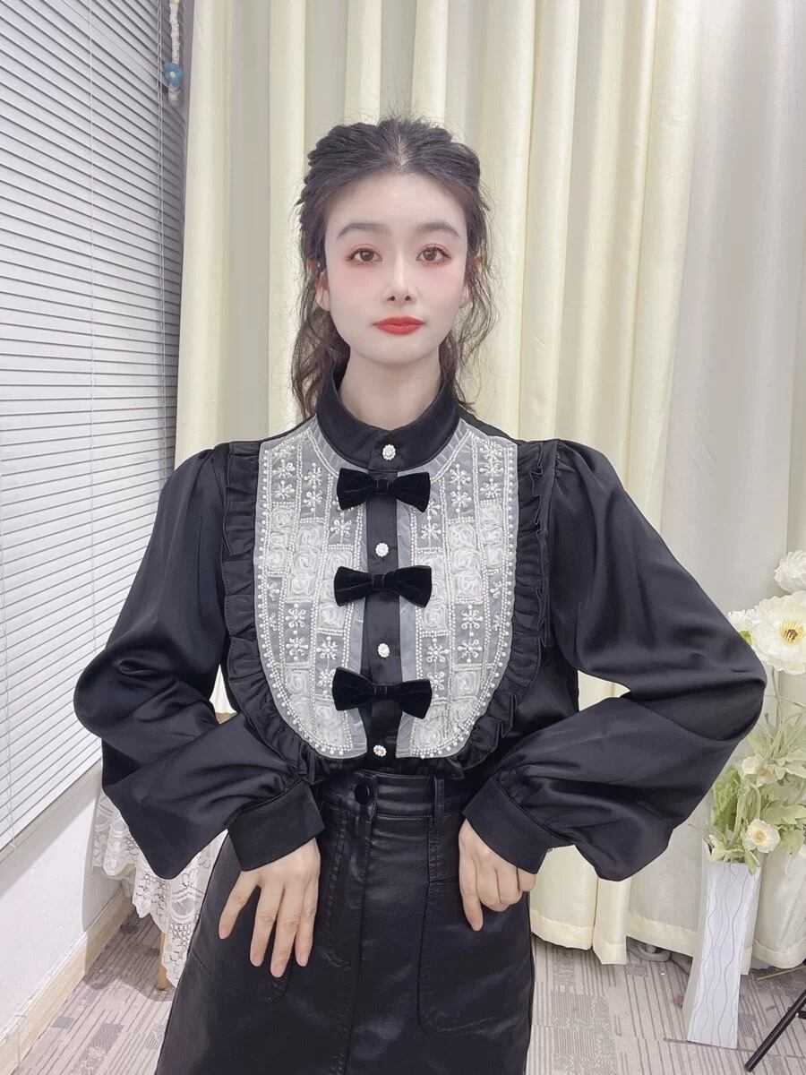 ピンク 黒 ホワイト 白 リボン シャツ ブラウス ガーリー お嬢様 トップス レース エレガント