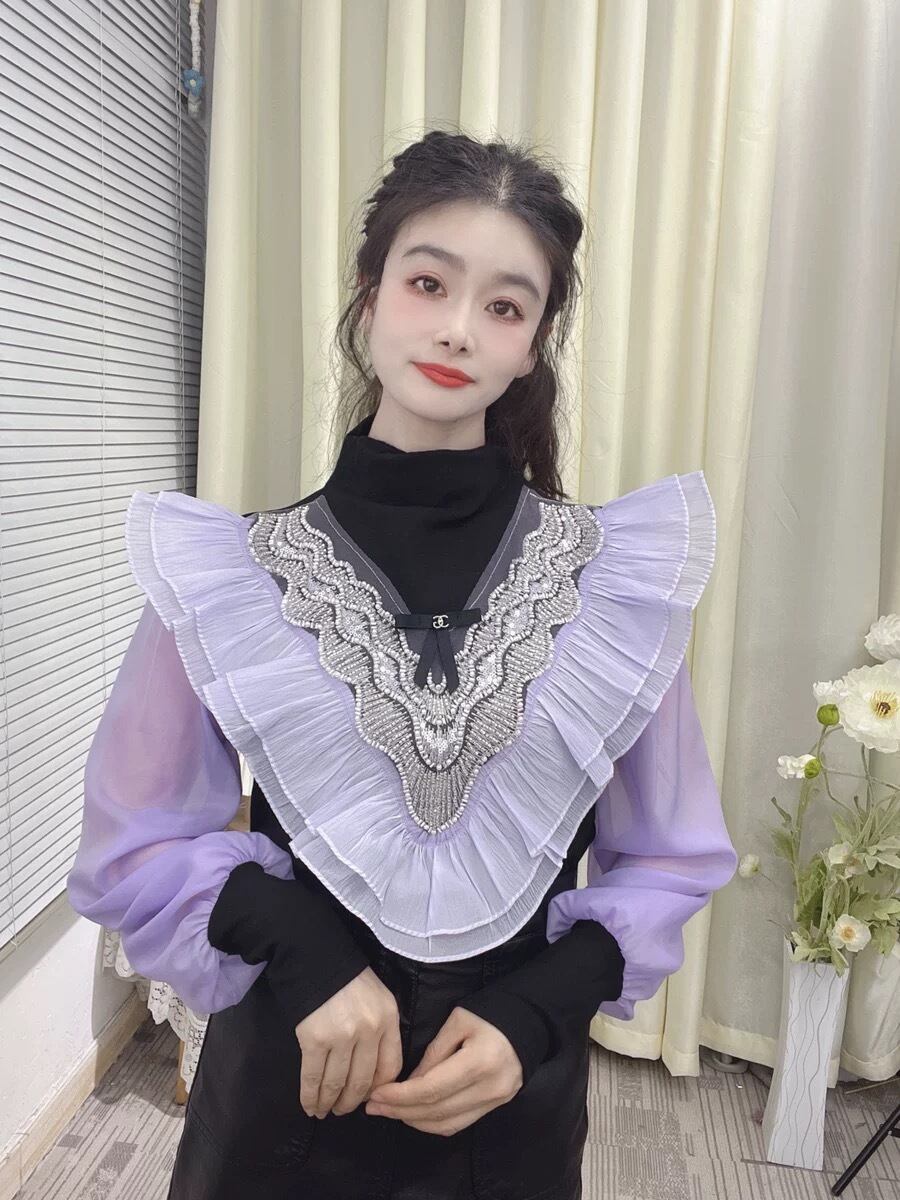 紫 ベージュ 白 フリル ピンク 黒 ホワイト 白 リボン シャツ ブラウス ガーリー お嬢様 トップス レース エレガント