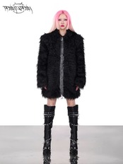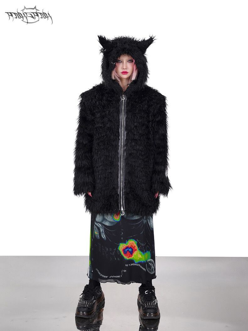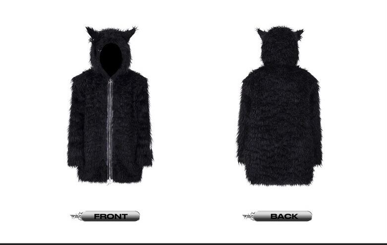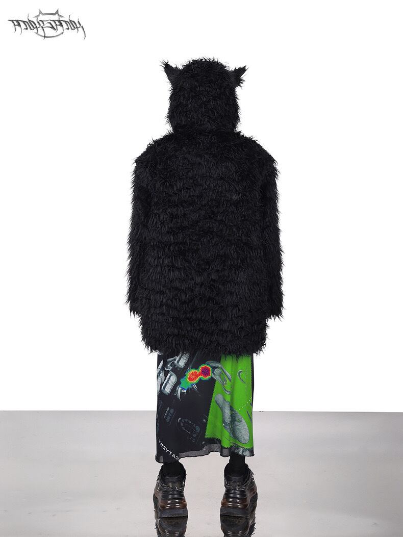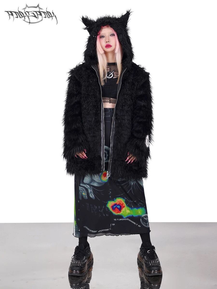 黒 ブラック ファー コート パーカー パーカー トレーナー スウェット ダウンコート ストリート アウター ジャケット 黒 ピンク フリース コート カーディガン ブルゾン ねこ キャット アニマル ストリート バイカラー ねこみみ