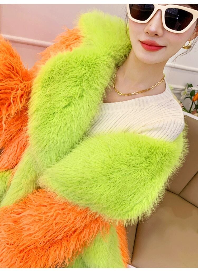 アウター ピンク ネイビー オレンジ 黄色 ポケット うさぎ 緑 ピンク パープル フード ゴージャス ロングファー 黒 白 コート アウター ジャケット ブルゾン ジャンパー カーディガン ゴージャス 白 黒 ヒップホップ 渋谷 ストリート ネオン