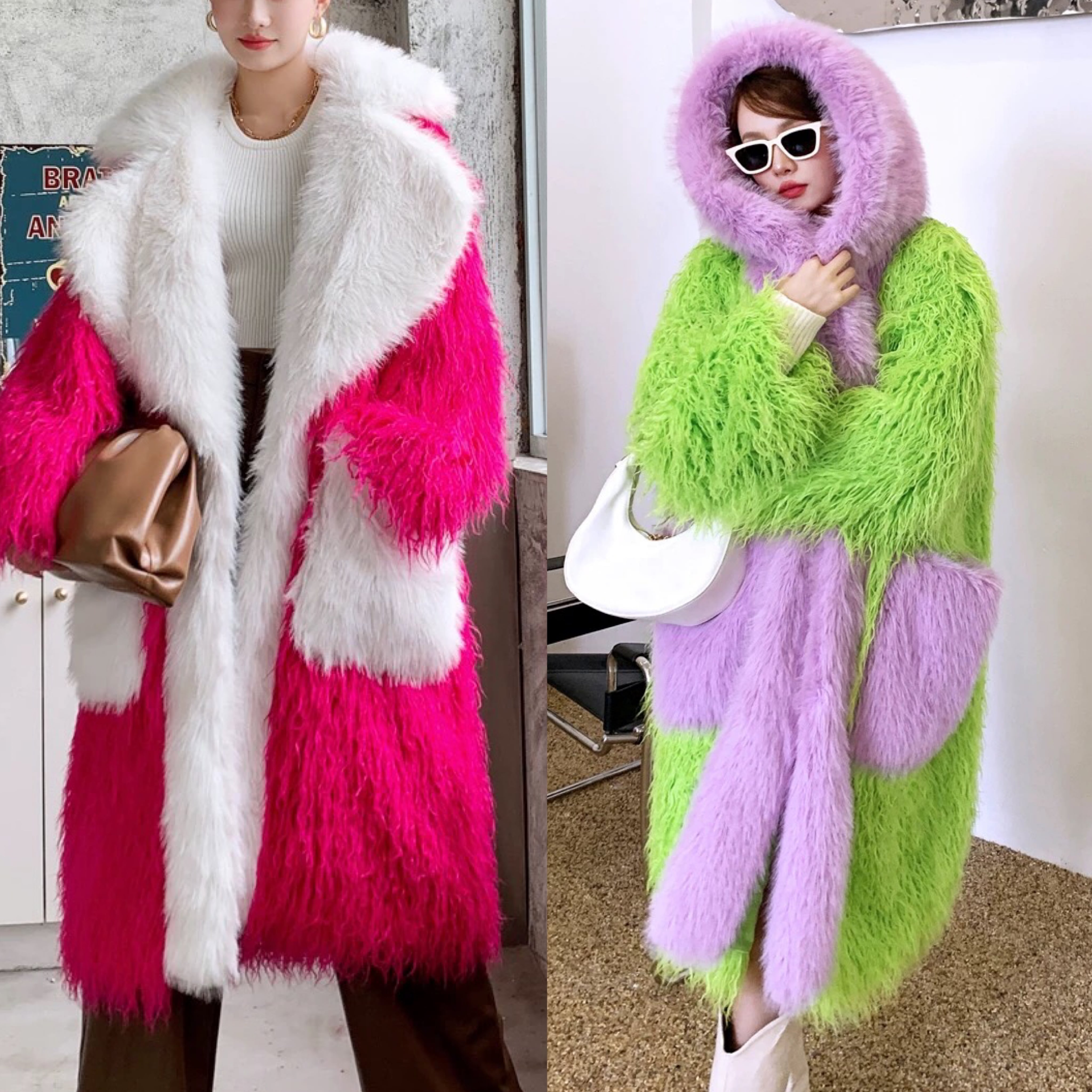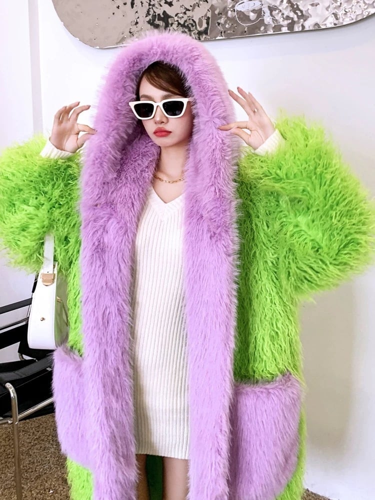 ポケット ピンク 緑 フード 白 うさぎ 緑 ピンク パープル フード ゴージャス ロングファー 黒 白 コート アウター ジャケット ブルゾン ジャンパー カーディガン ゴージャス 白 黒 ヒップホップ 渋谷 ストリート