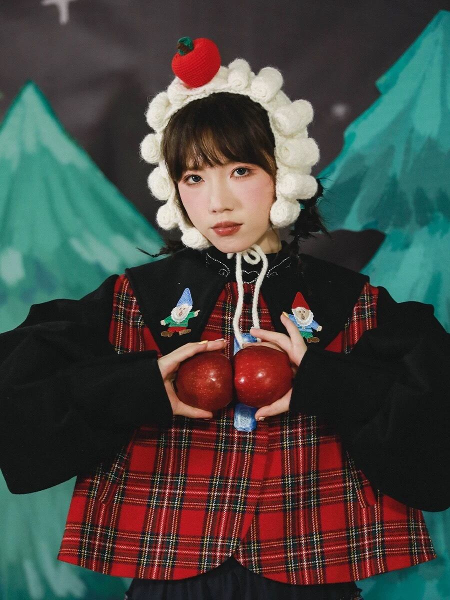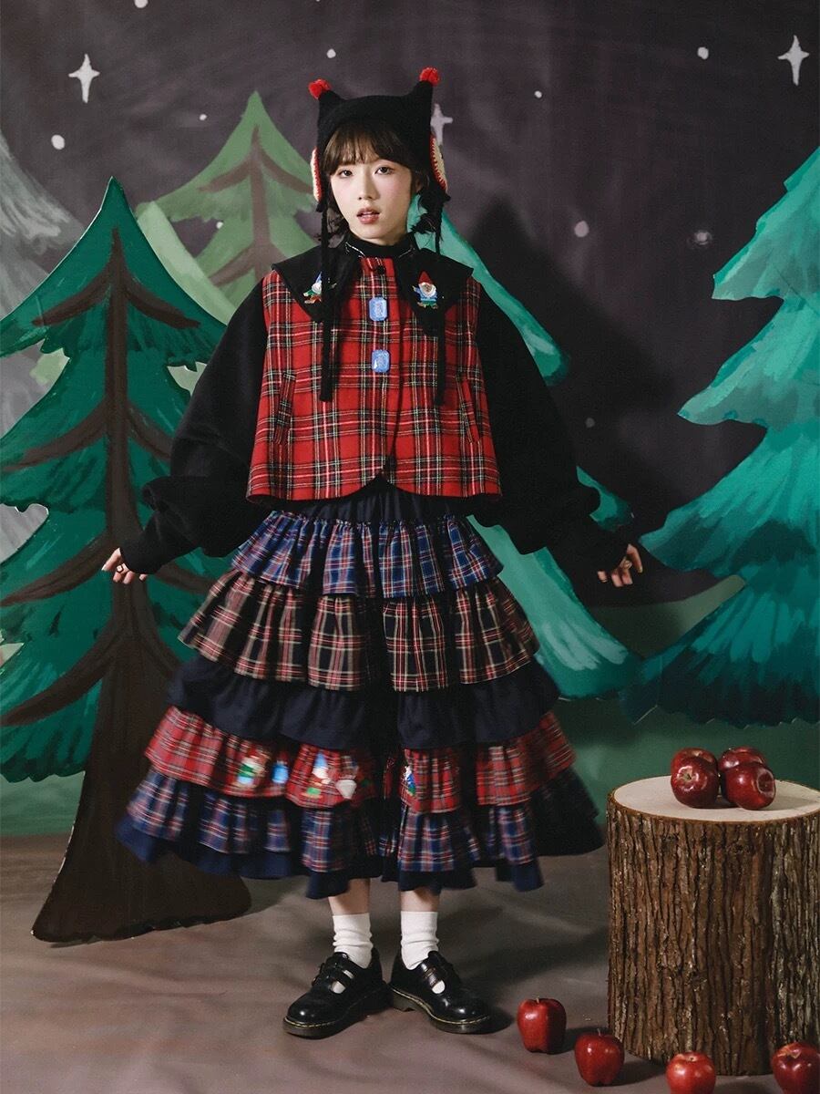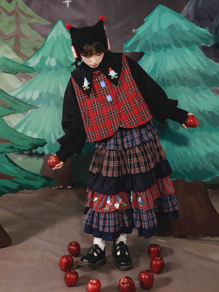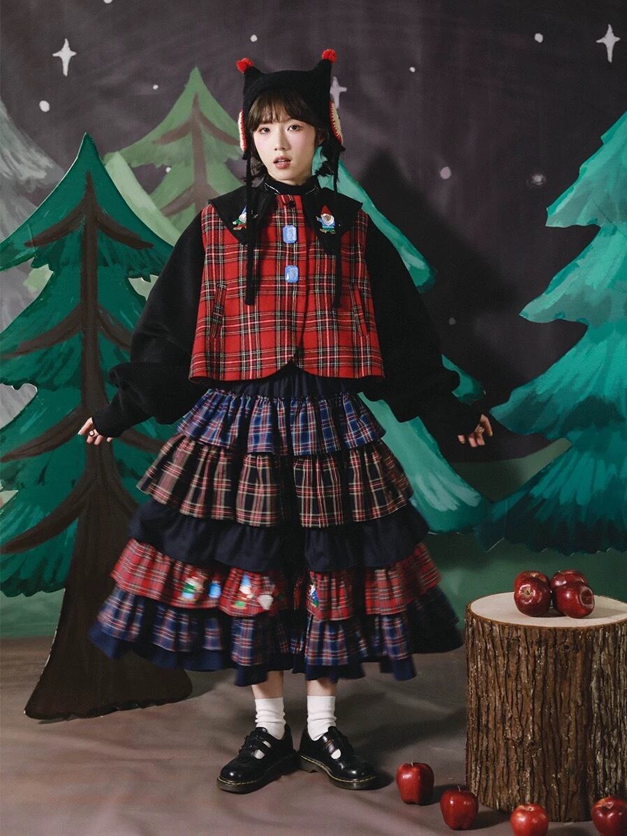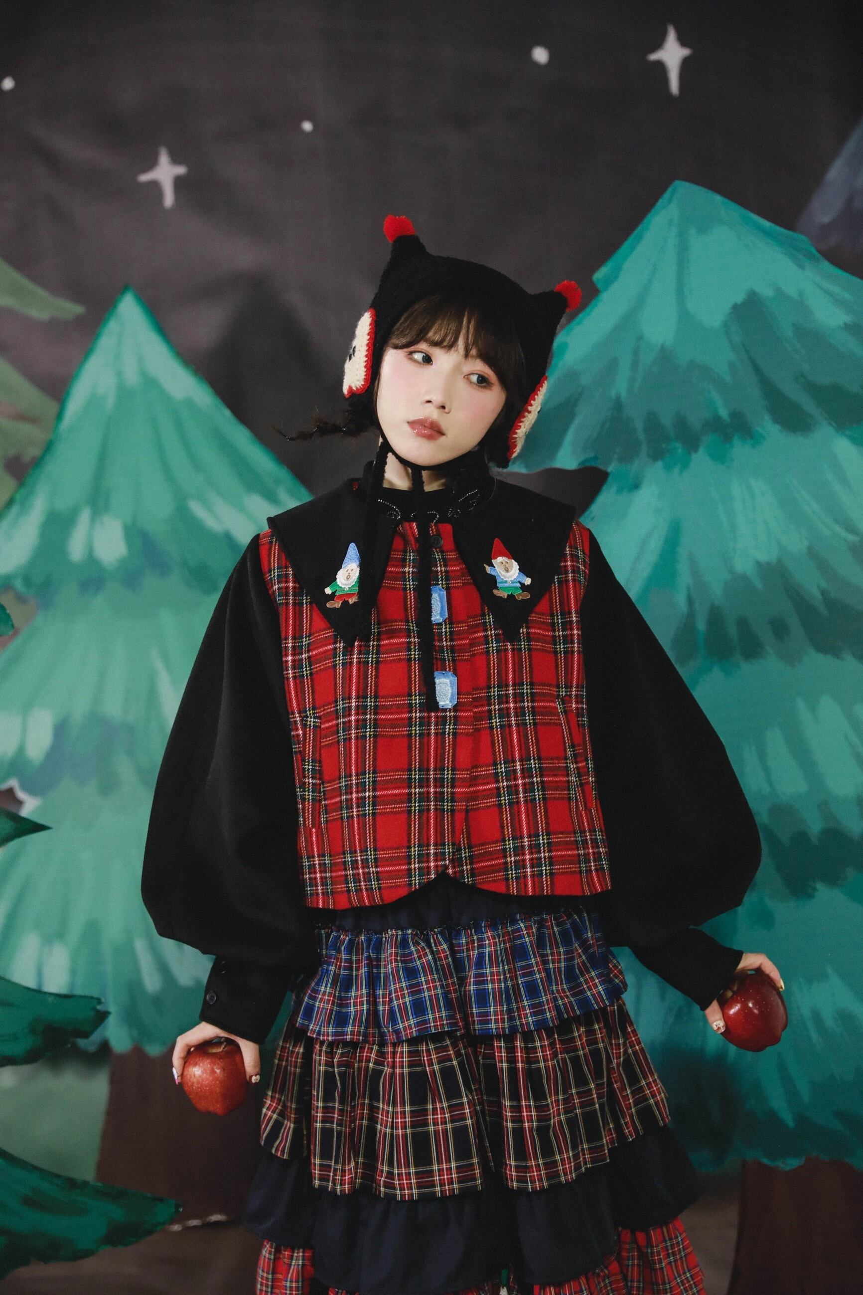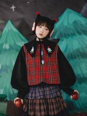 ブラウス トップス チェック 赤 襟 可愛い 原宿 コスプレ 黒