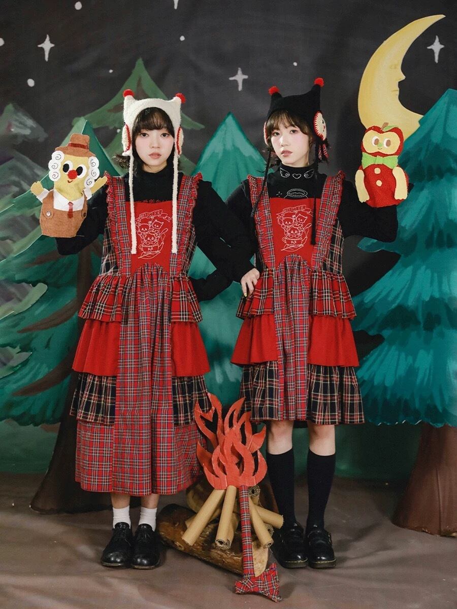 赤 ガーリー ゆったり ワンピース 可愛い 原宿 スカート ブラウス