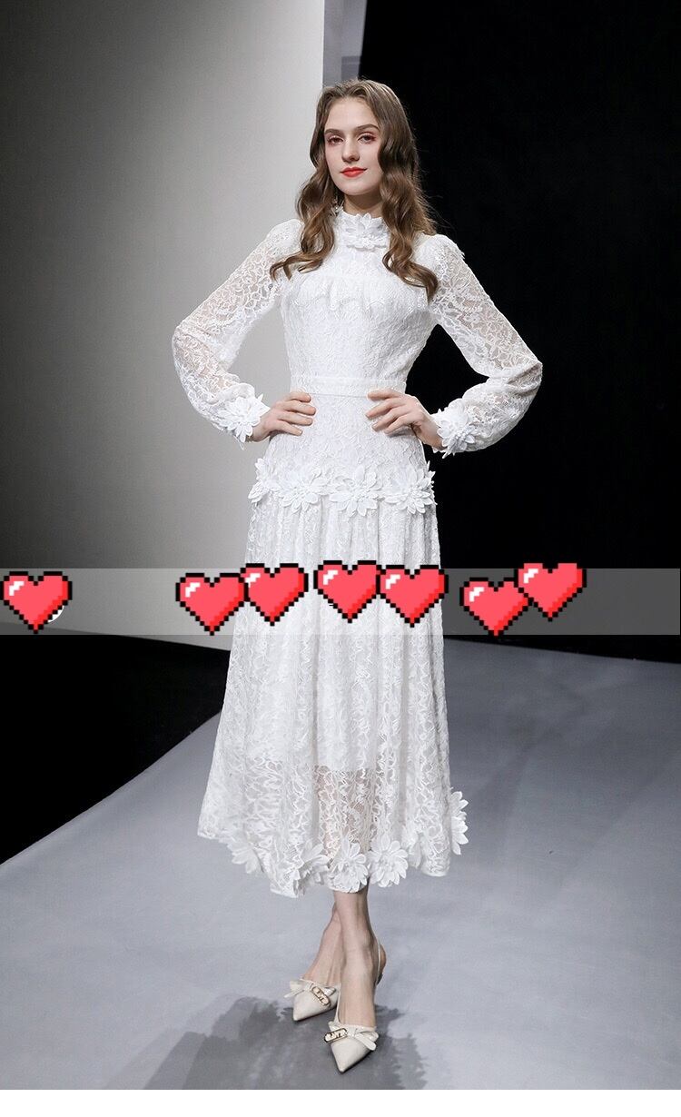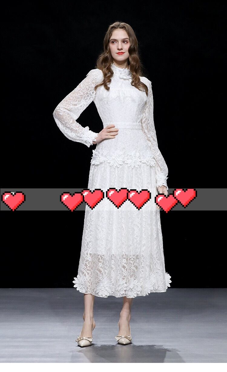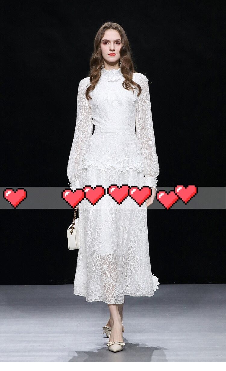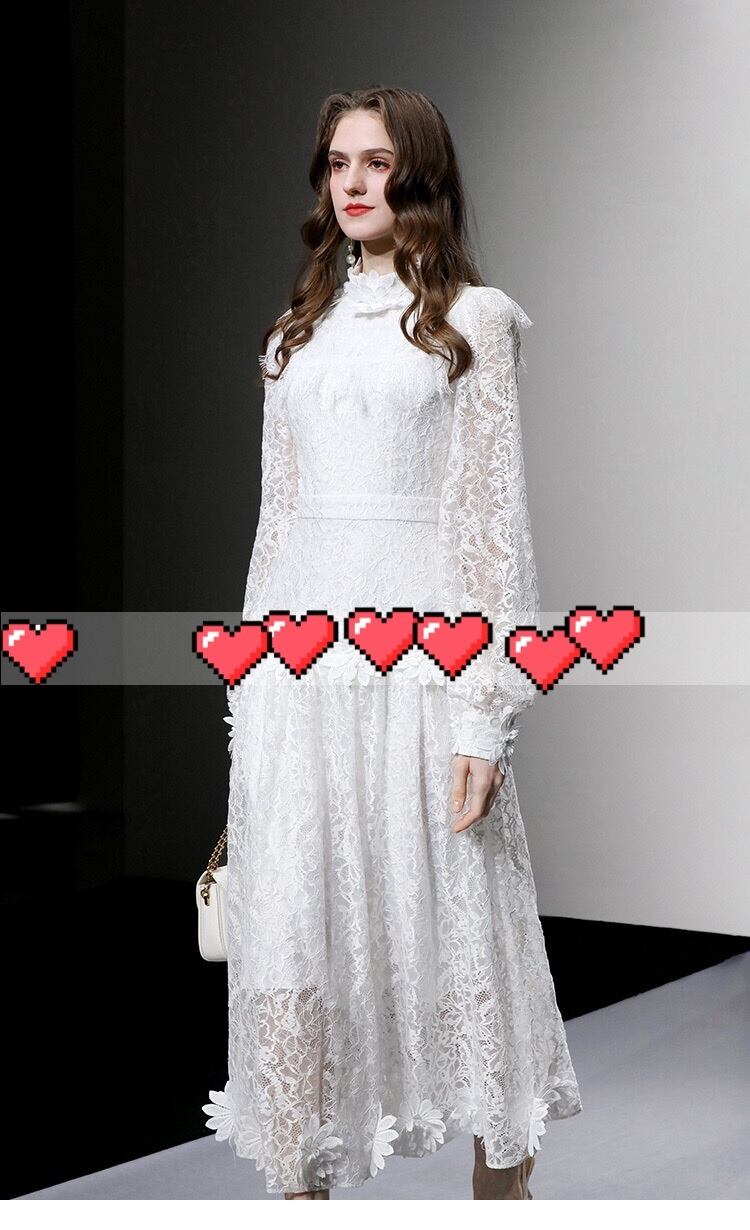 ホワイト 白 XL レース ブラウス スカート エレガント ドレス ワンピース ホワイト 花柄 フラワー