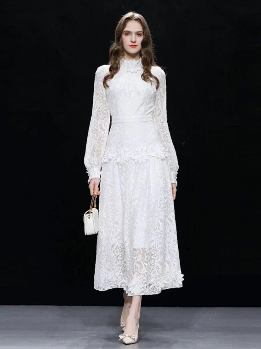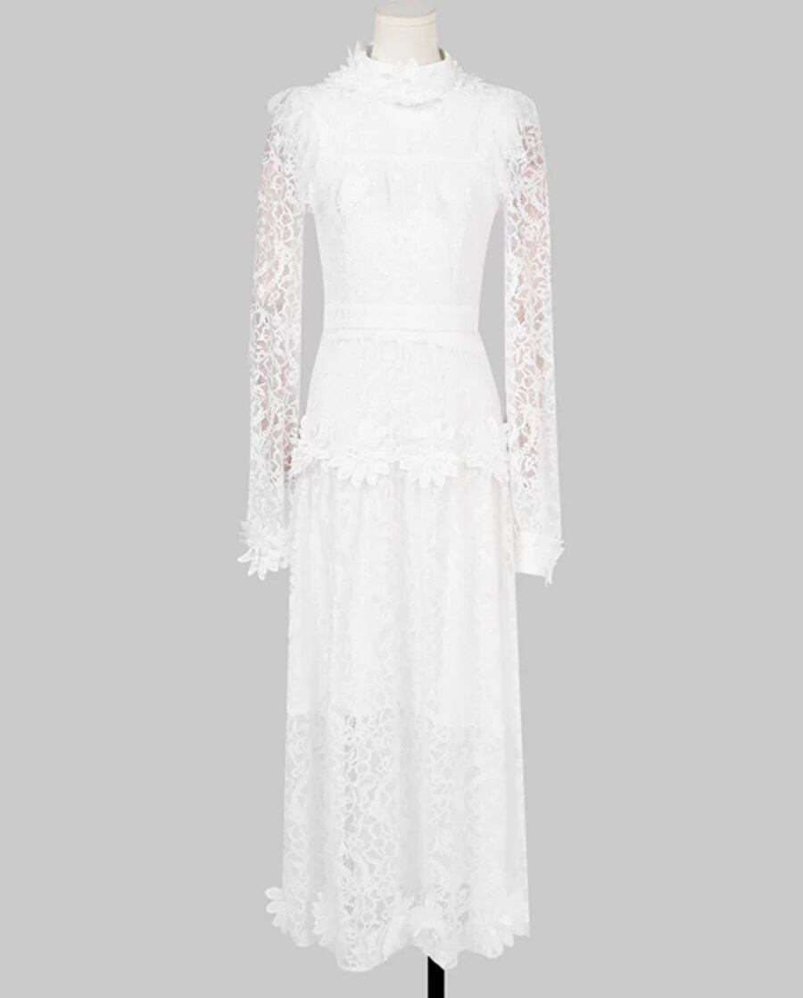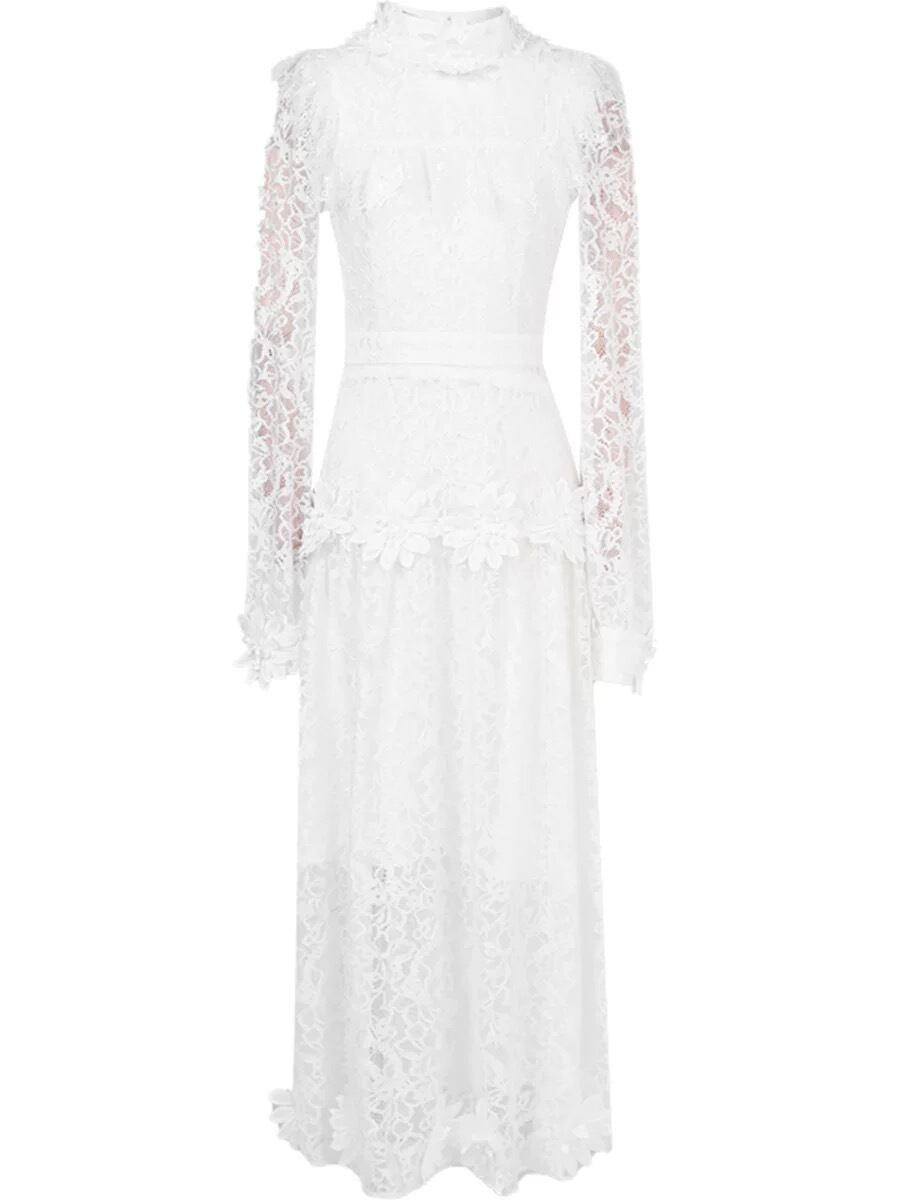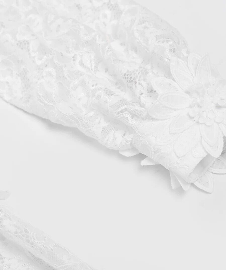 ホワイト 白 XL レース ブラウス スカート エレガント ドレス ワンピース ホワイト 花柄 フラワー