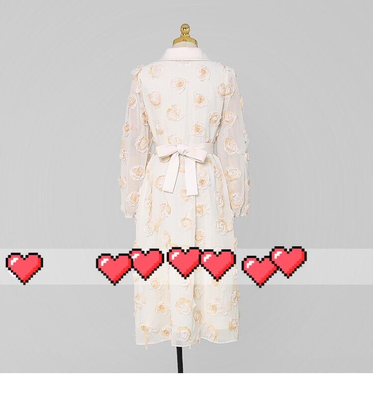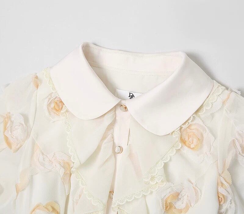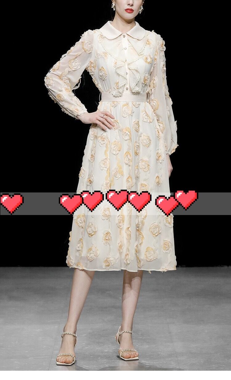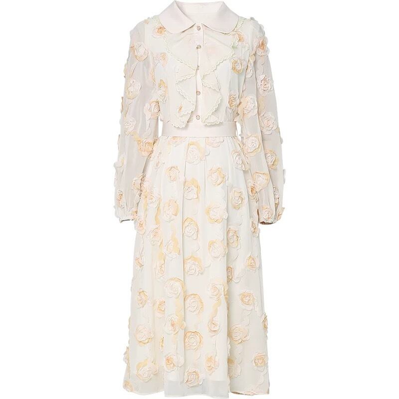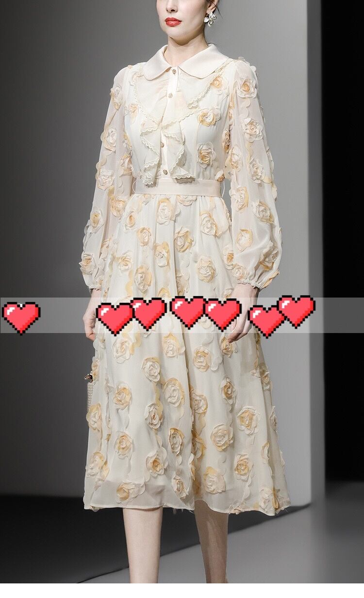 黄色 XL フラワー 薔薇 花柄 丸襟 ブラウス ワンピース スカート エレガント 黄色 ベージュ