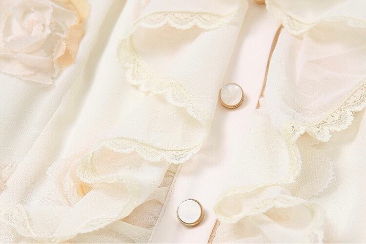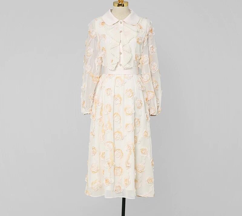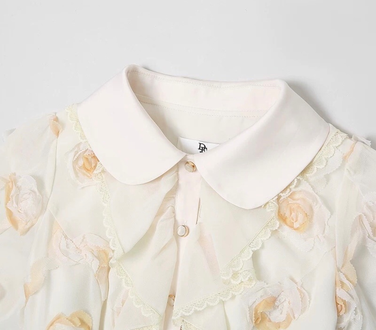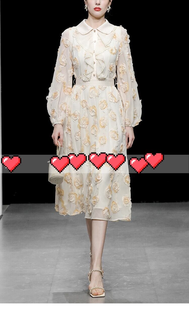 黄色 XL フラワー 薔薇 花柄 丸襟 ブラウス ワンピース スカート エレガント 黄色 ベージュ