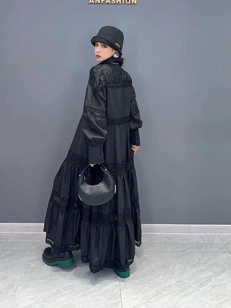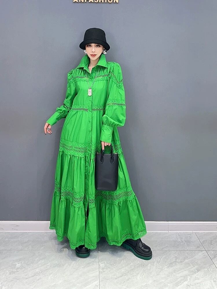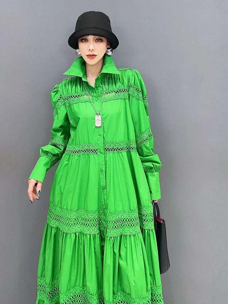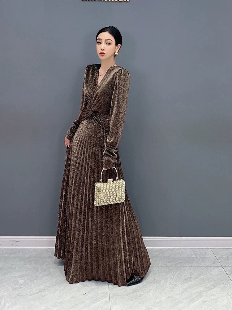 ワンピース ロング ゆったり 緑 黒 ベージュ ゴールド プリーツ