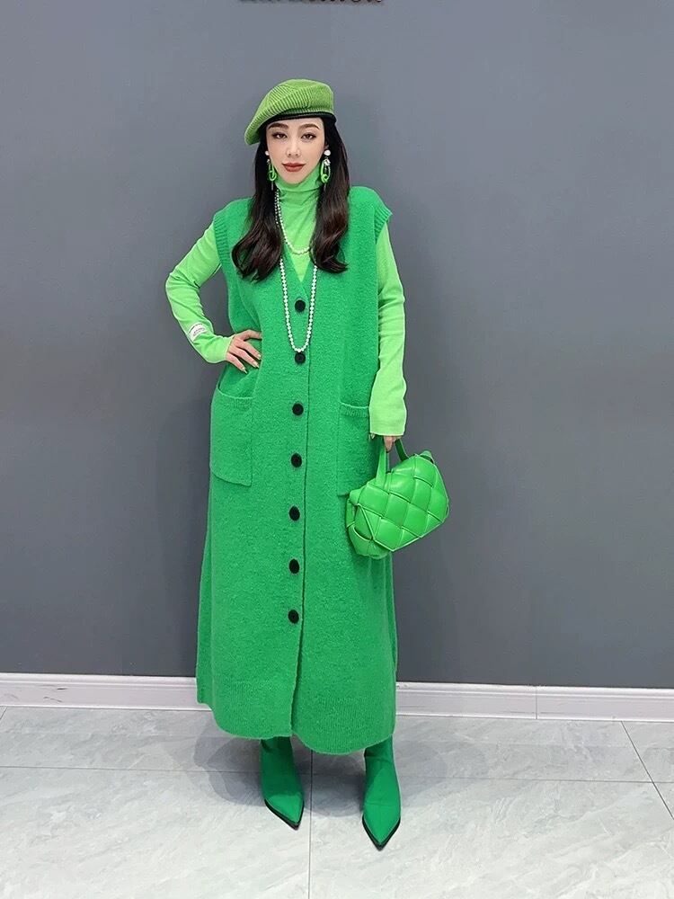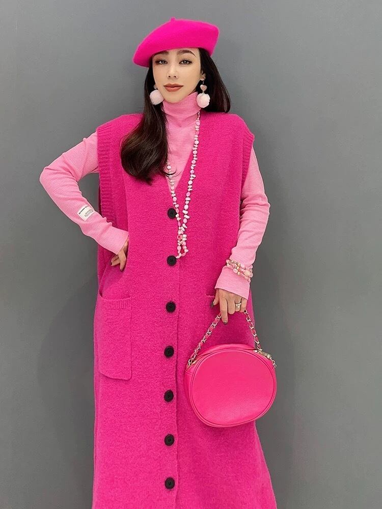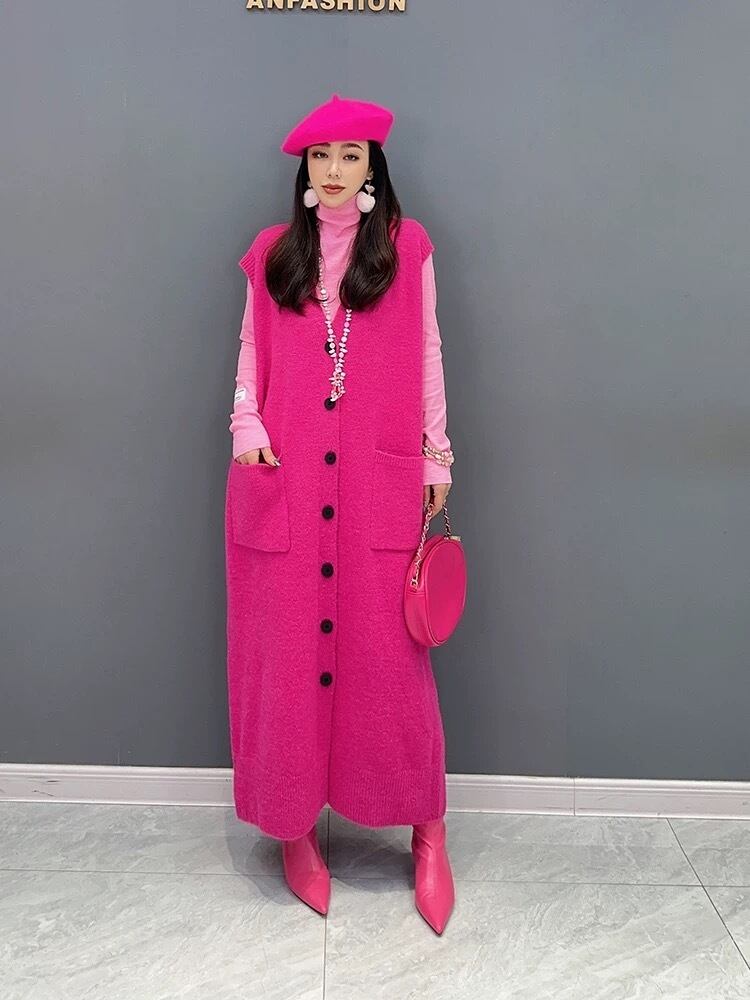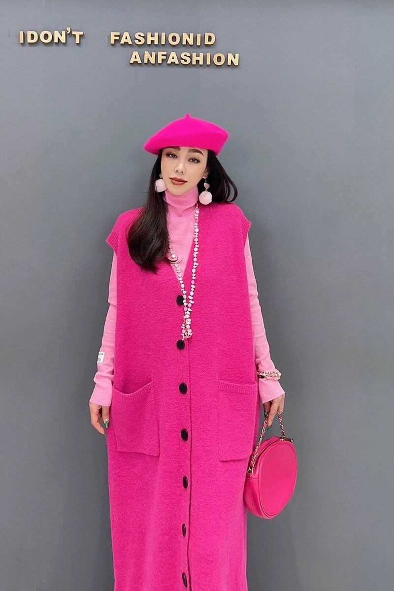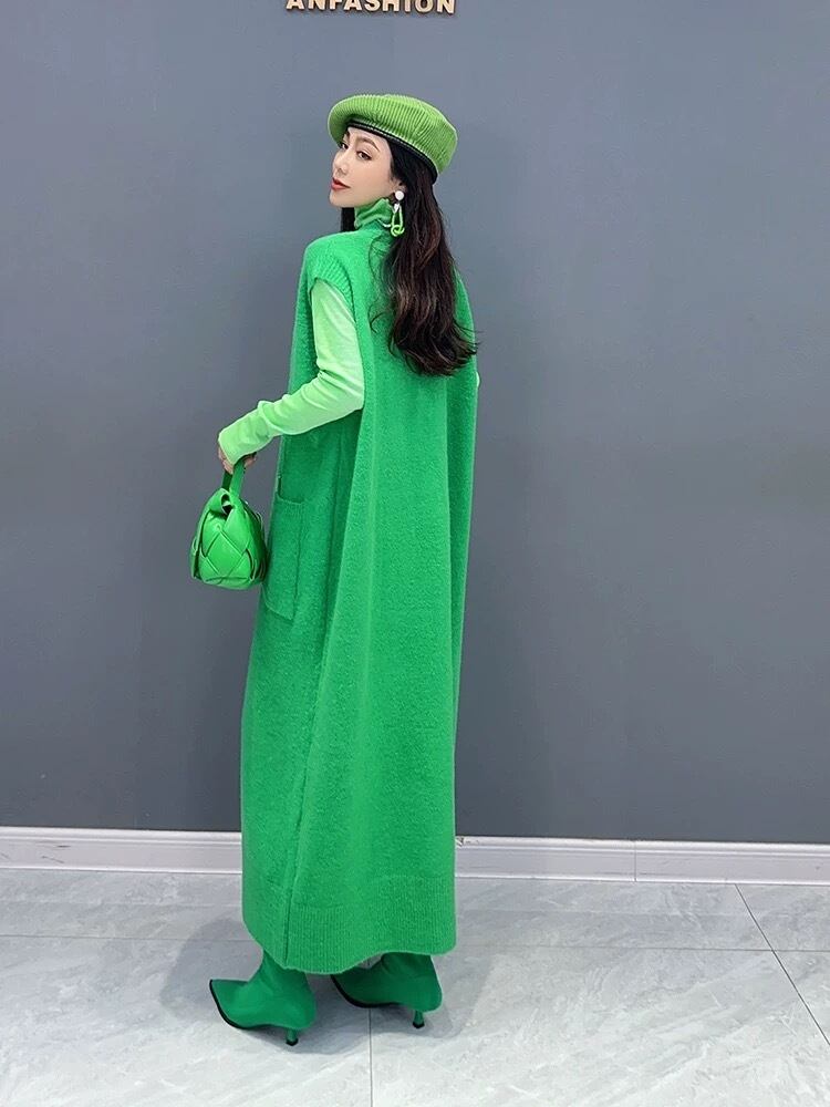ベスト カーディガン ピンク 緑 ゆったり ワンピース セーター