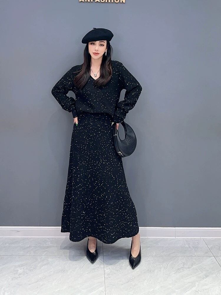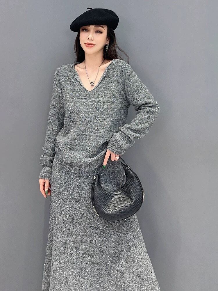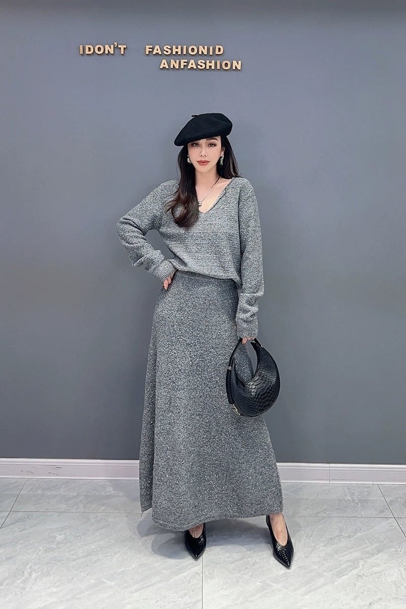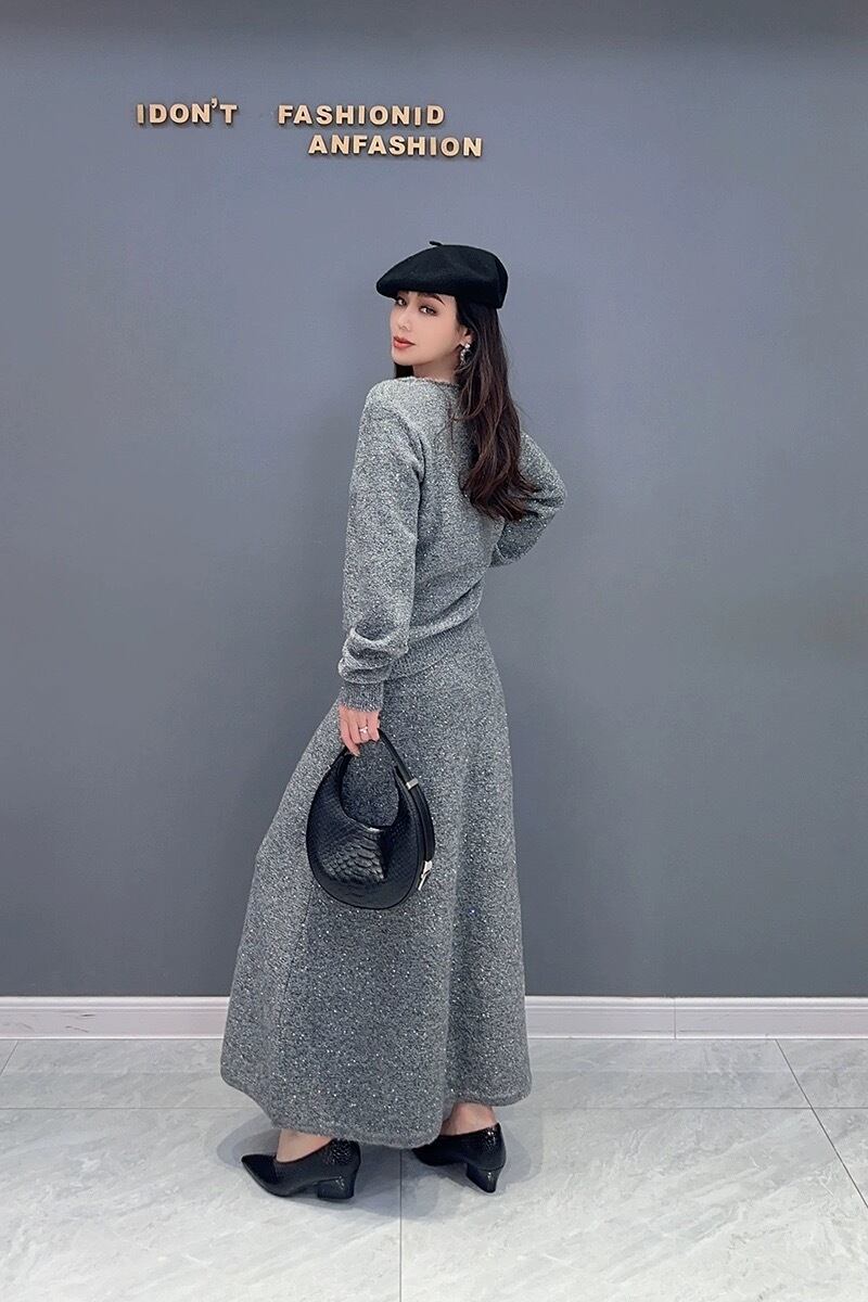 【セットアップ】グレー 黒 ニット セーター ワンピース スカート