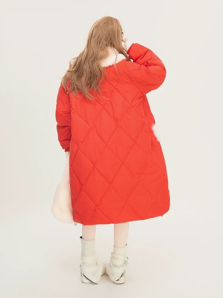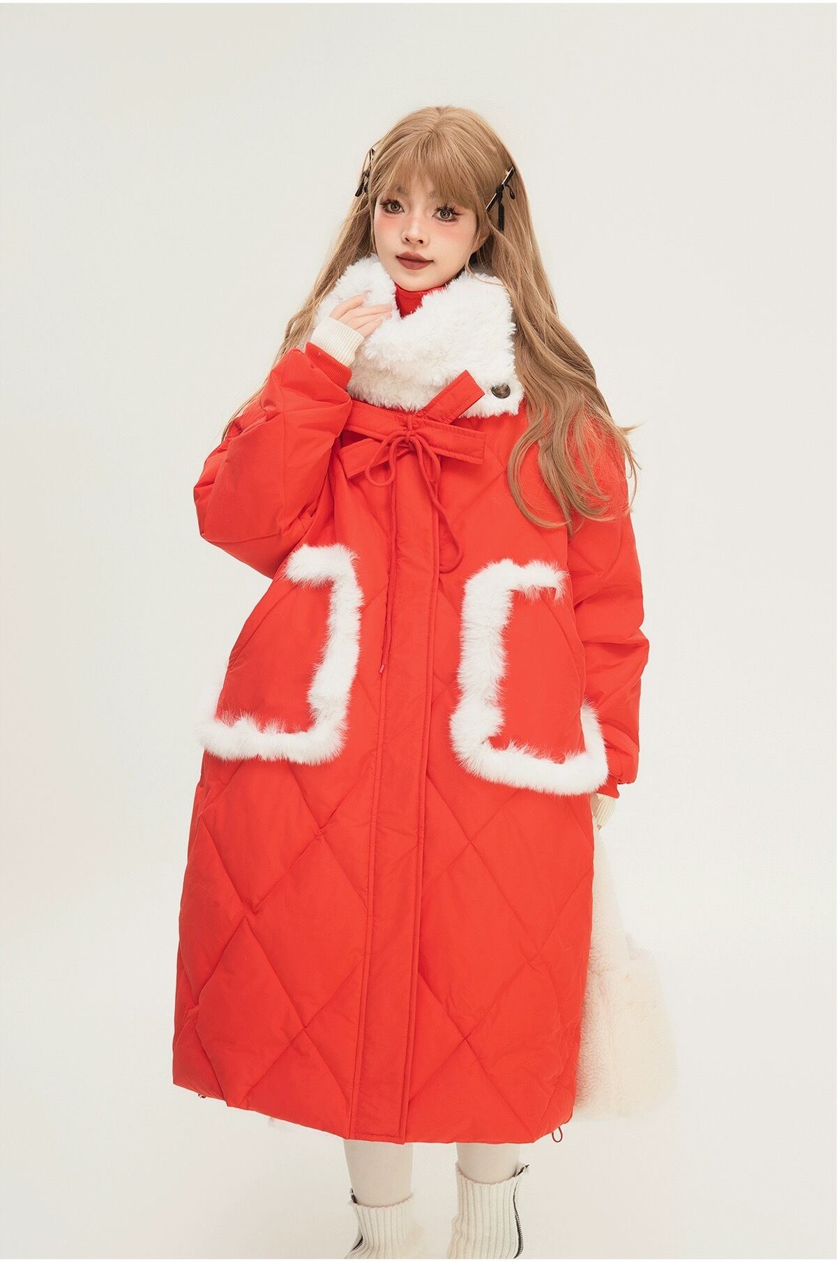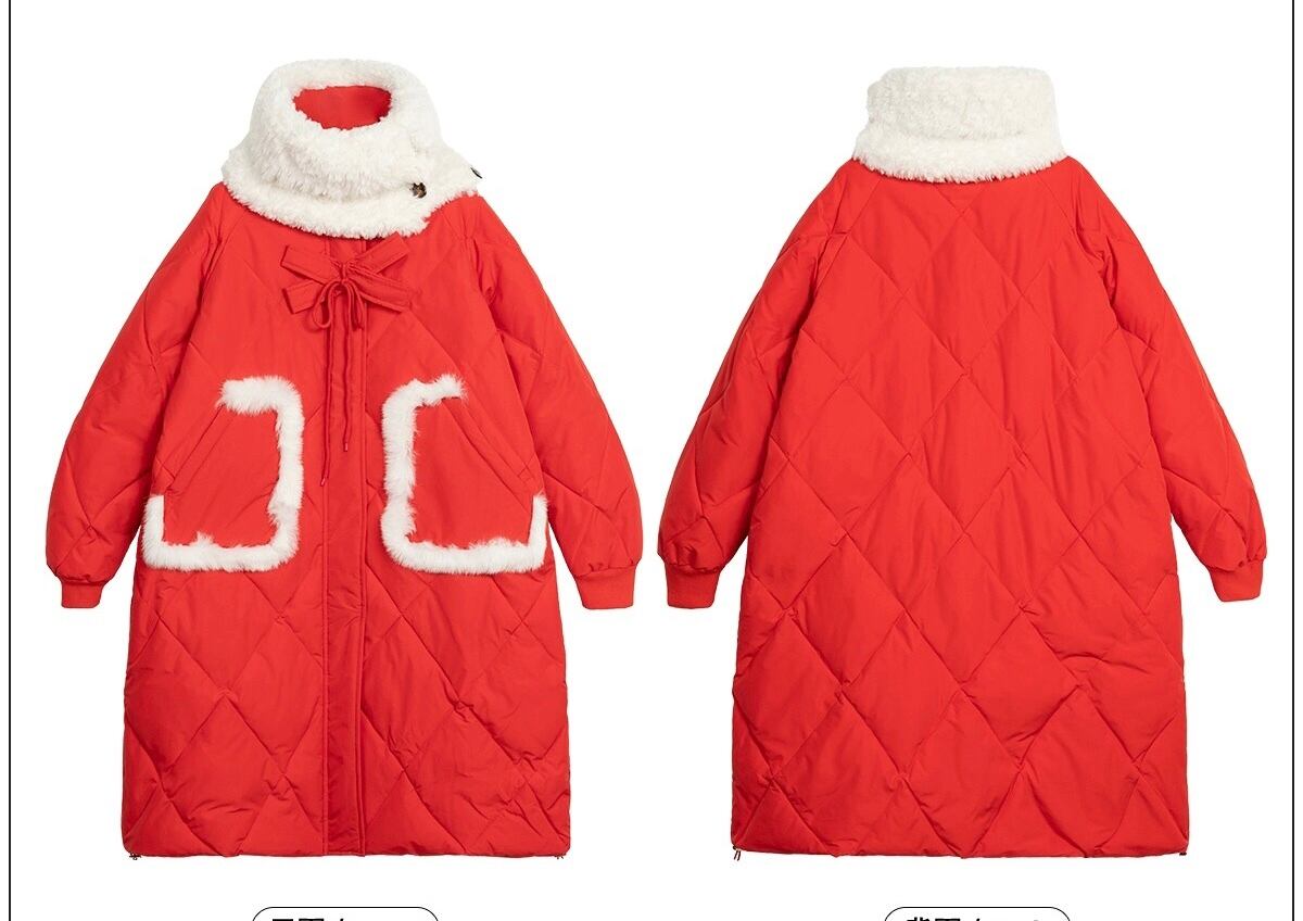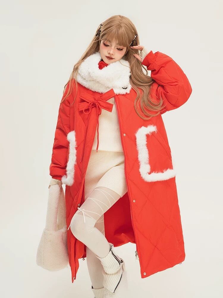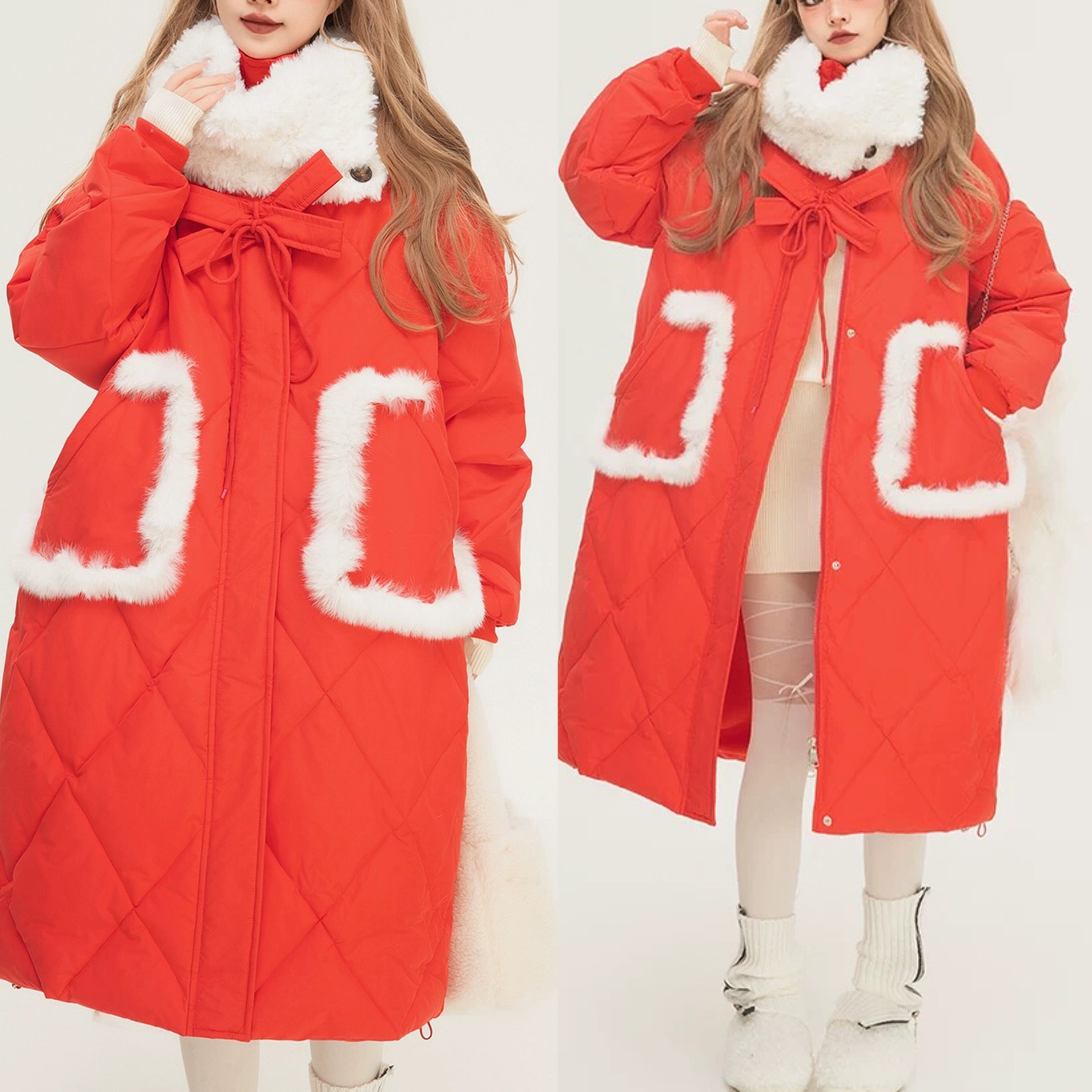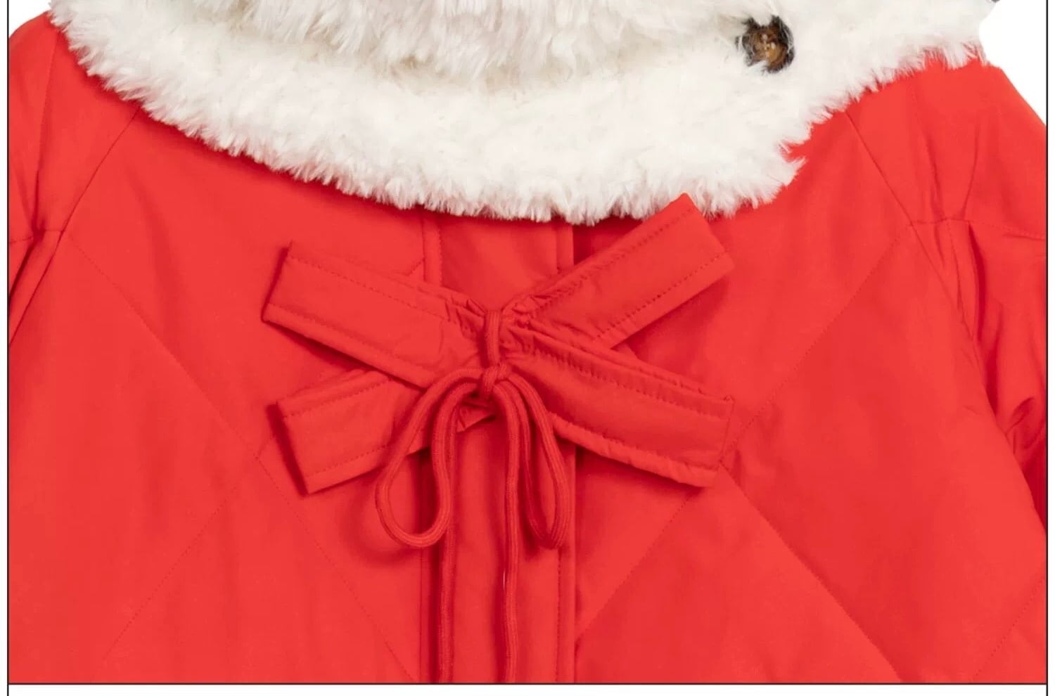 アウター 赤 リボン ガーリー コート ダウン 可愛い ジャケット ポケット