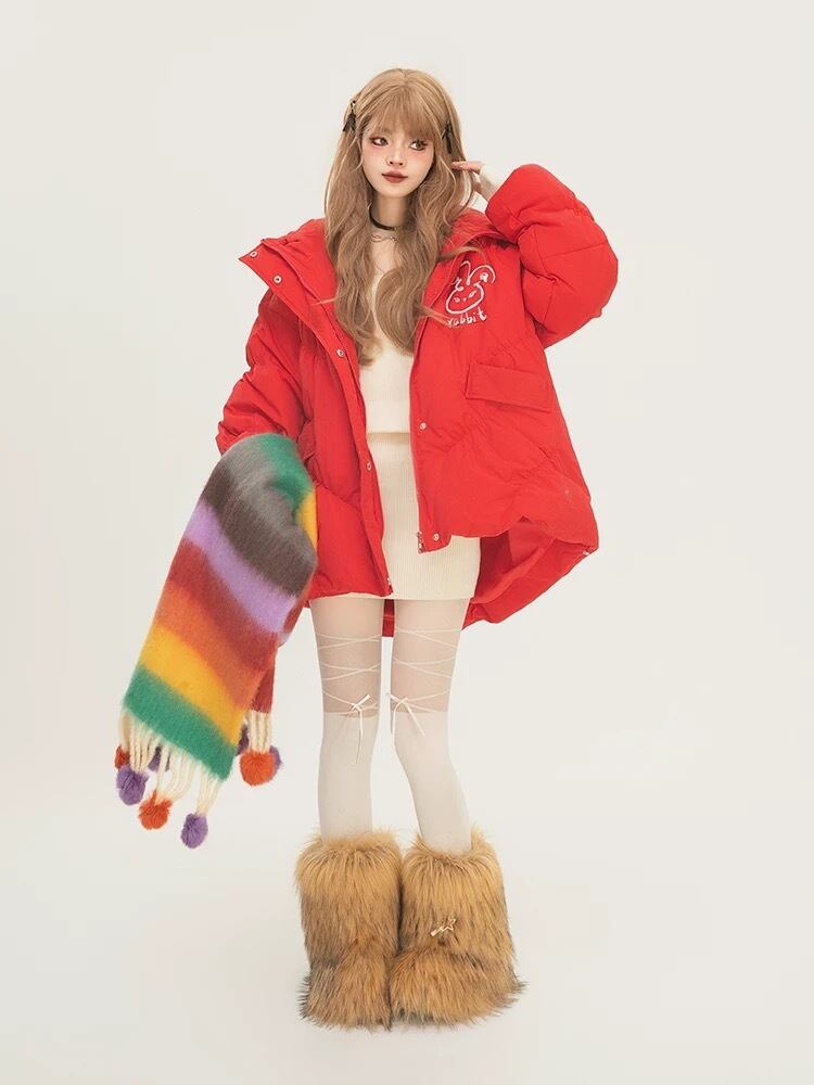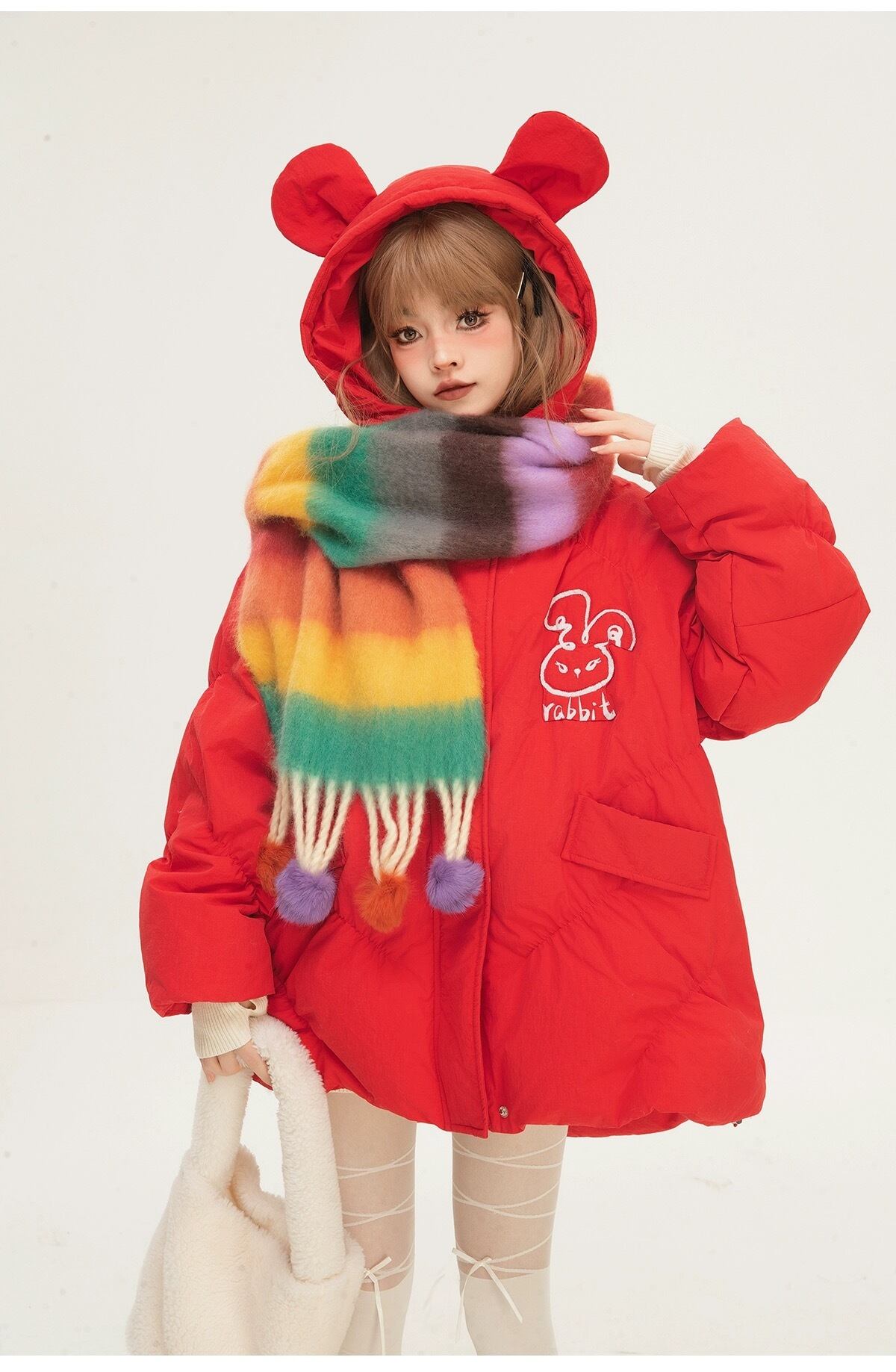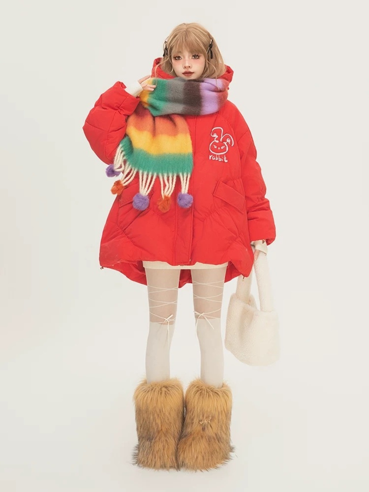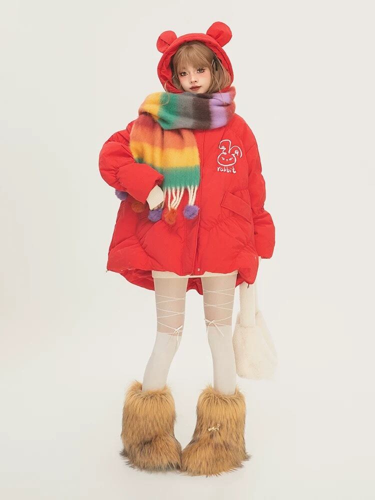 ダウン 赤 くま パーカー アウター ジャケット ガーリー