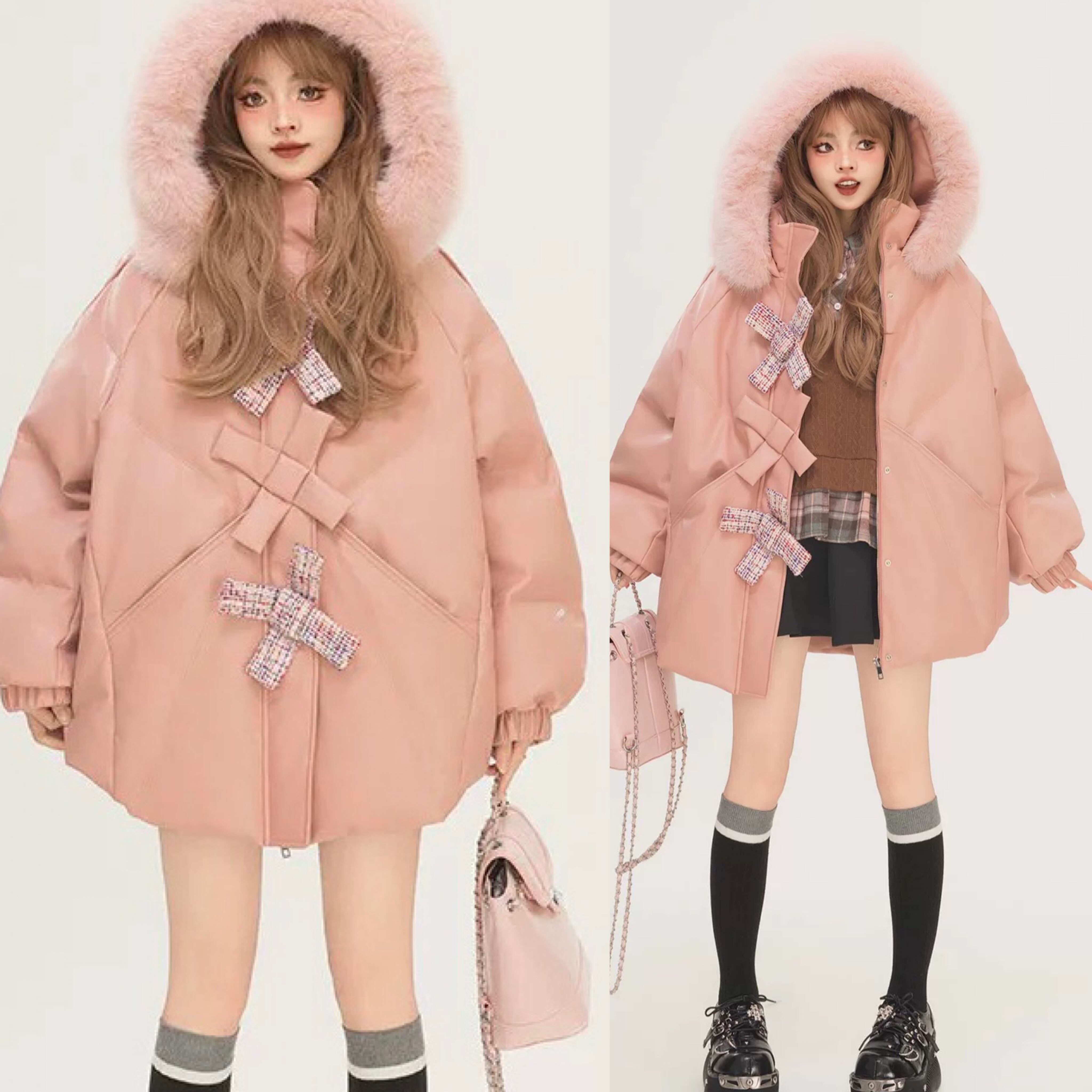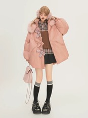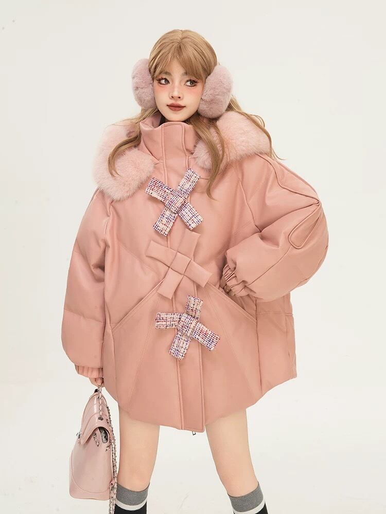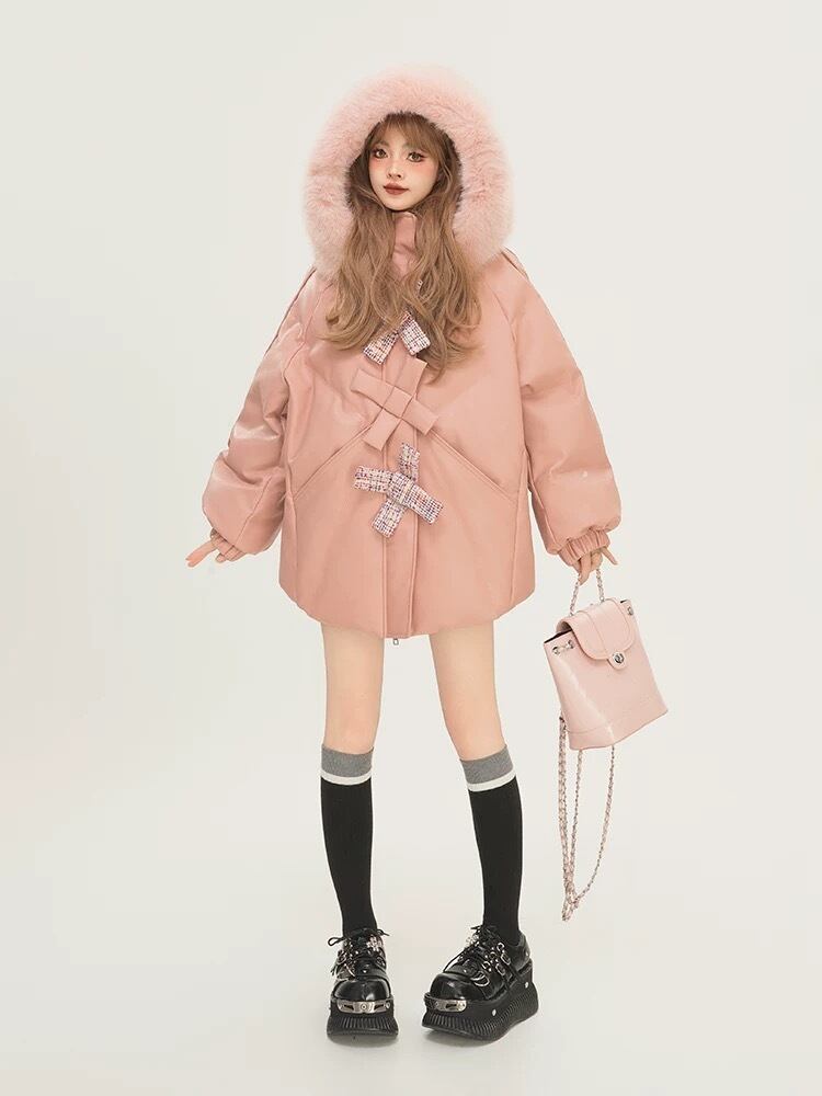 ピンク アウター リボン ジャケット ダウン 可愛い