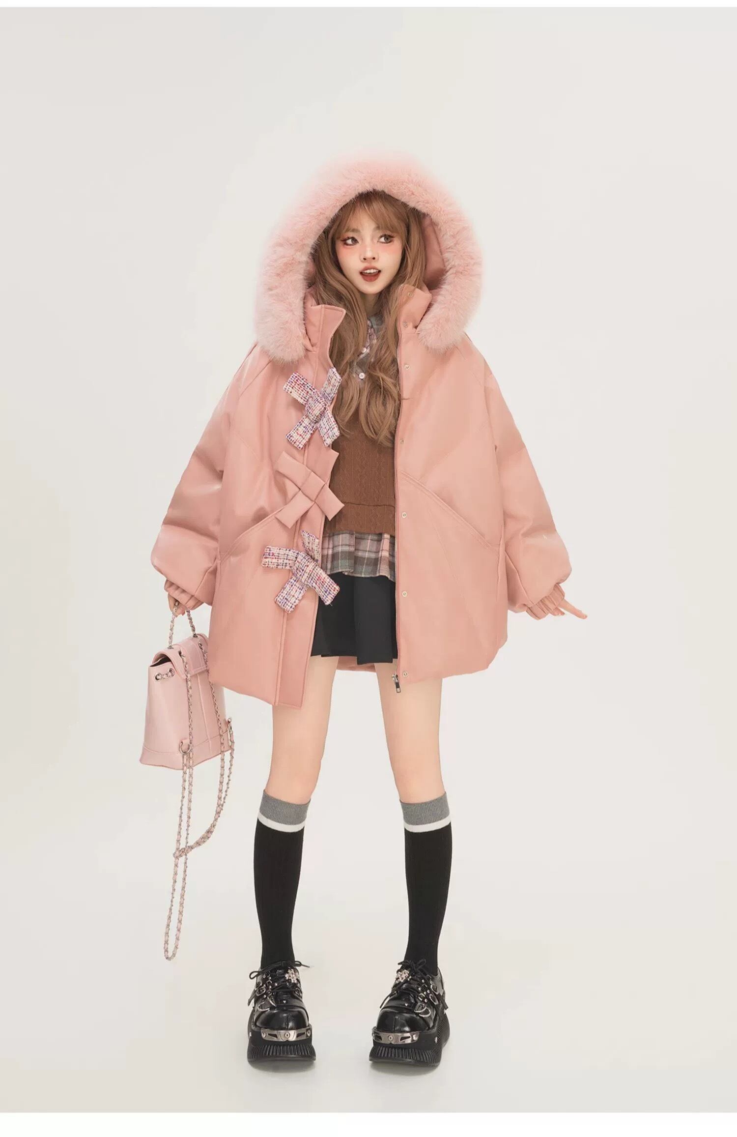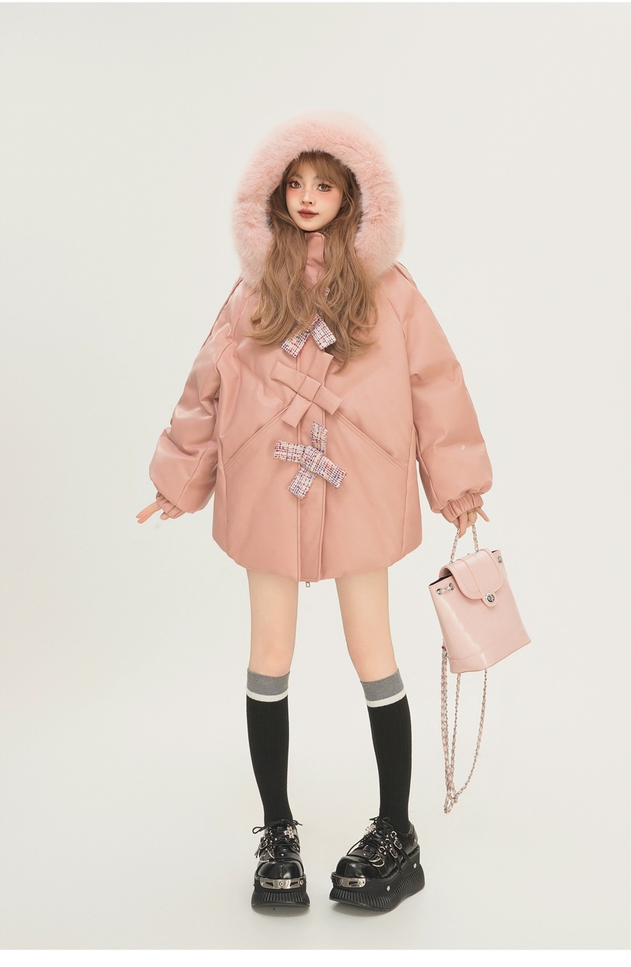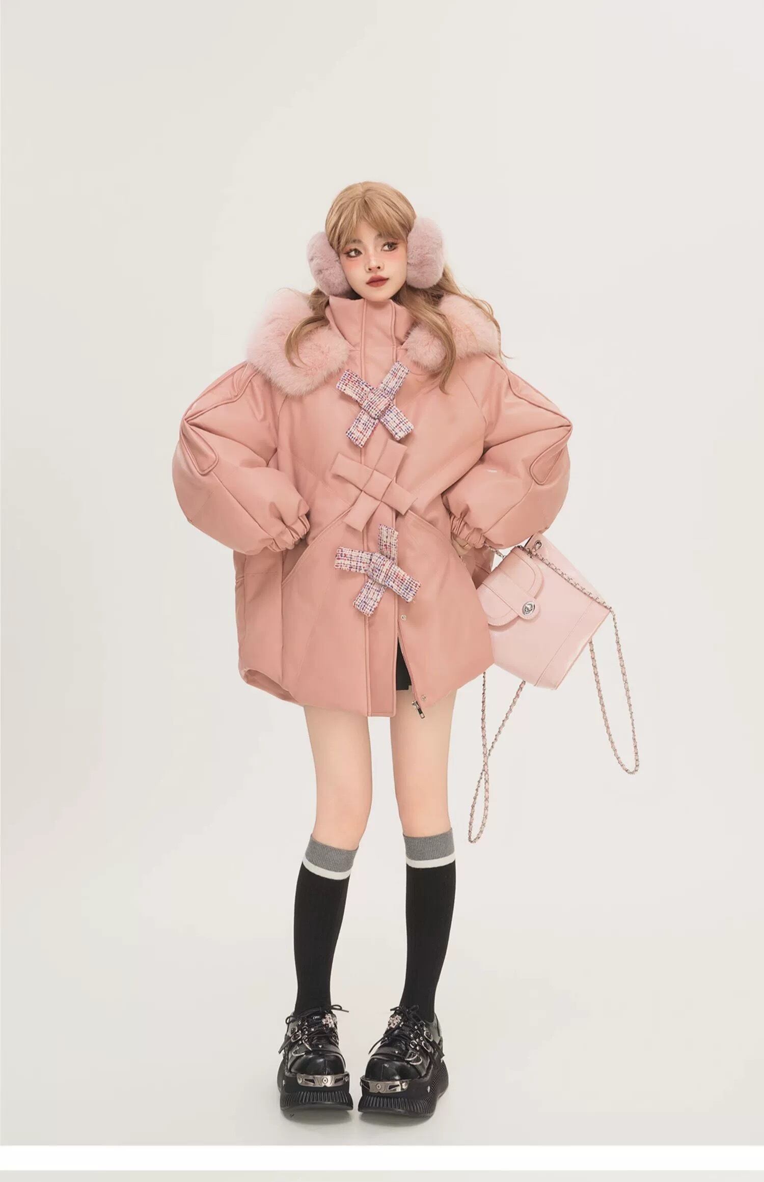 ピンク アウター リボン ジャケット ダウン 可愛い