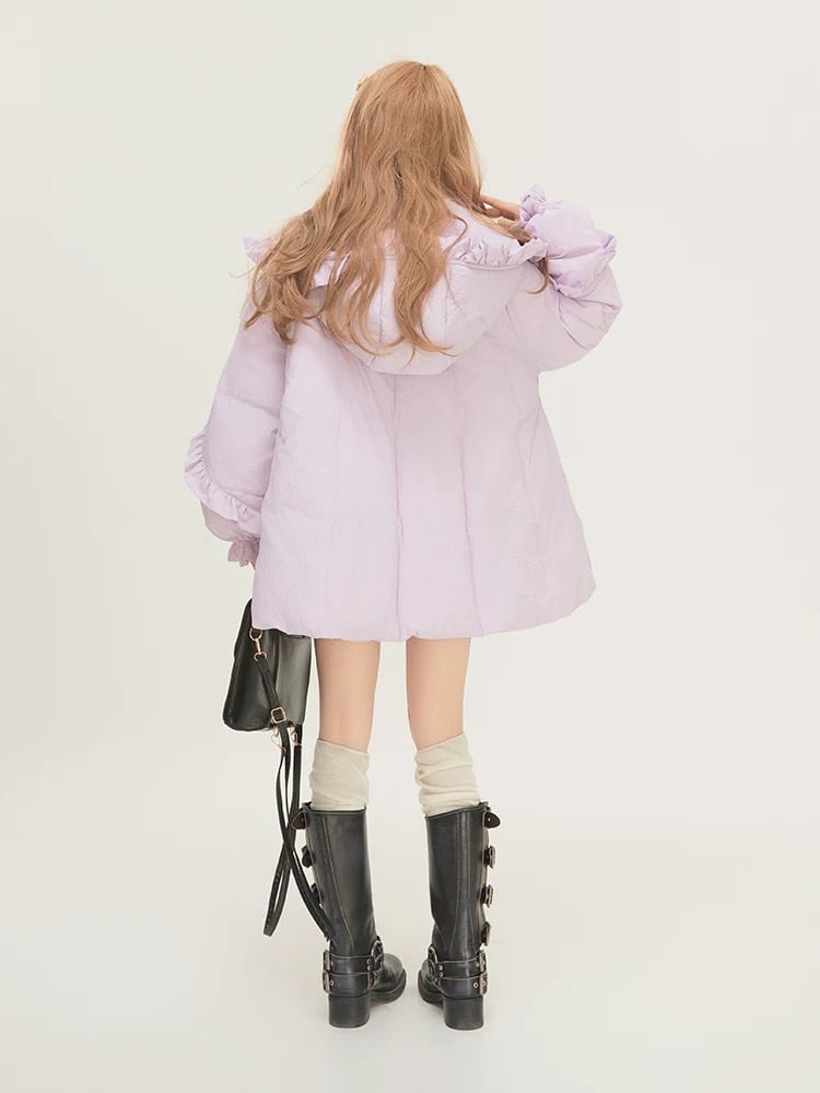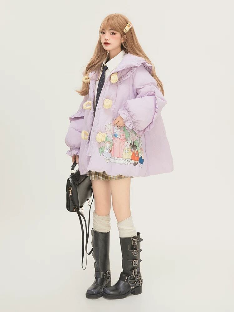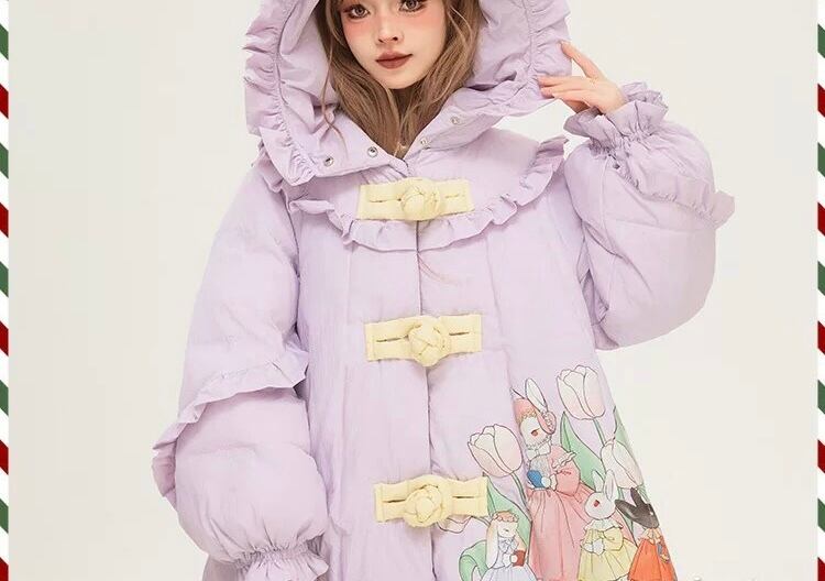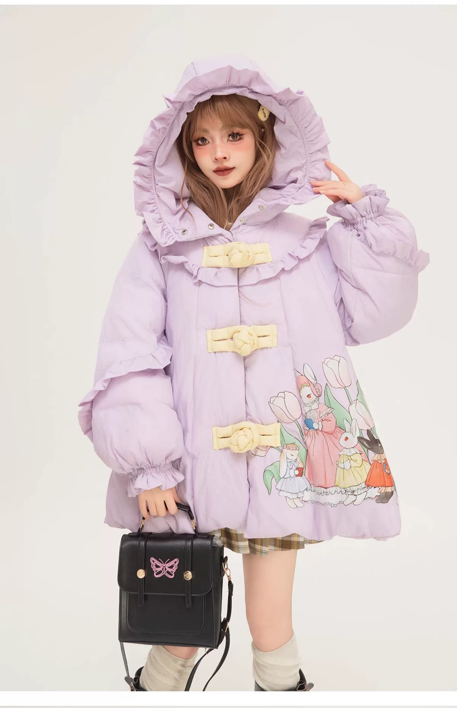 紫 パープル アウター フード うさぎ リボン 可愛い