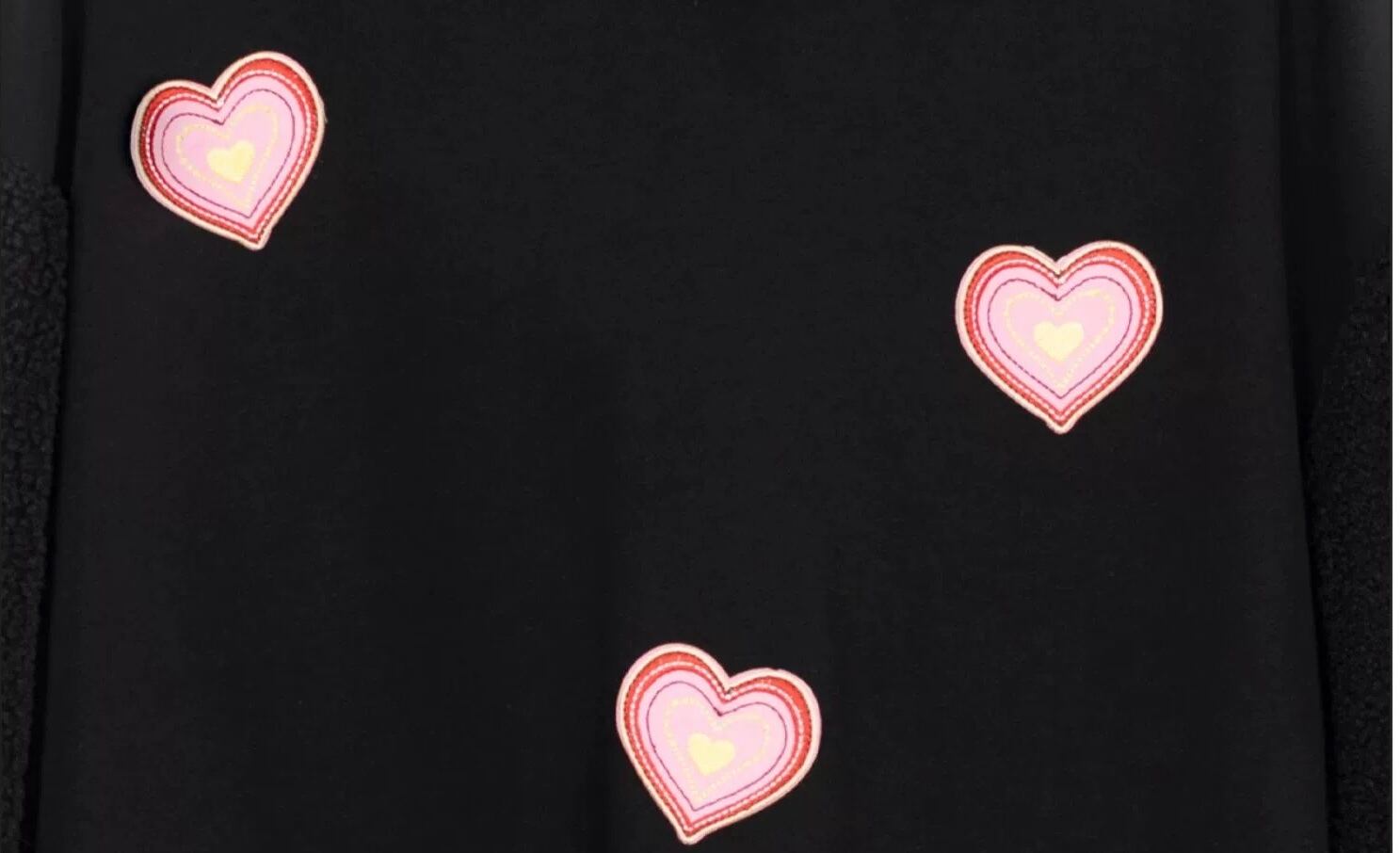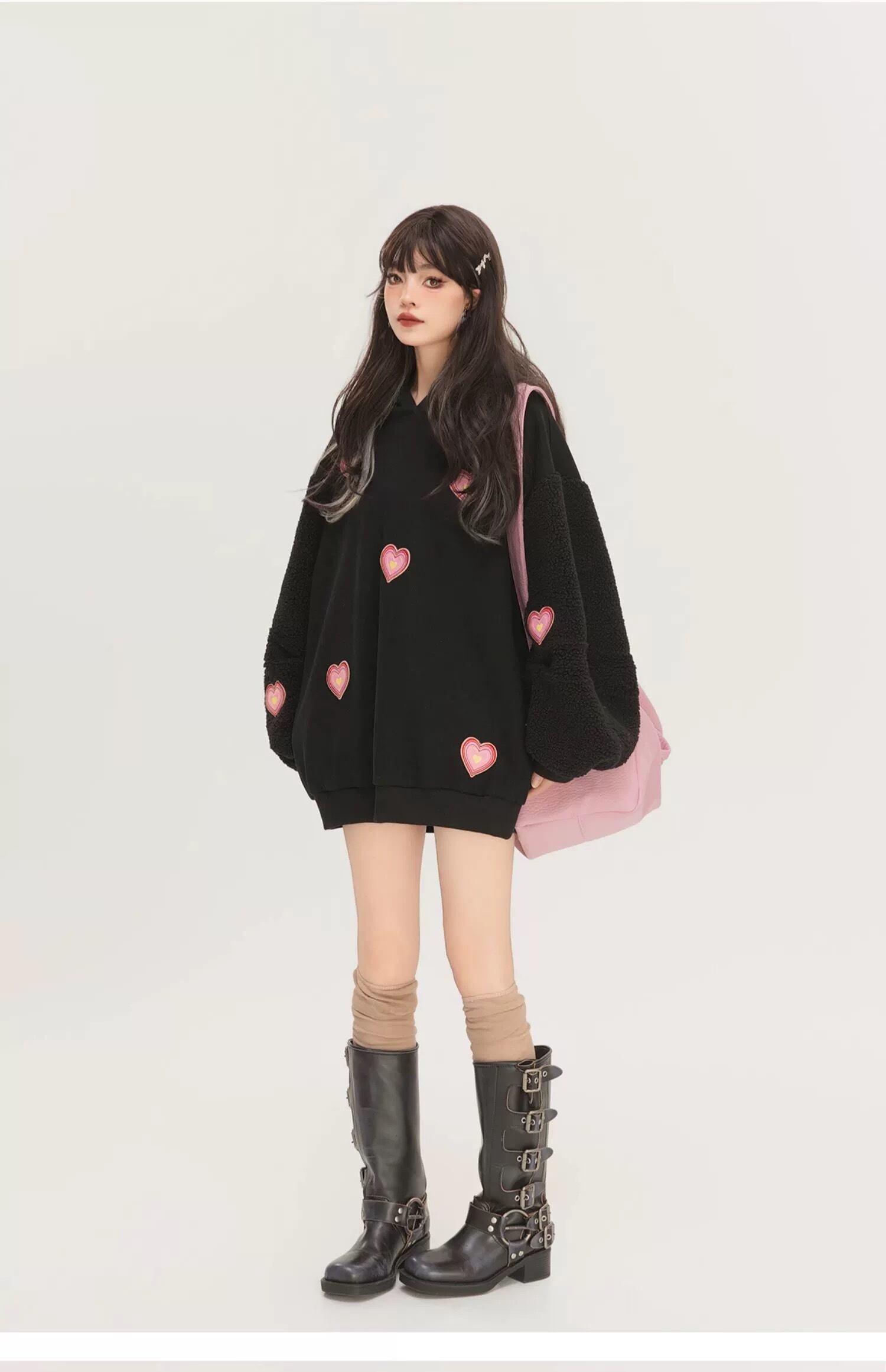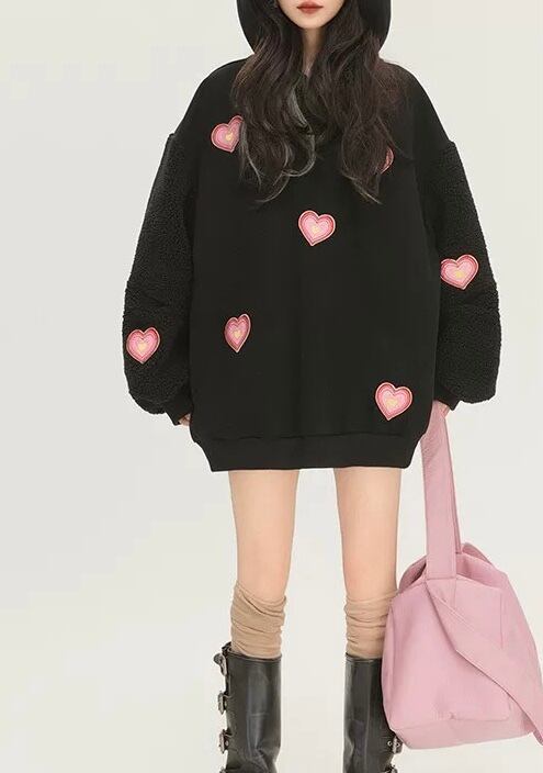 パーカー 黒 ピンク ハート 可愛い スウェット ワンピース カジュアル