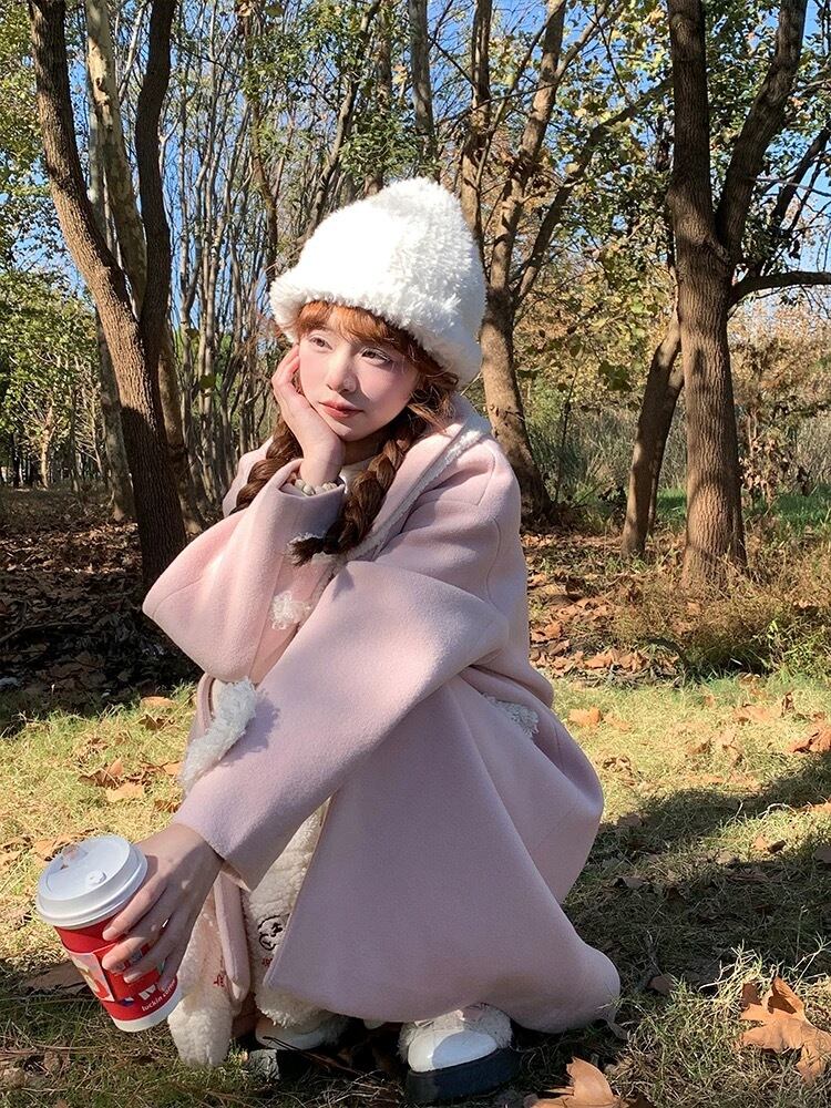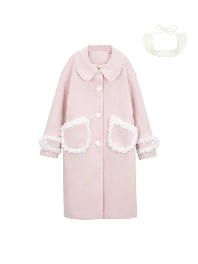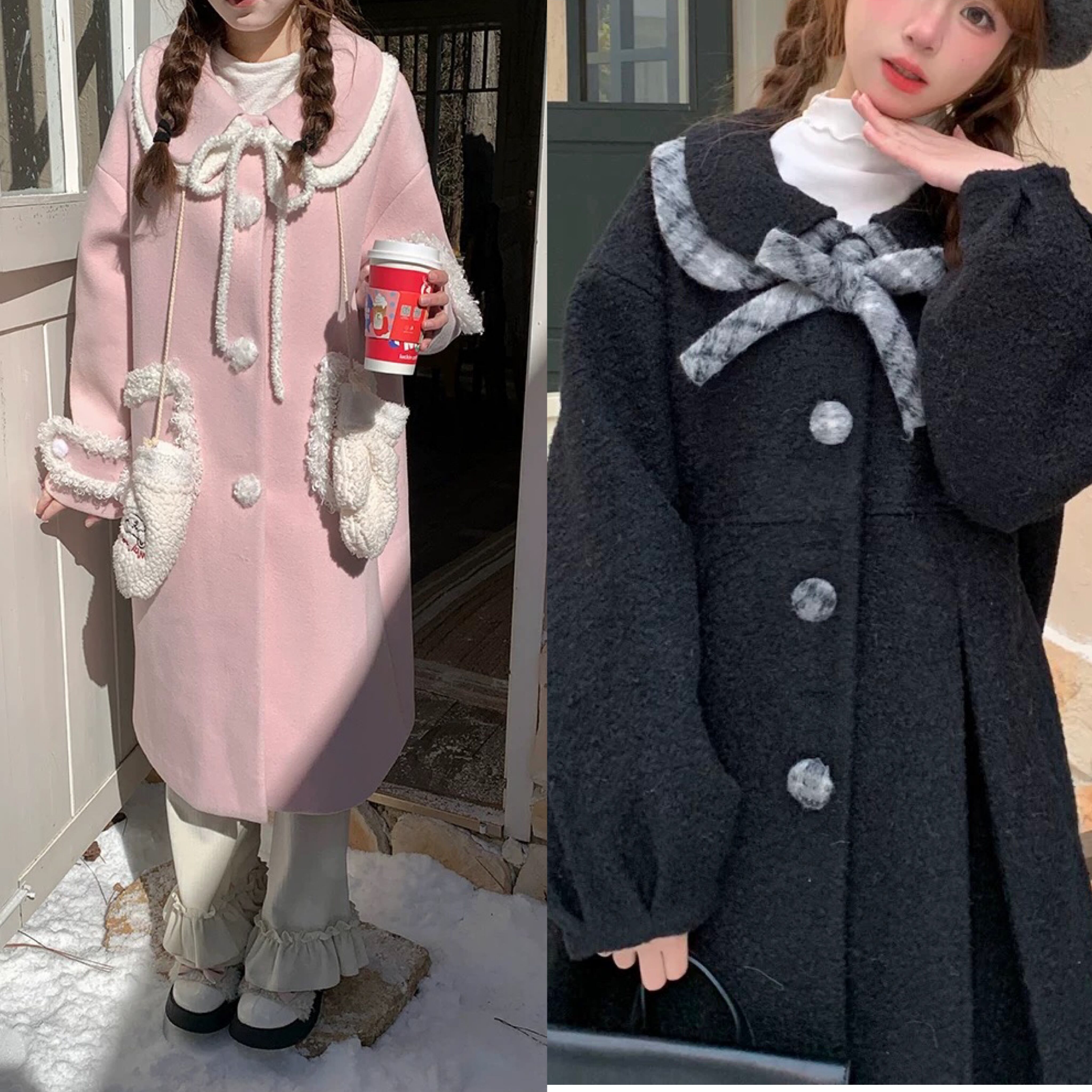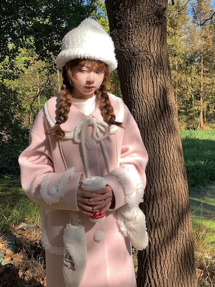 ピンク 丸襟 ガーリー コート カーディガン アウター ジャケット リボン 可愛い 原宿 ワンピース