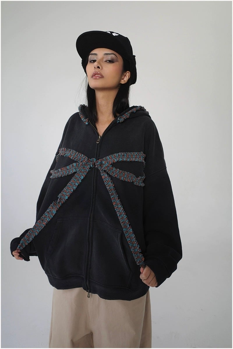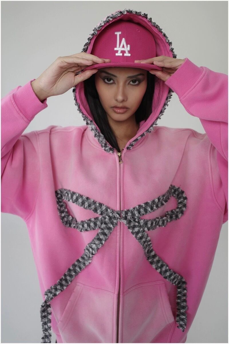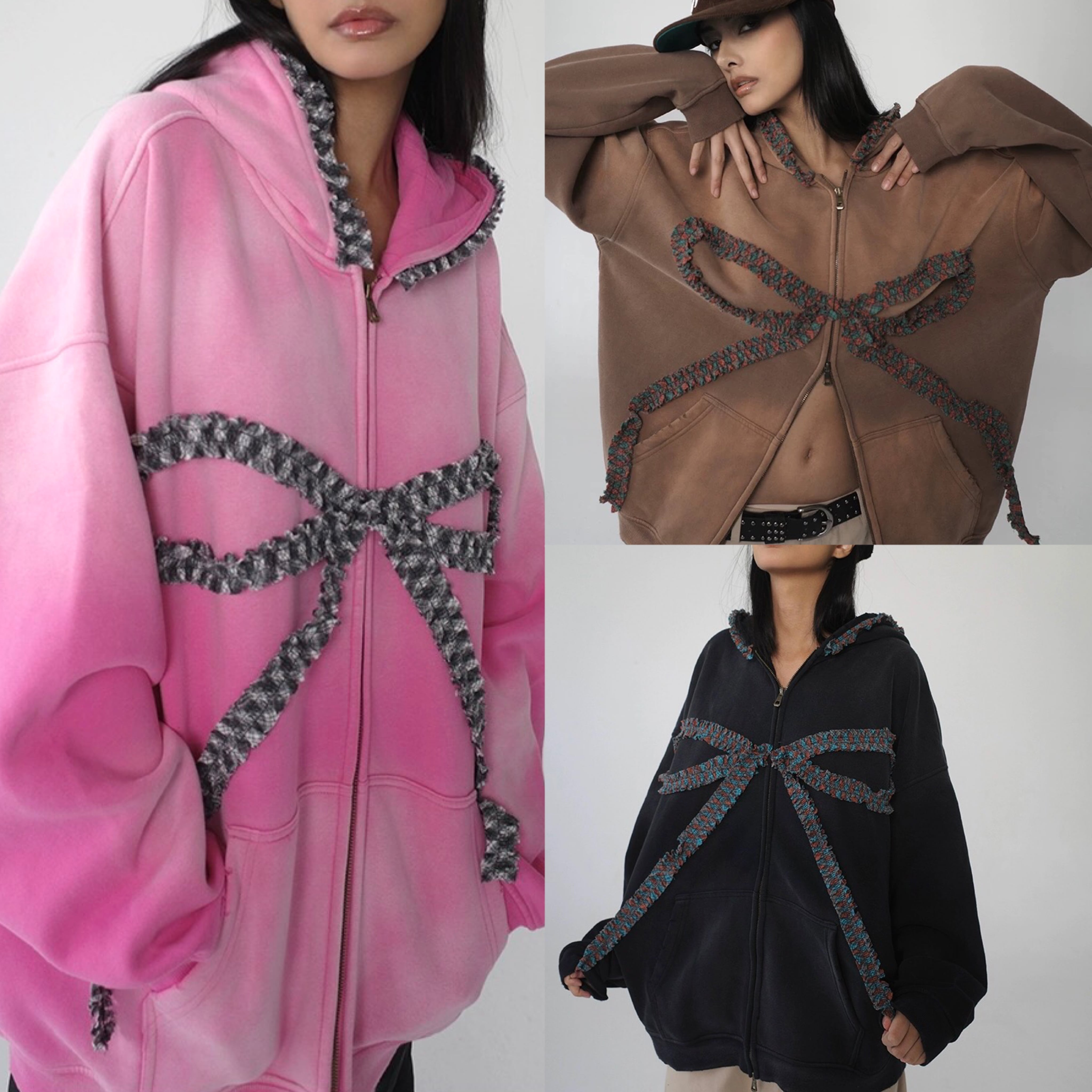 パーカー スウェット 茶色 リボン カジュアル パーカー トレーナー 黒 ピンク 可愛い ストリート
