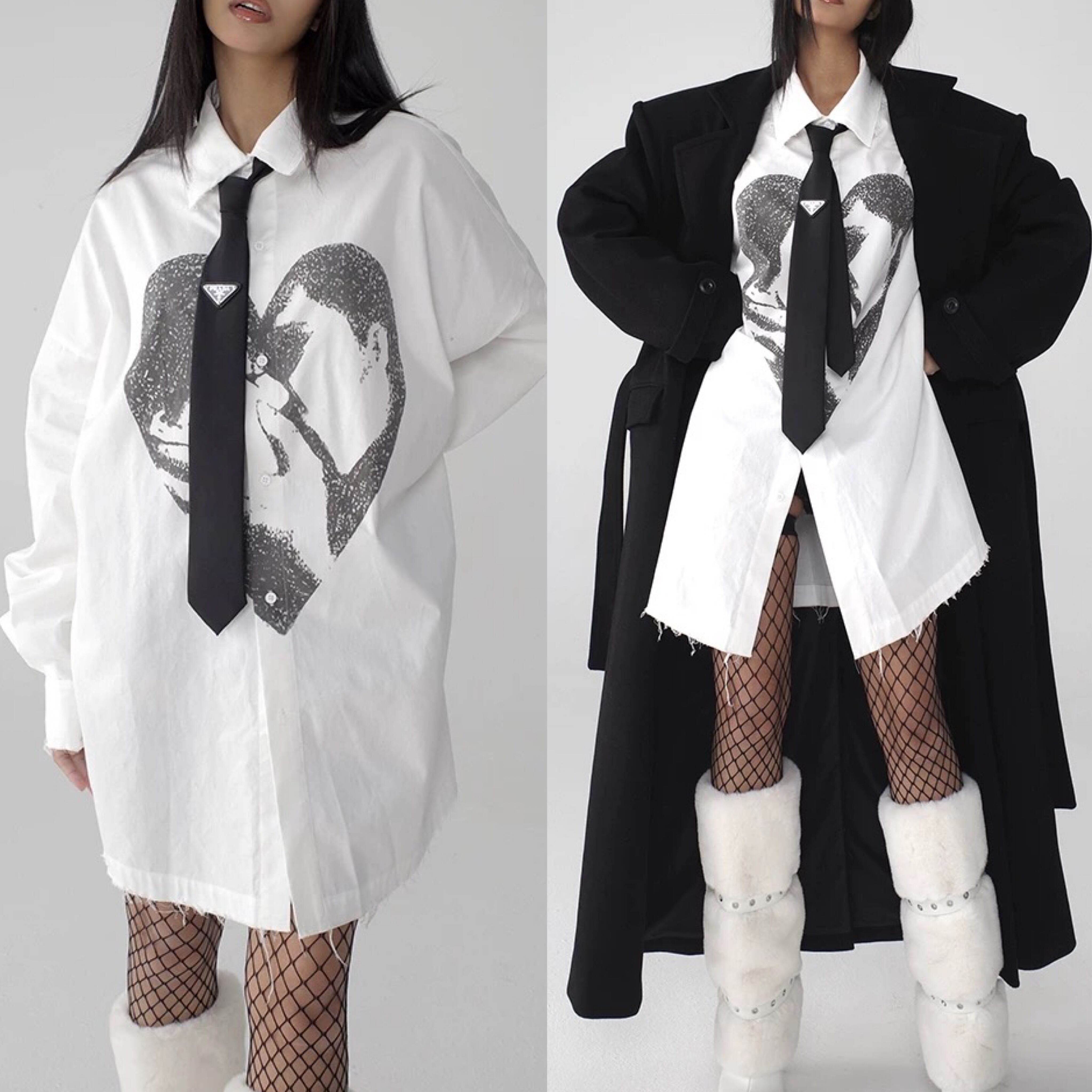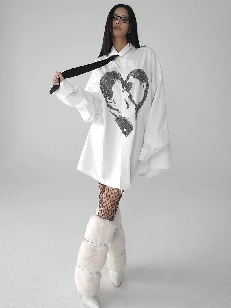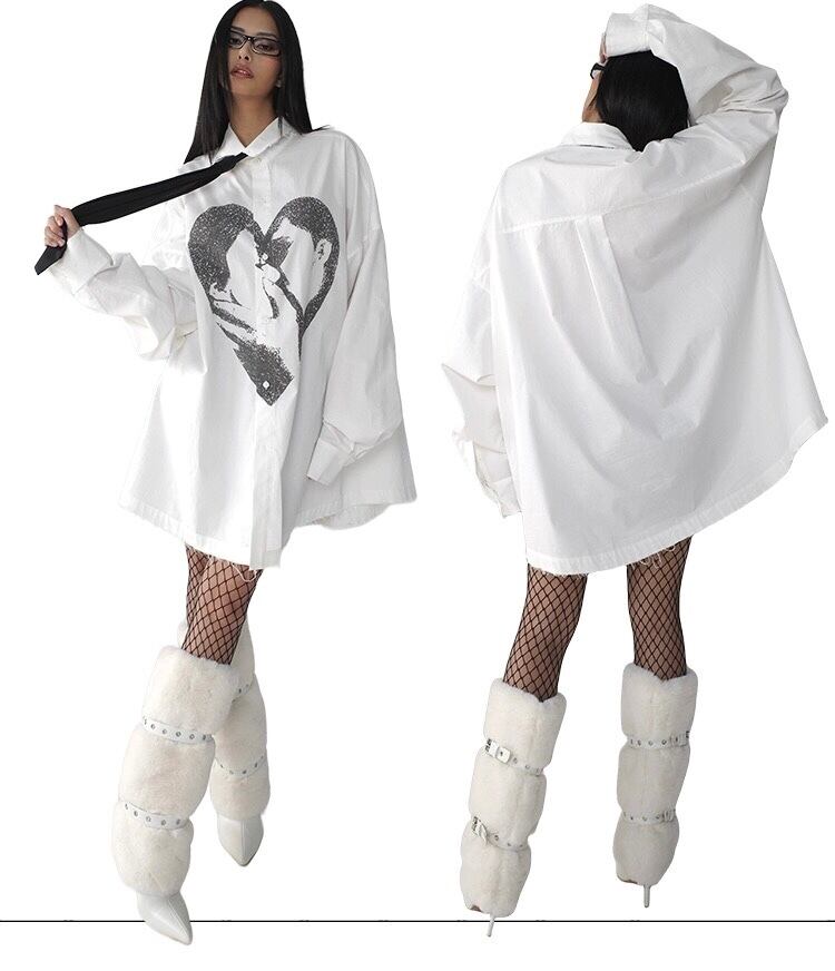 ブラウス ストリート カジュアル 白 ハート シャツ ワンピース 白