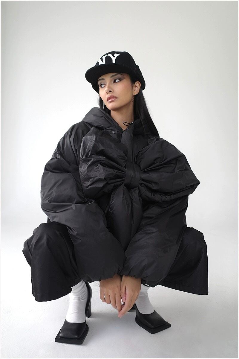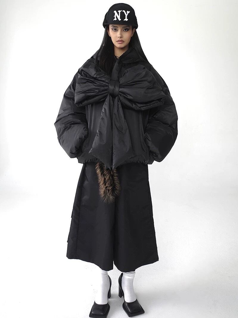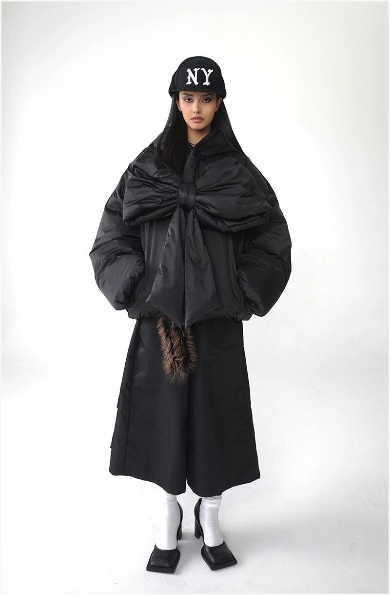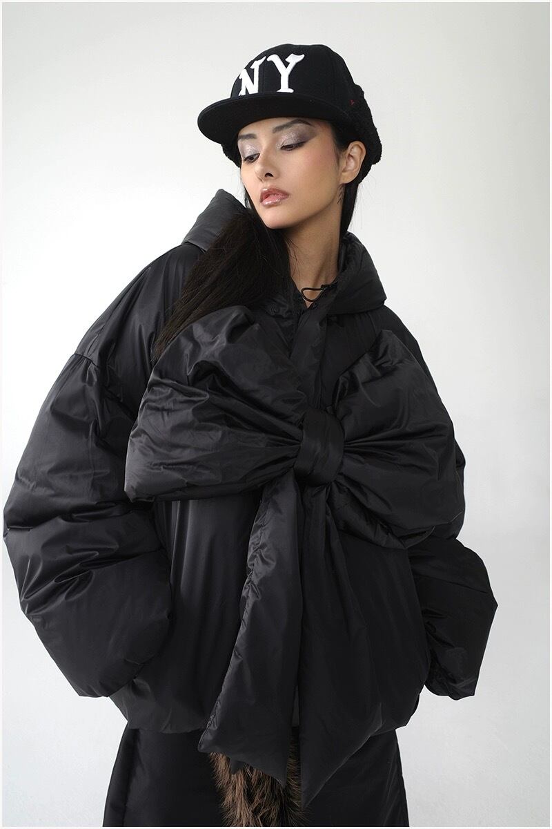 ダウン 黒 ブラック リボン アウター ジャケット コート ストリート