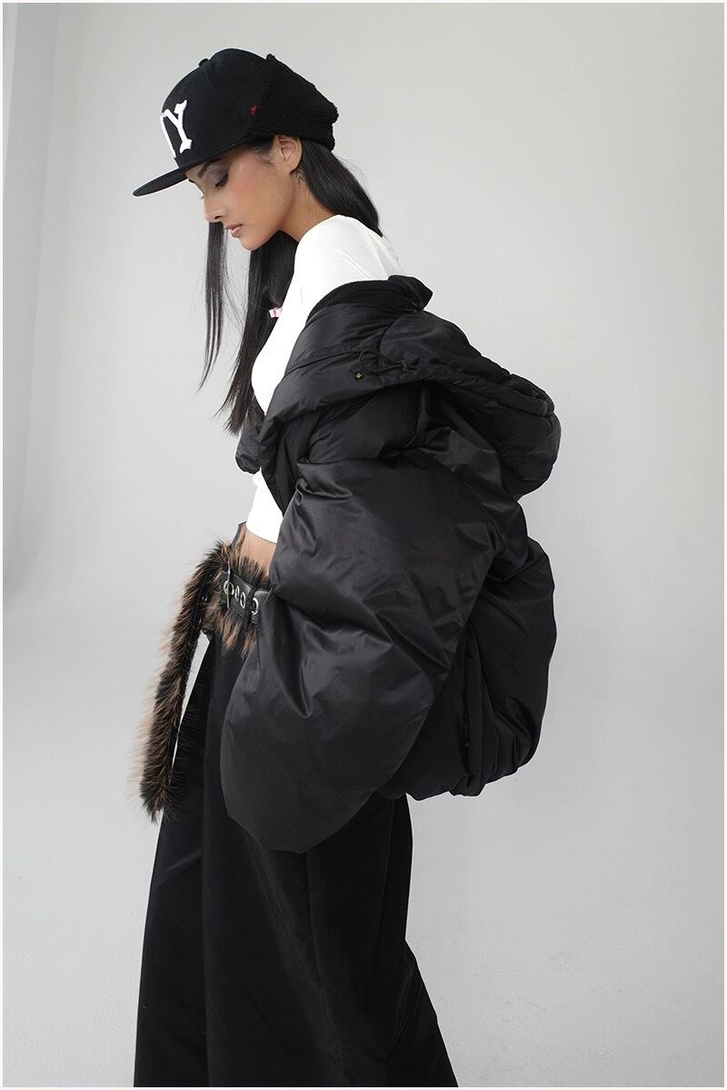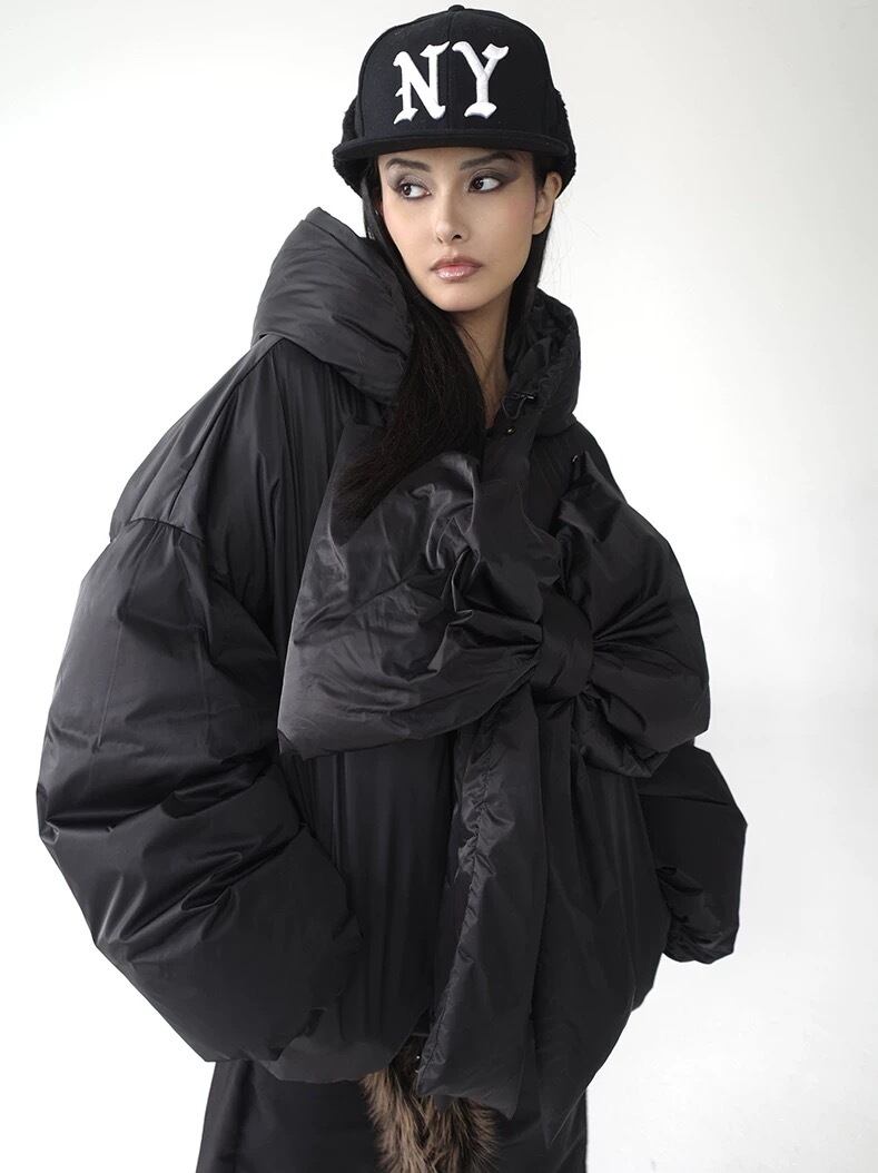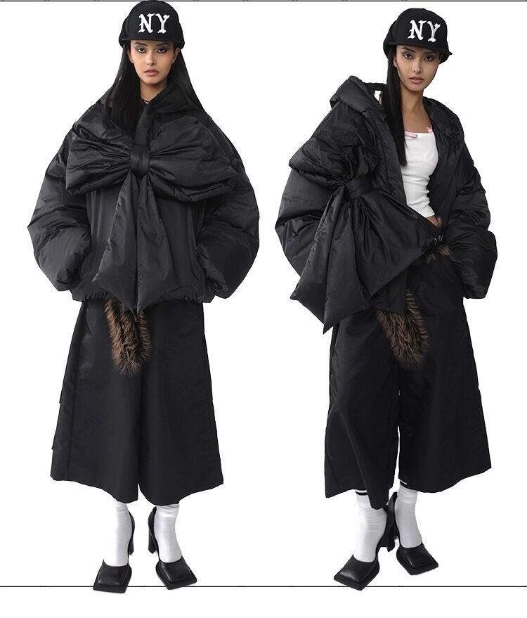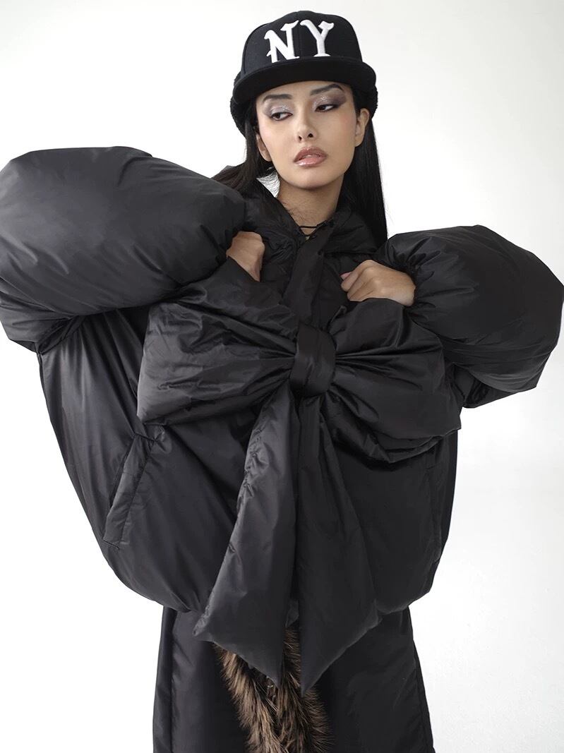 ダウン 黒 ブラック リボン アウター ジャケット コート ストリート