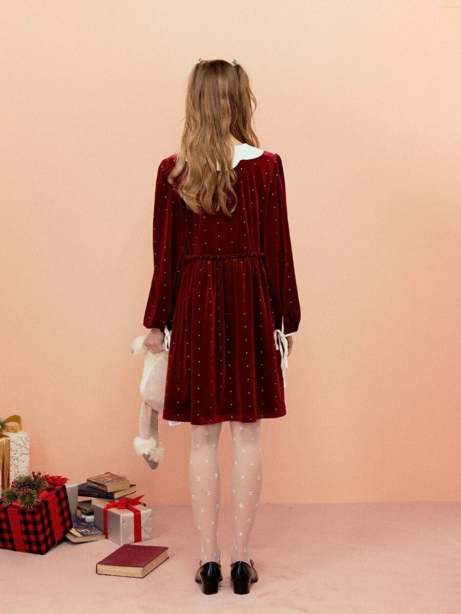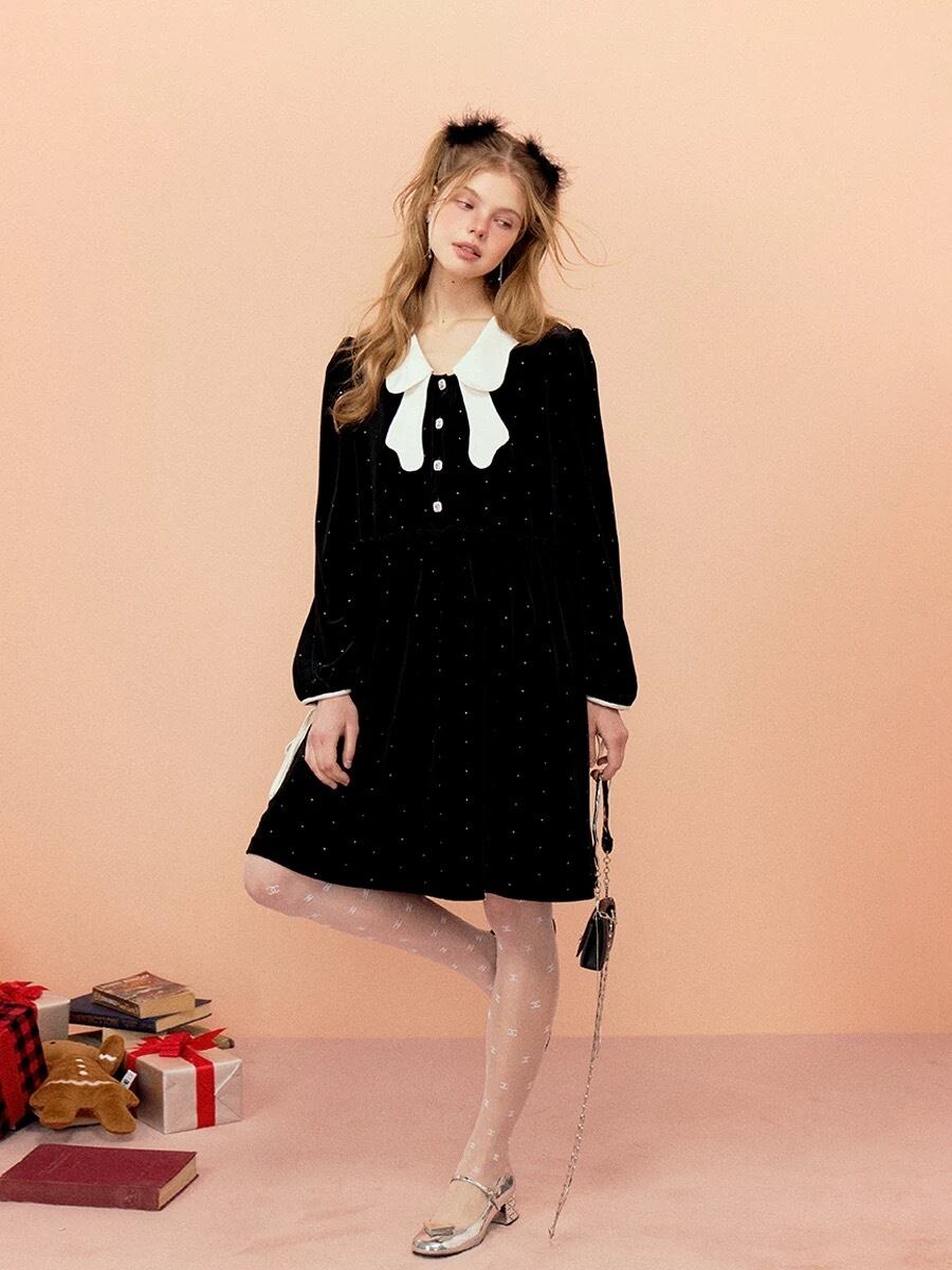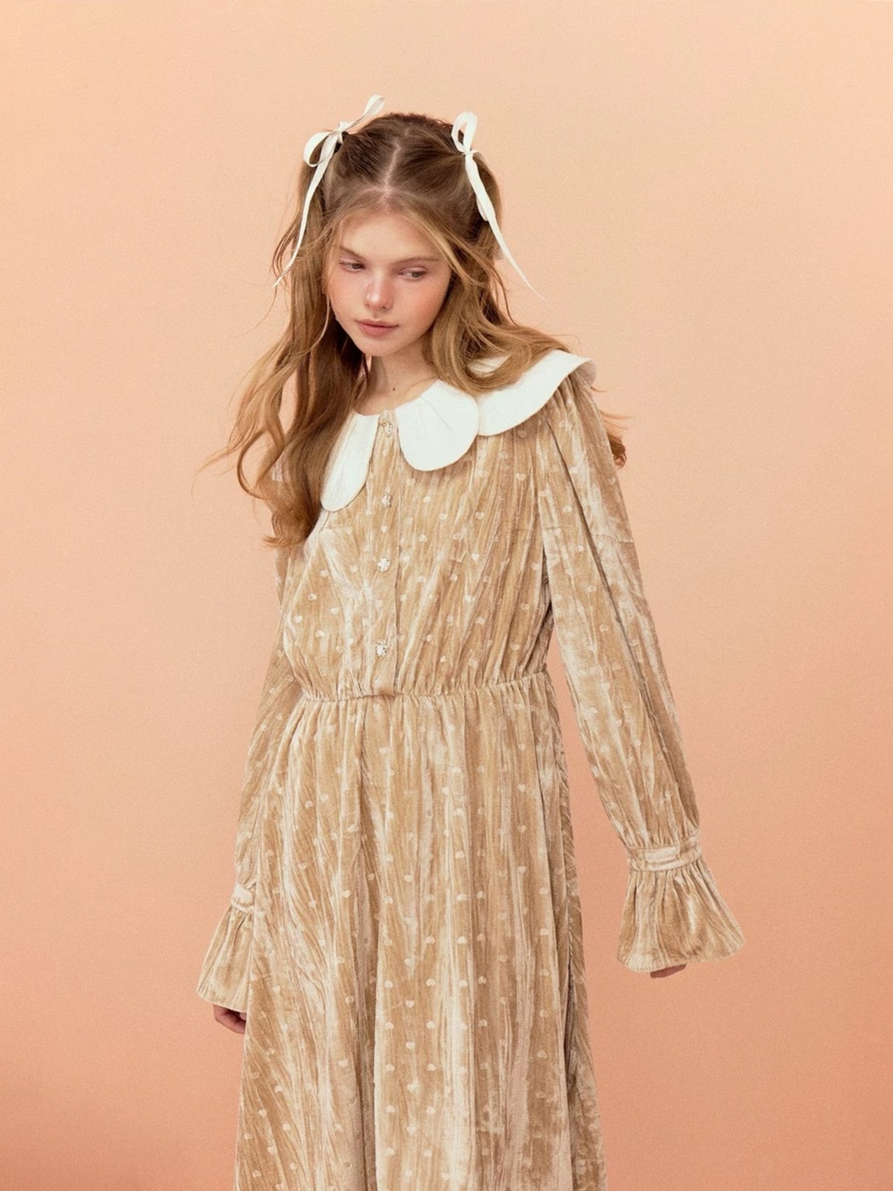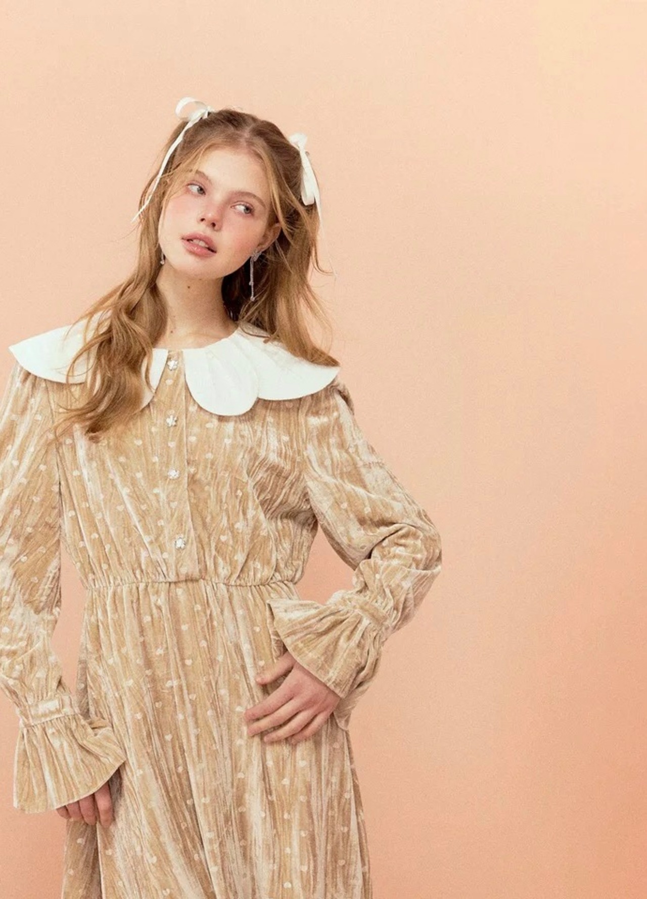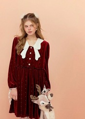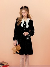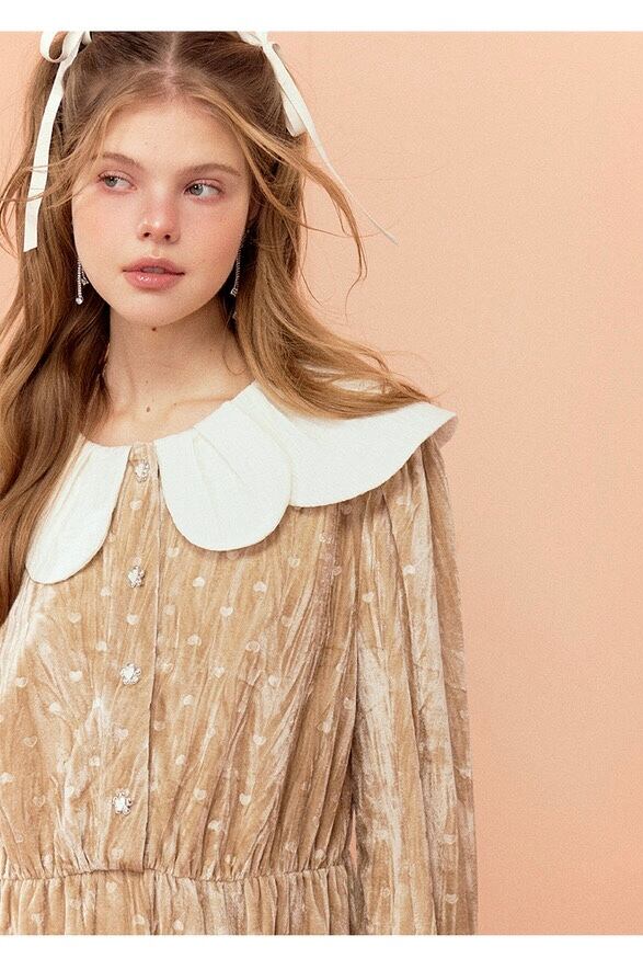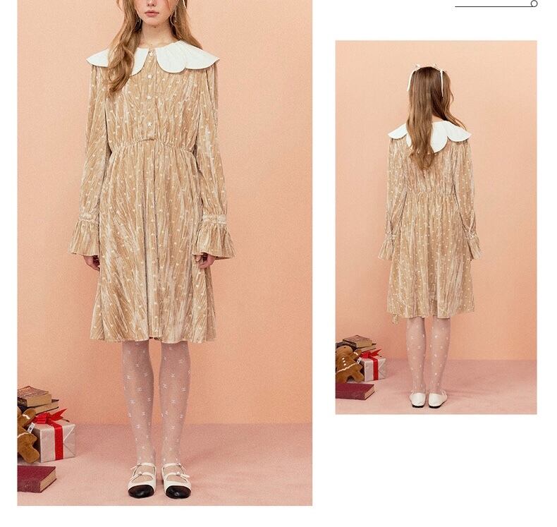 ワンピース ベージュ 赤 ブラウス 黒 黄色 スカート ガーリー 丸襟