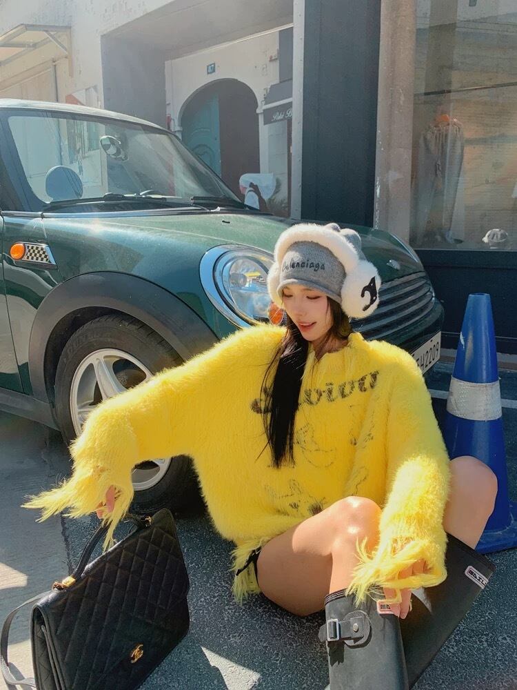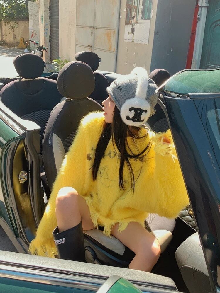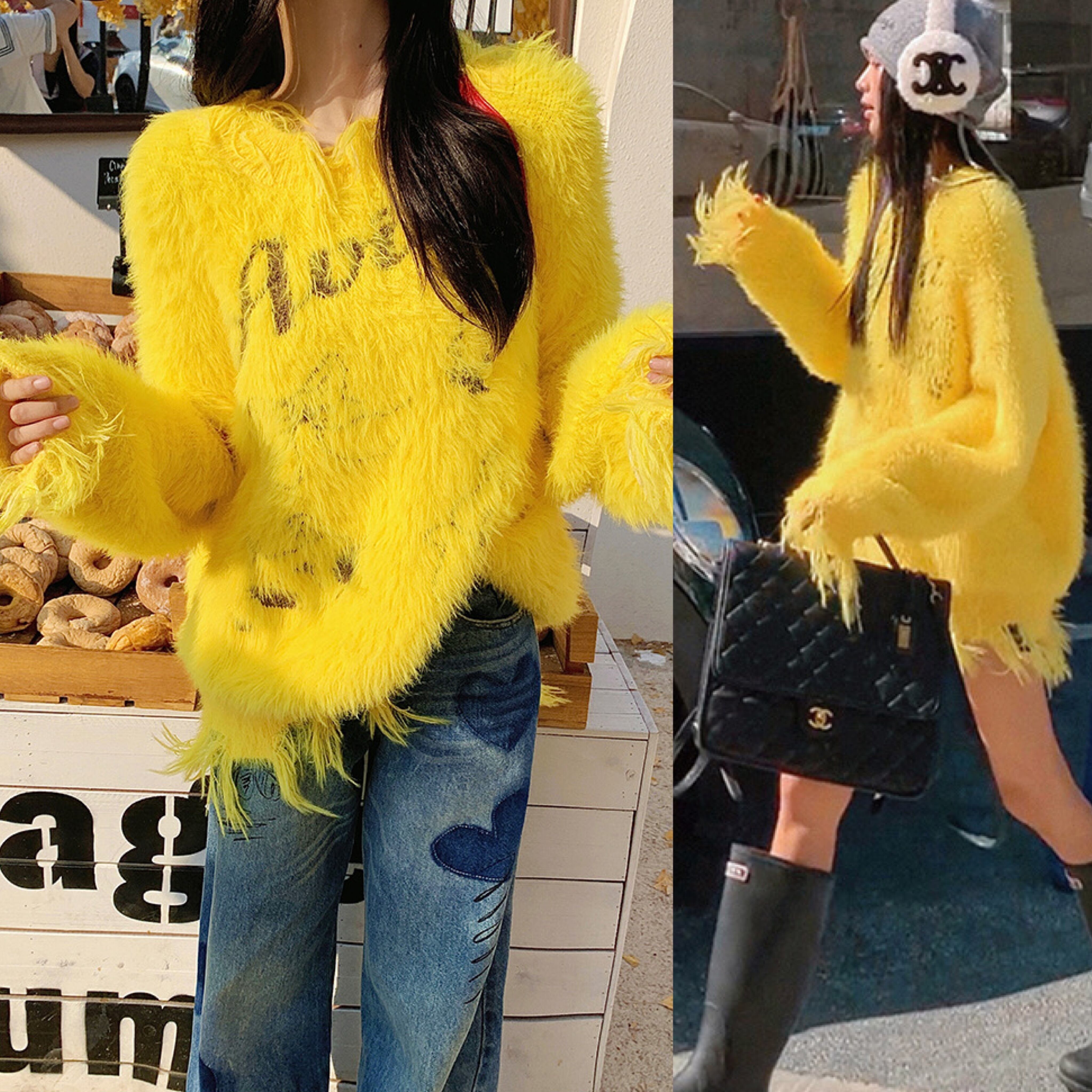 セーター 黄色 ダメージ カーディガン ニット アウター トップス ワンピース