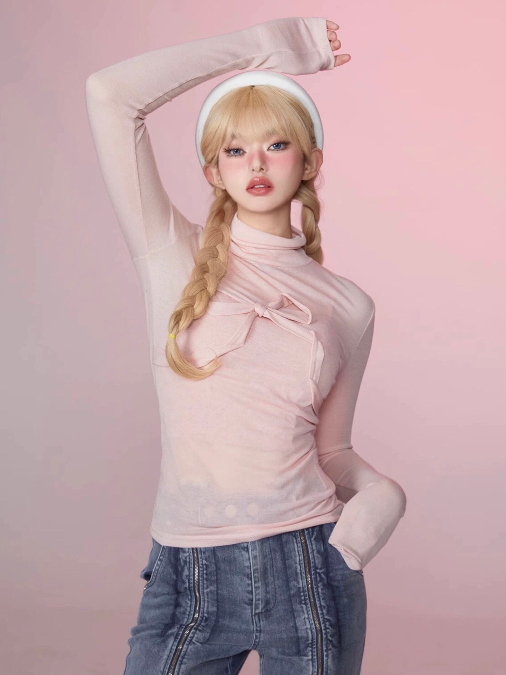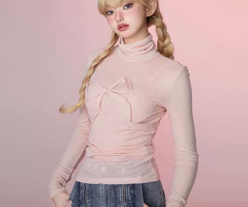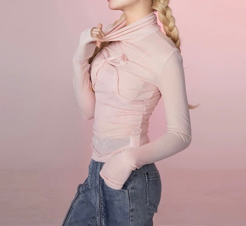 【トップスセット】キャミソール リボン ブラウス トップス ハイネック リボン ガーリー