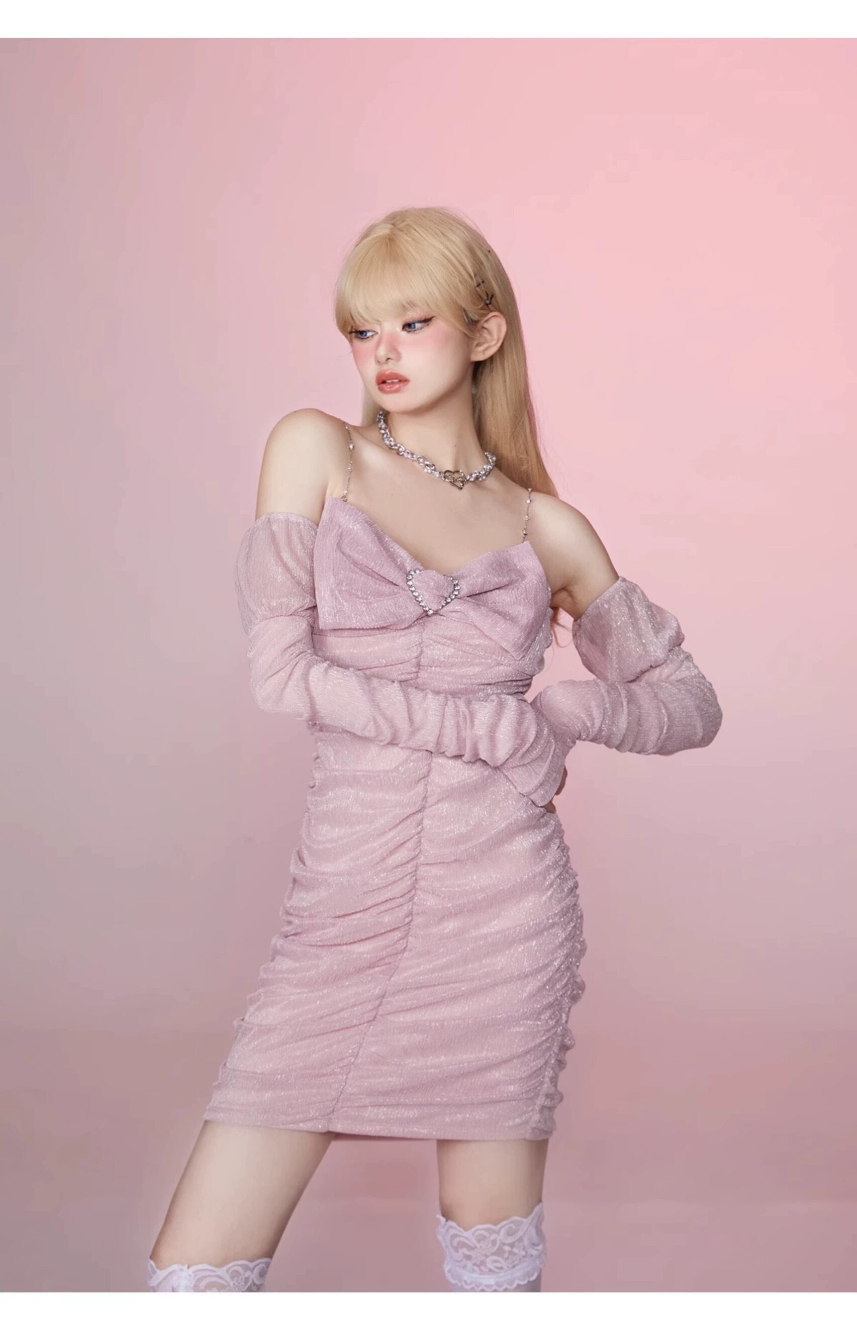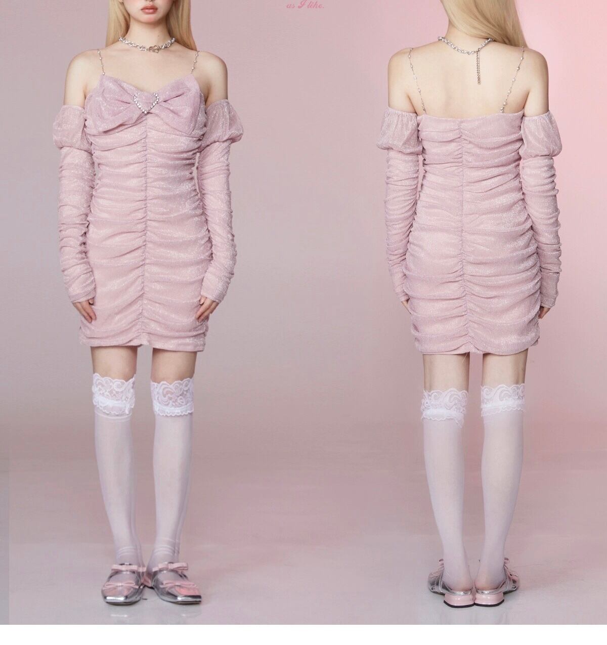 ワンピース ピンク ガーリー オフショルダー ブラウス カメリア スカート トップス タイト