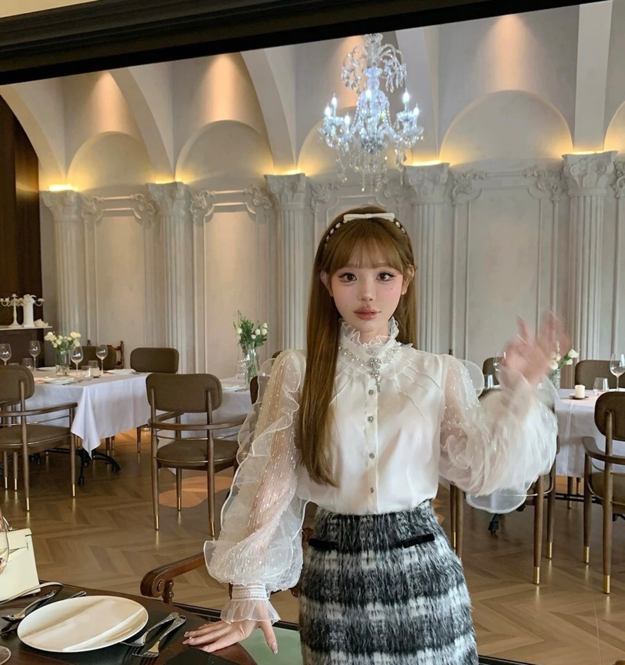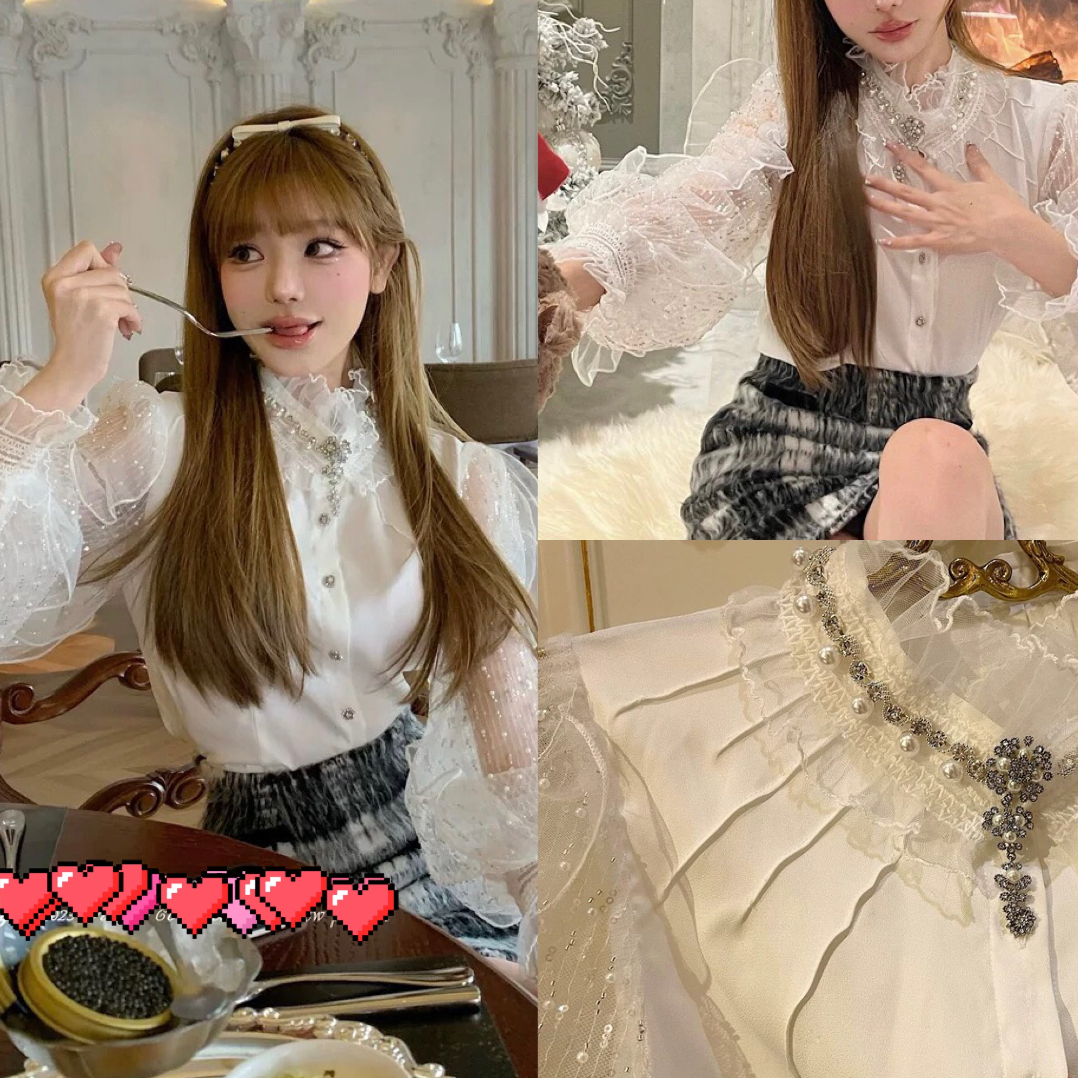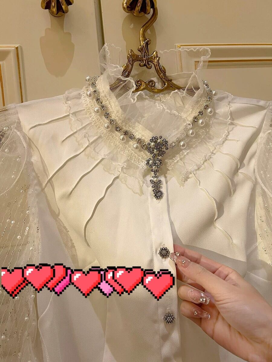 ブラウス お嬢様 エレガント トップス シャツ ガーリー リボン レース