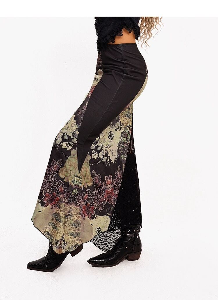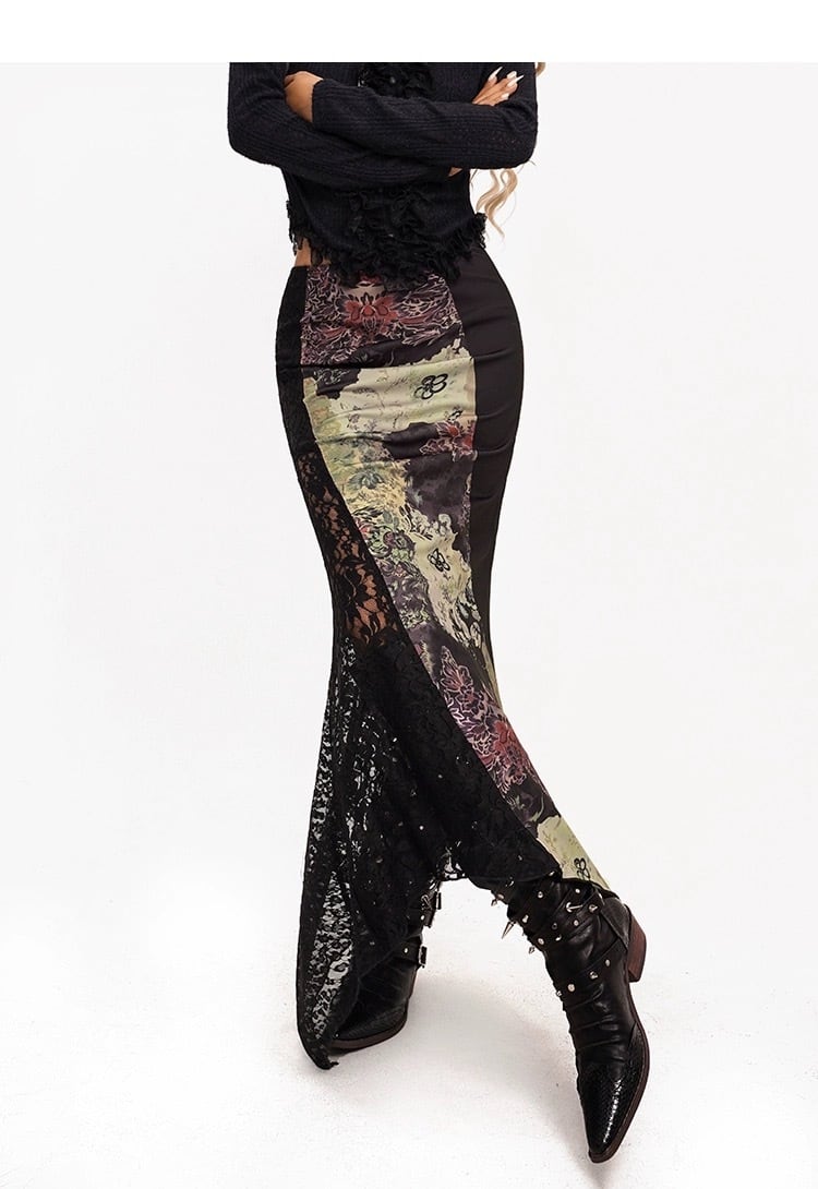 【スカート】レース 和柄 黒 モダン クラシック タイト スカート ボトムス セクシー スリット