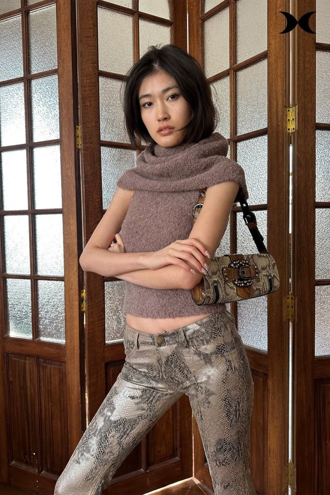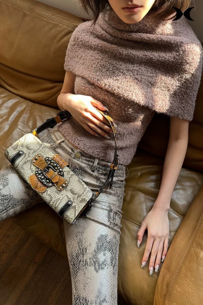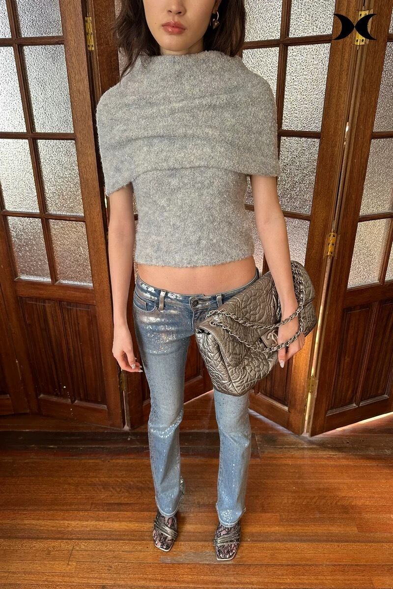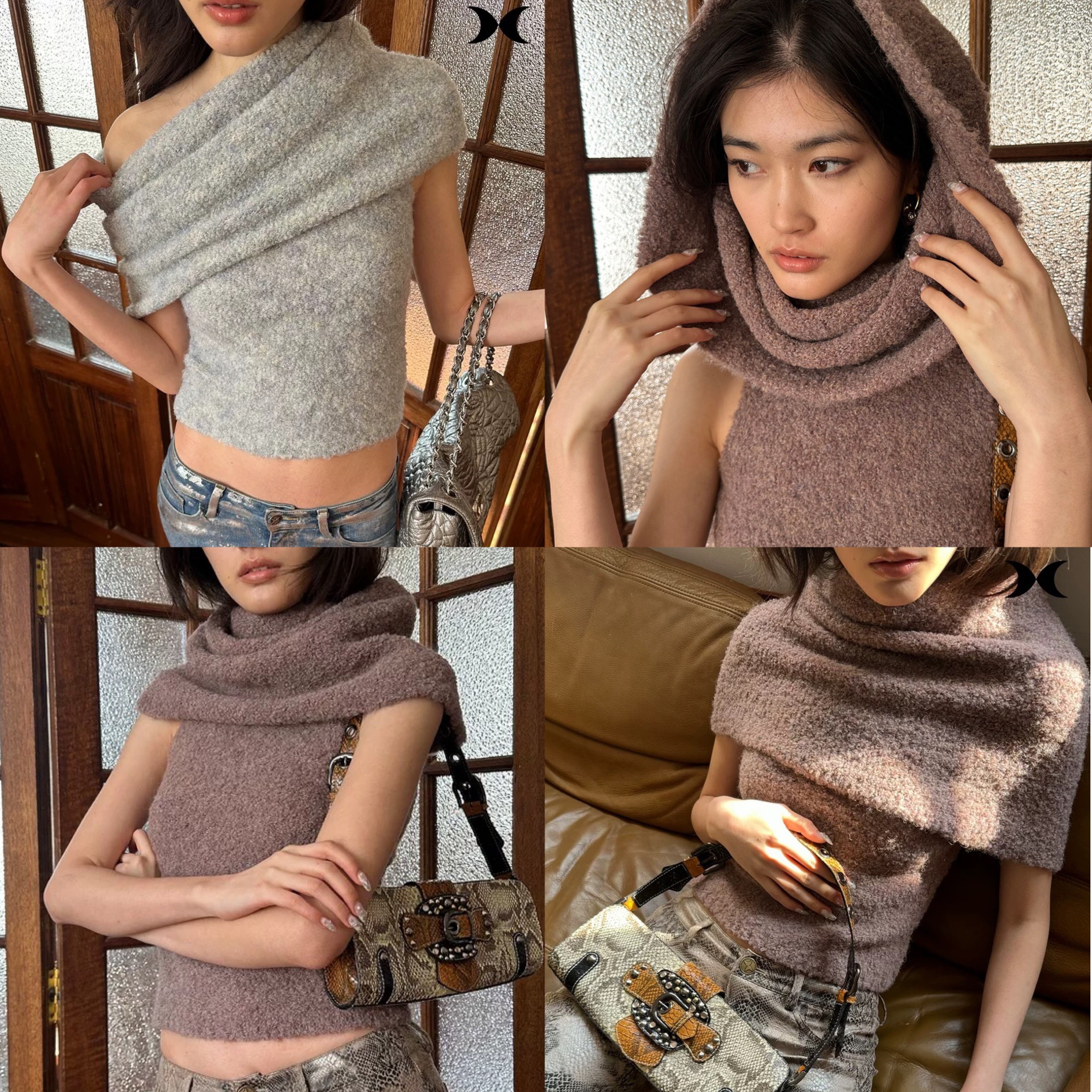 オフショルダー グレー 茶色 ハイネック セーター トップス ブラウス